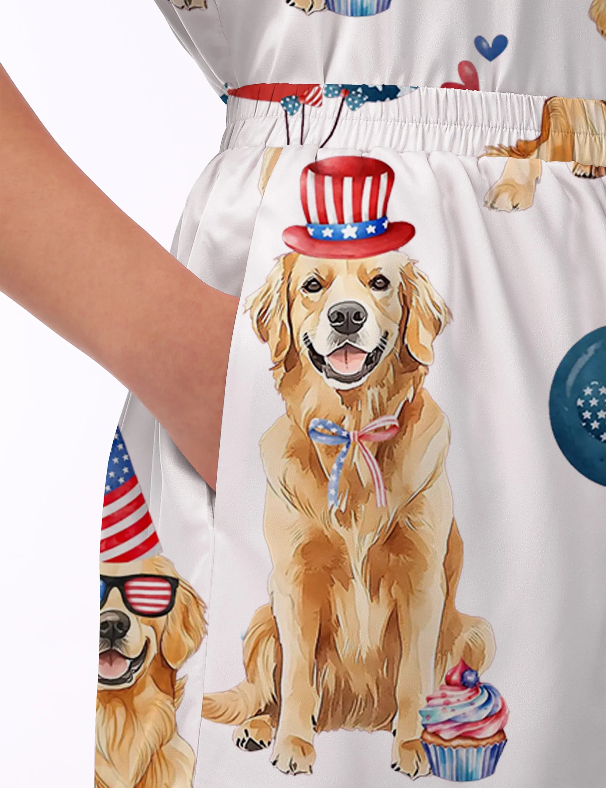 4th Of July Patriotic Golden Retriever Silky Satin Pajama Set For Women