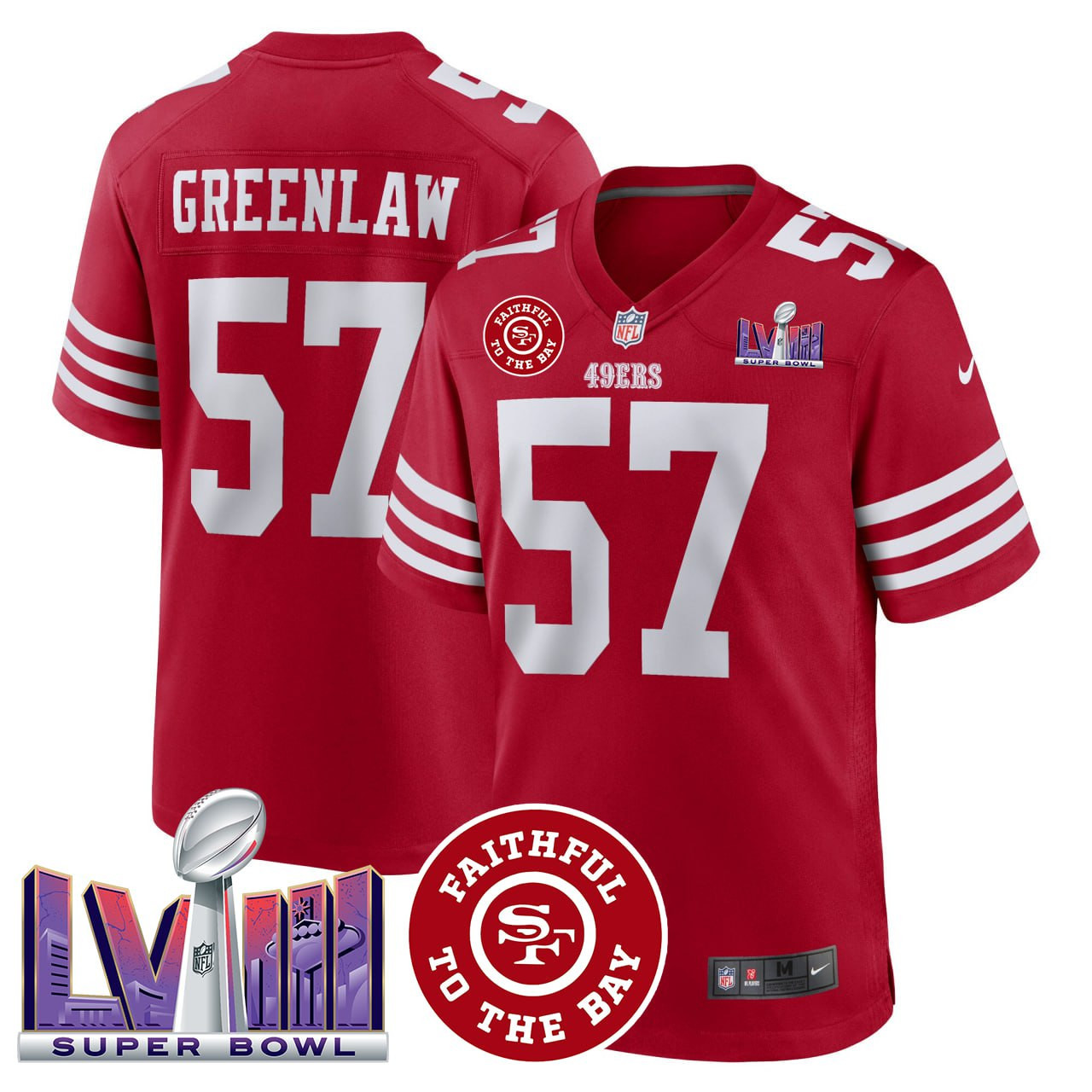 Aiyuk & GreenLaw San Francisco 49ers Faithful & Super Bowl LVIII Patch Vapor Jersey – All Stitched