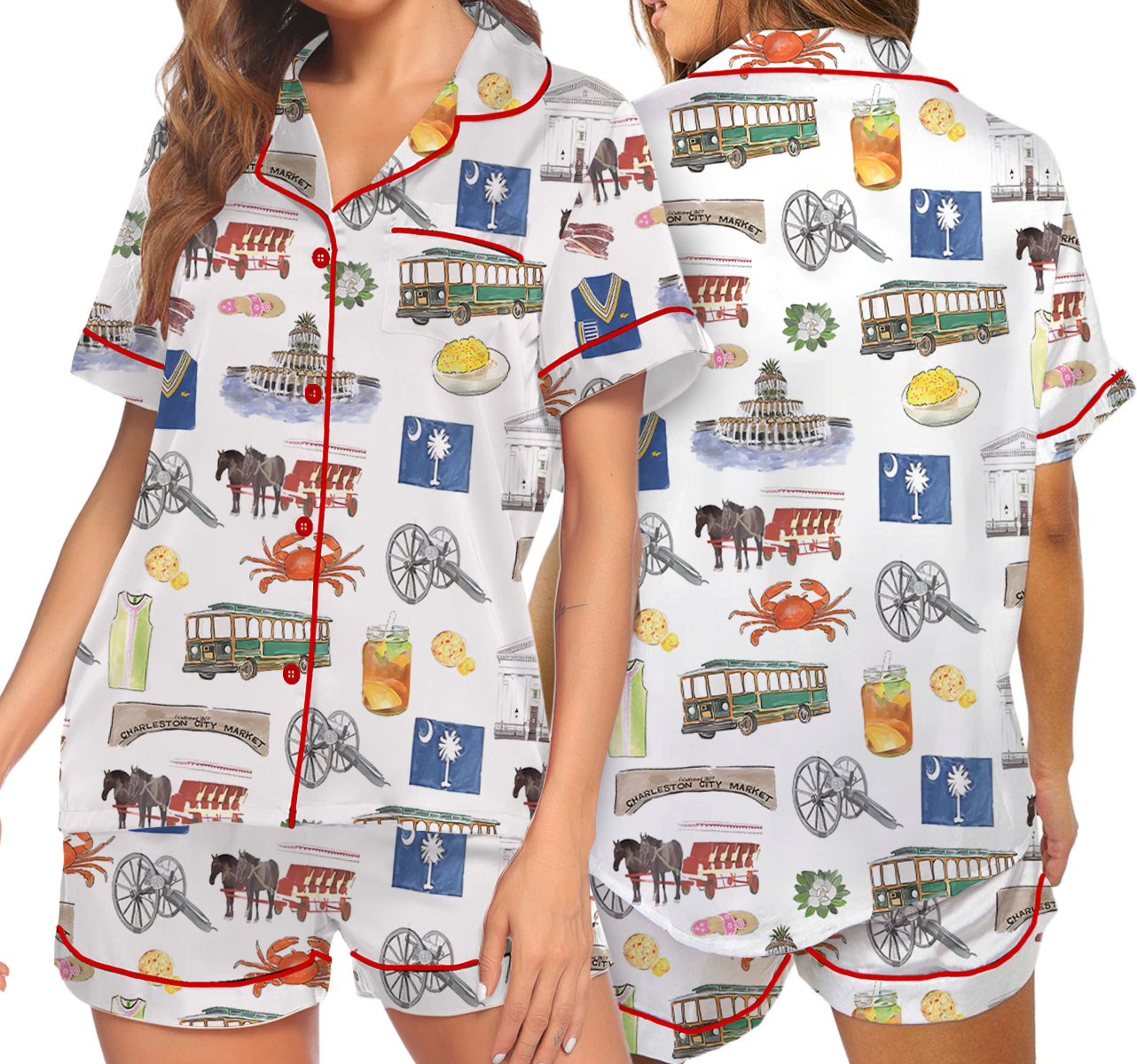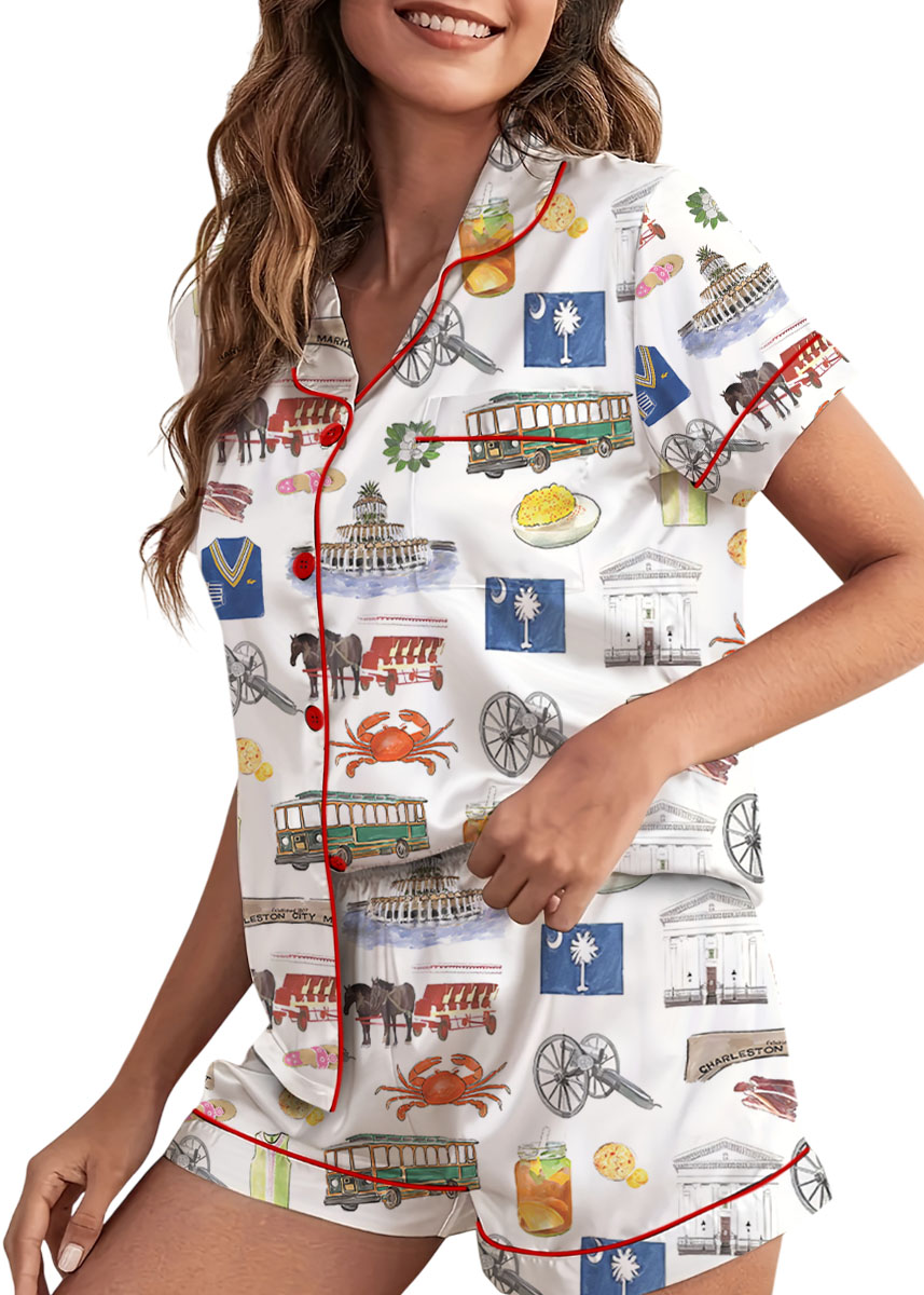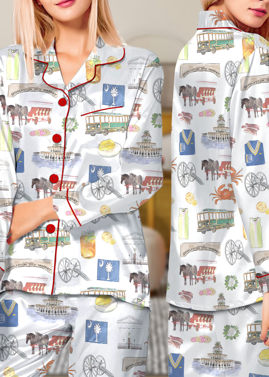 Charleston Silky Satin Pajama Set For Women, South Carolina City Pajamas
