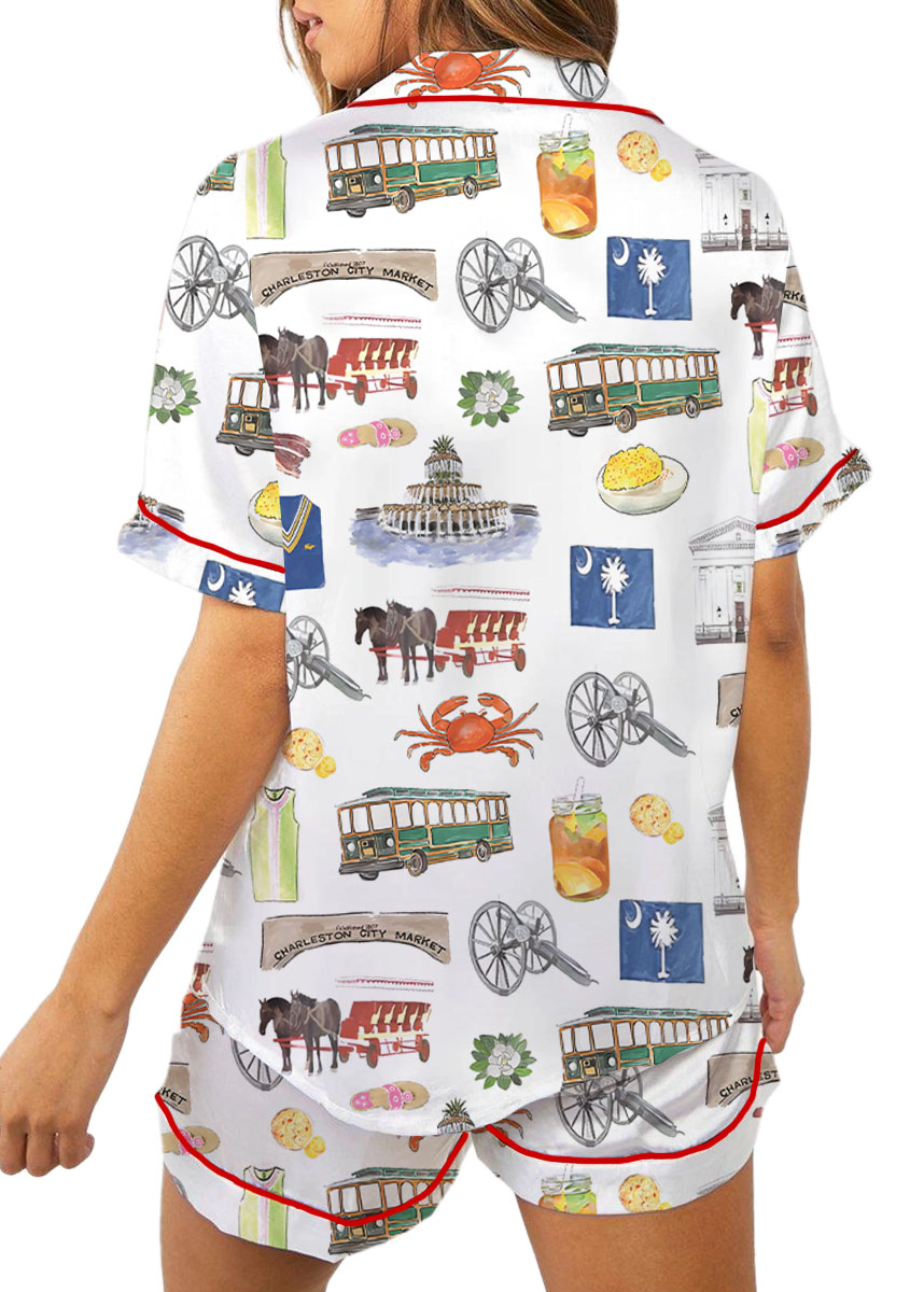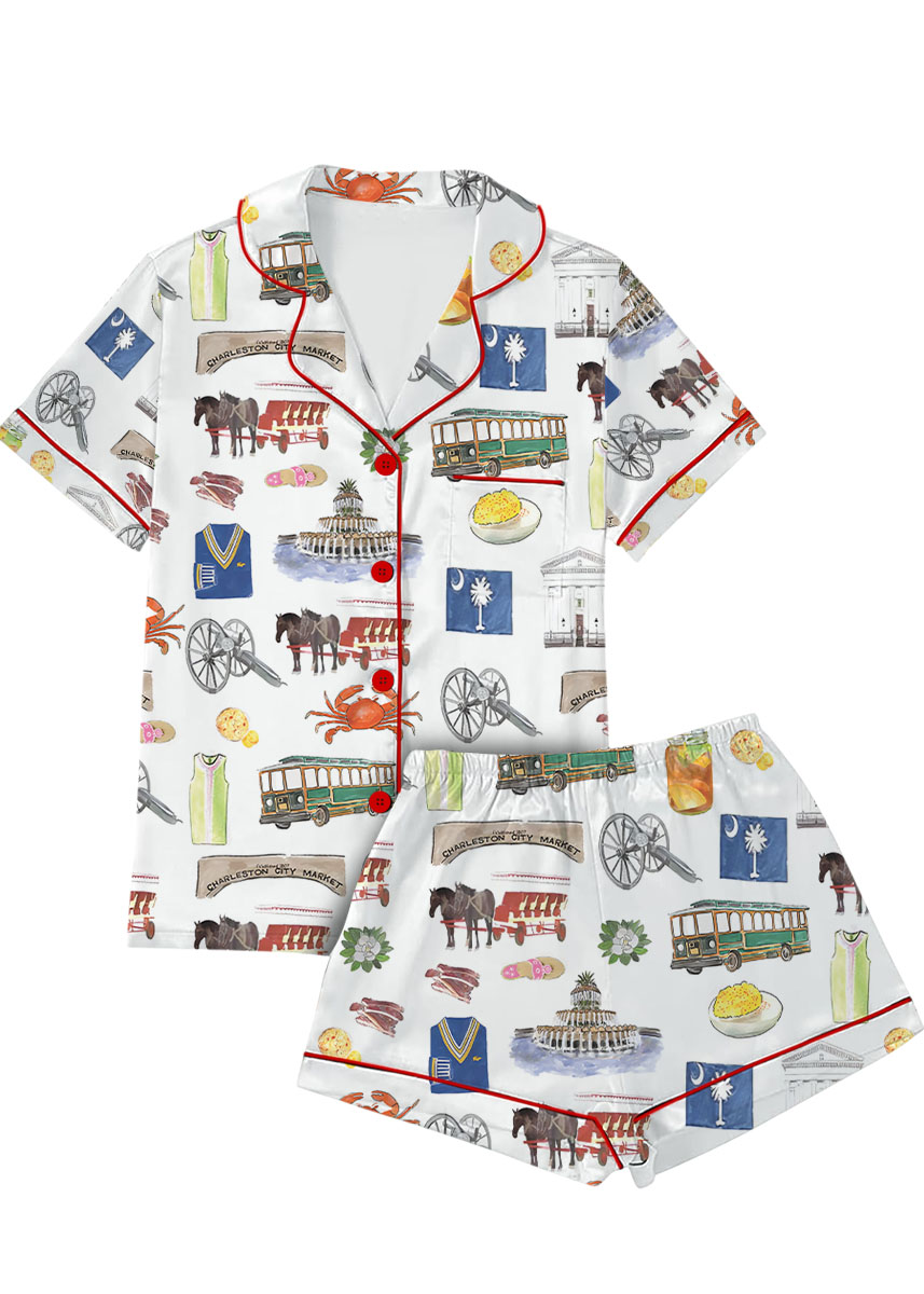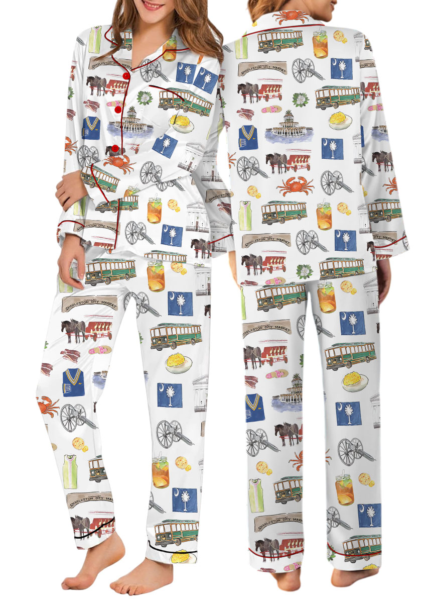 Charleston Silky Satin Pajama Set For Women, South Carolina City Pajamas