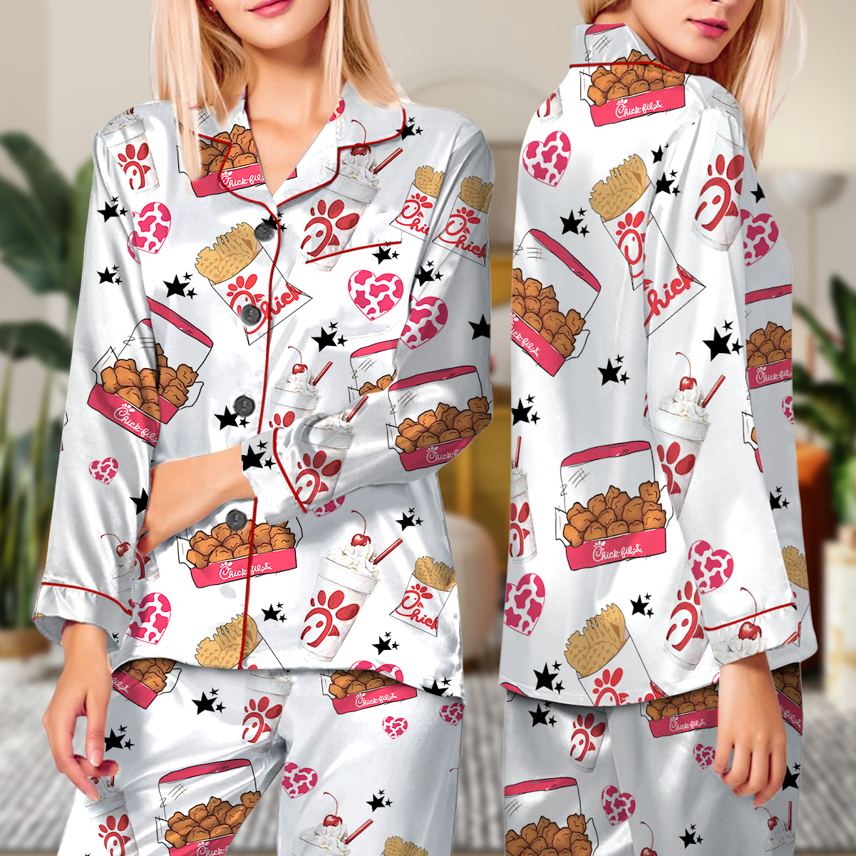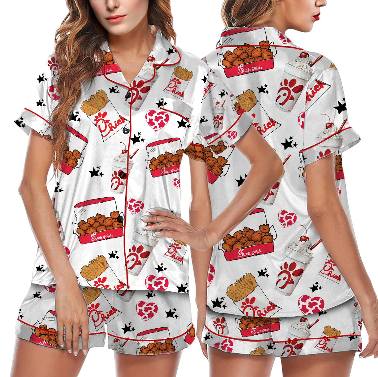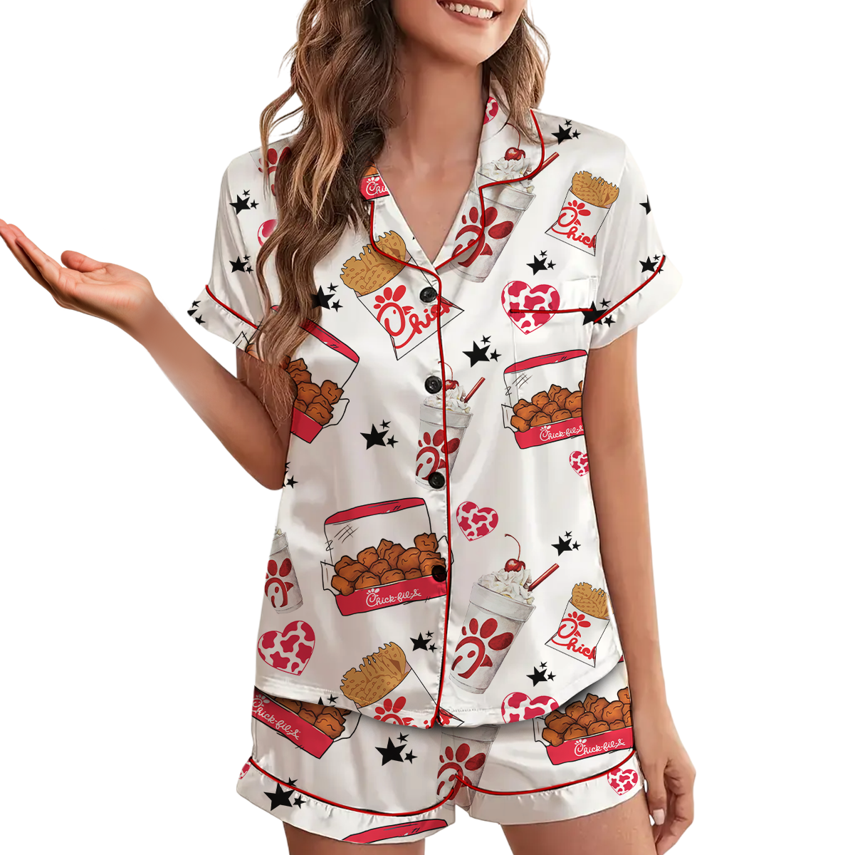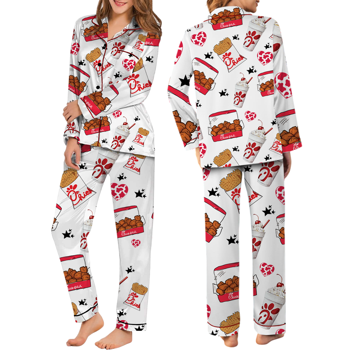 Chicken Nugget Inspired Food Satin Pajamas Set For Women