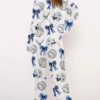 Chinoiserie Baseball Silky Satin Pajama Set For Women