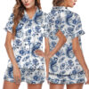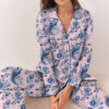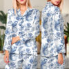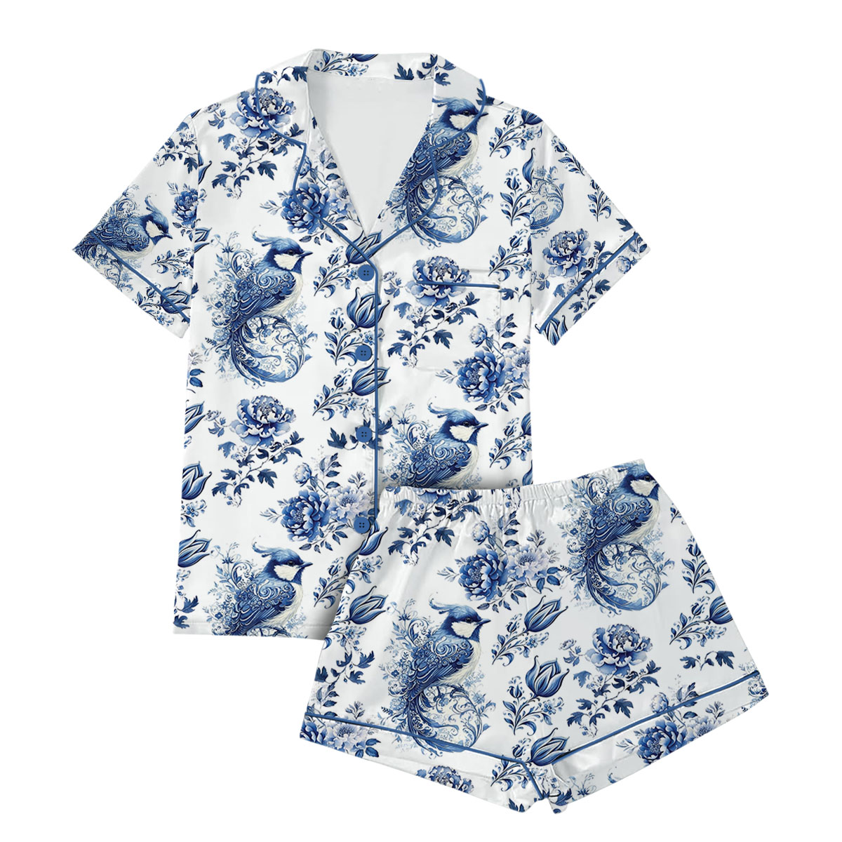 Chinoiserie Flower Clipart Watercolor Satin Pajamas Set