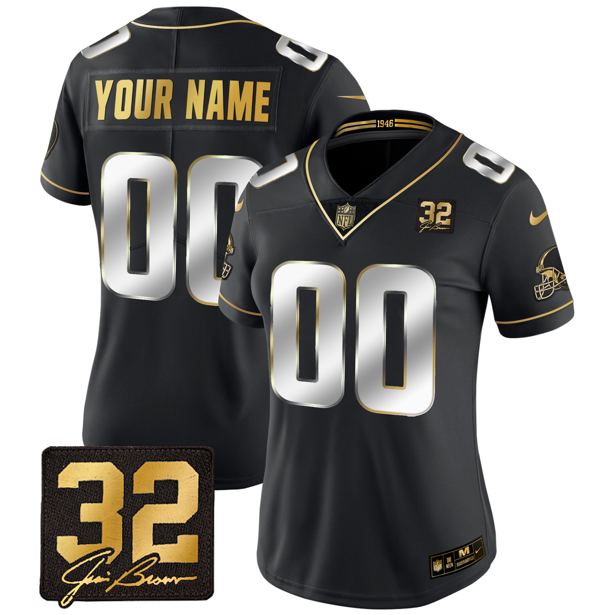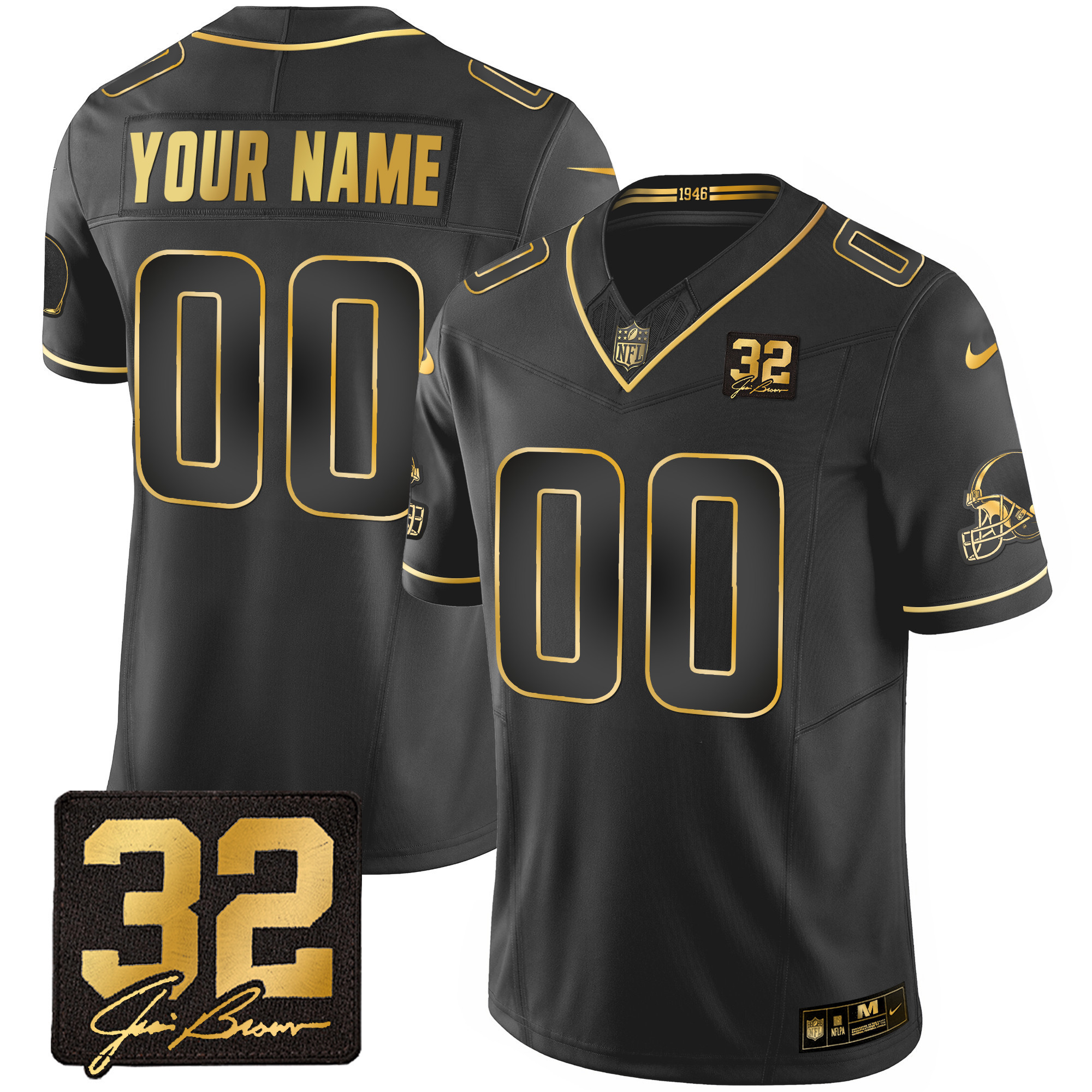 Cleveland Browns #32 Jim Brown Memorial Patch Gold Custom Jersey – All Stitched
