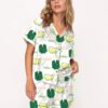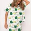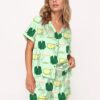 - Short-sleeve, button-front design with a turn-down collar, chest pocket, and contrast piping—classic and stylish for sleepwear, loungewear, or hosting guests.