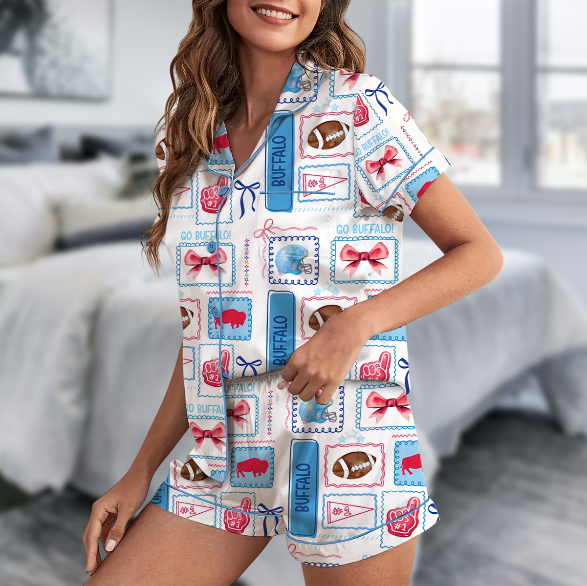 Coquette Buffalo Football Satin Pajamas Set