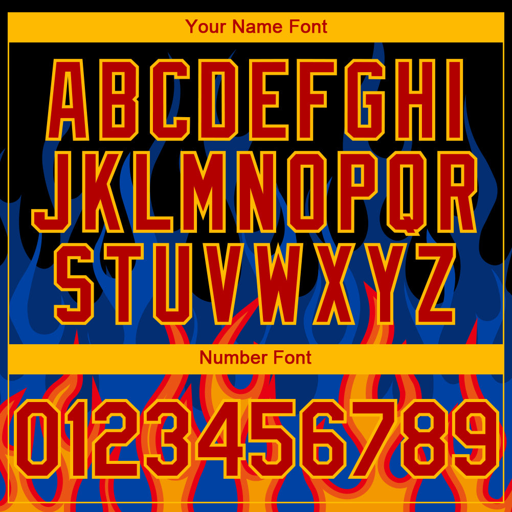 Custom Black Red-Gold 3D Pattern Design Flame Authentic Baseball Jersey