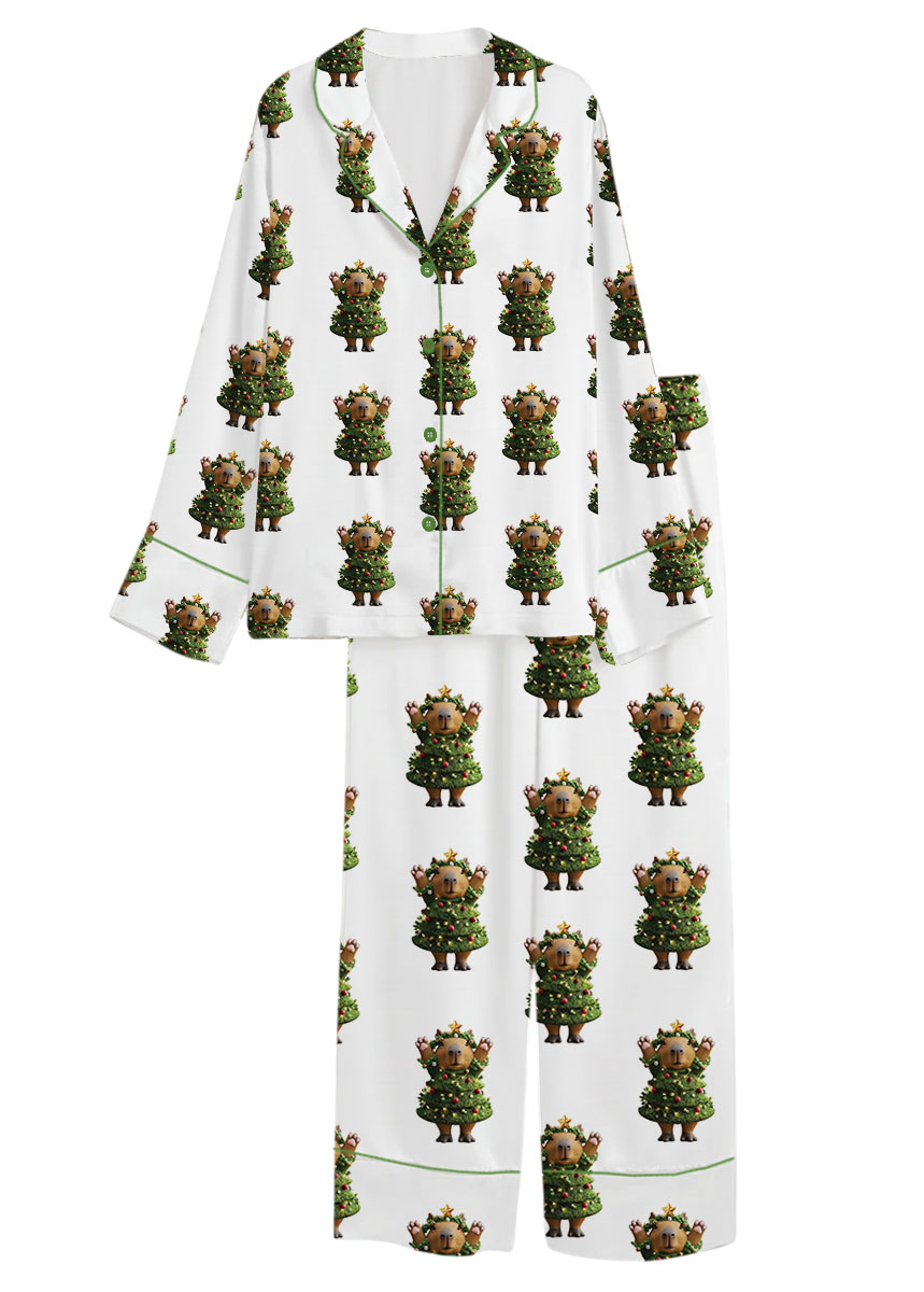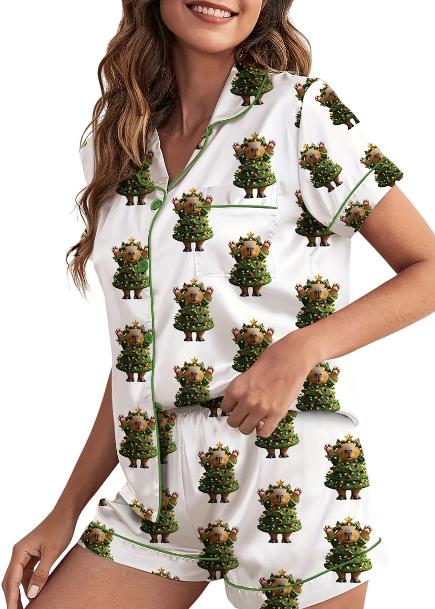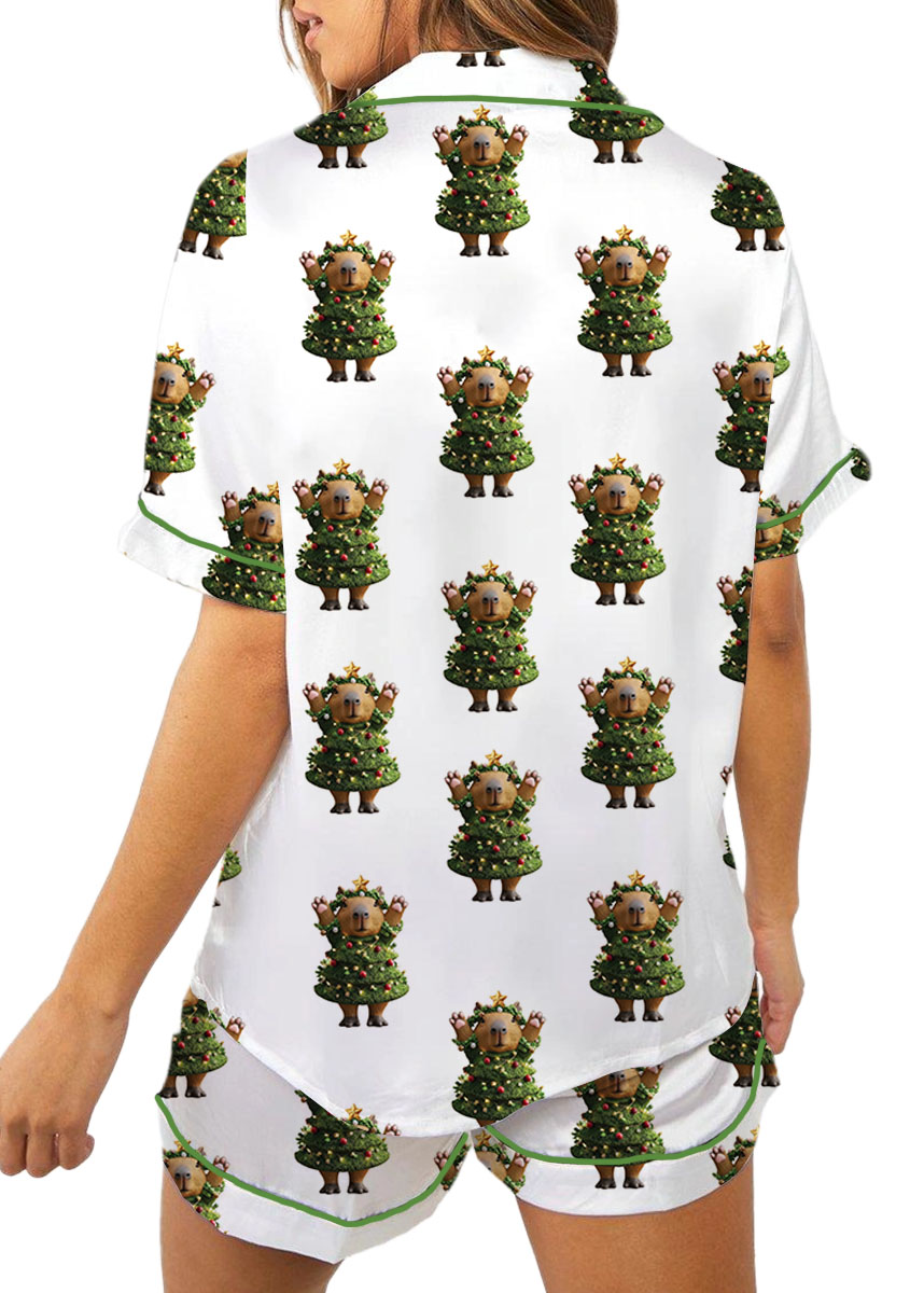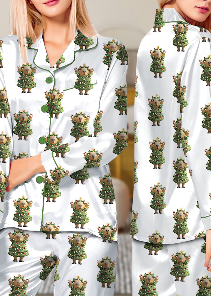 Cute Capybara Christmas Satin Pajamas Set For Women