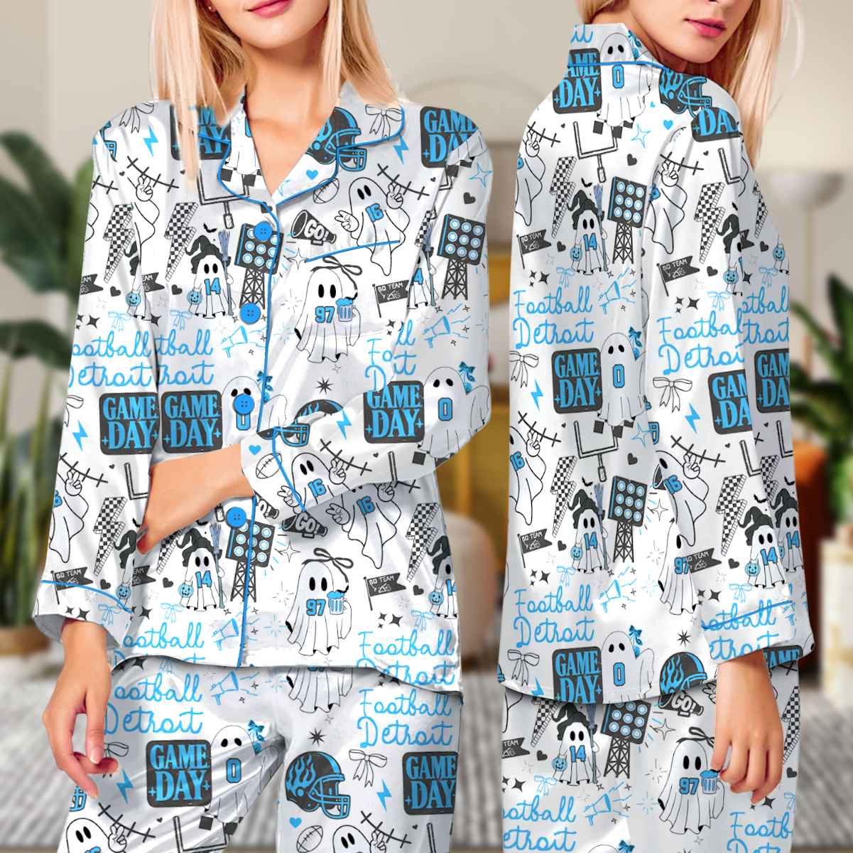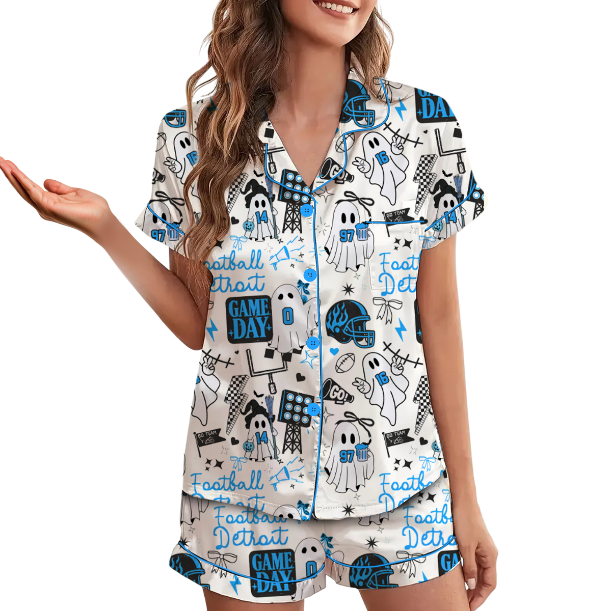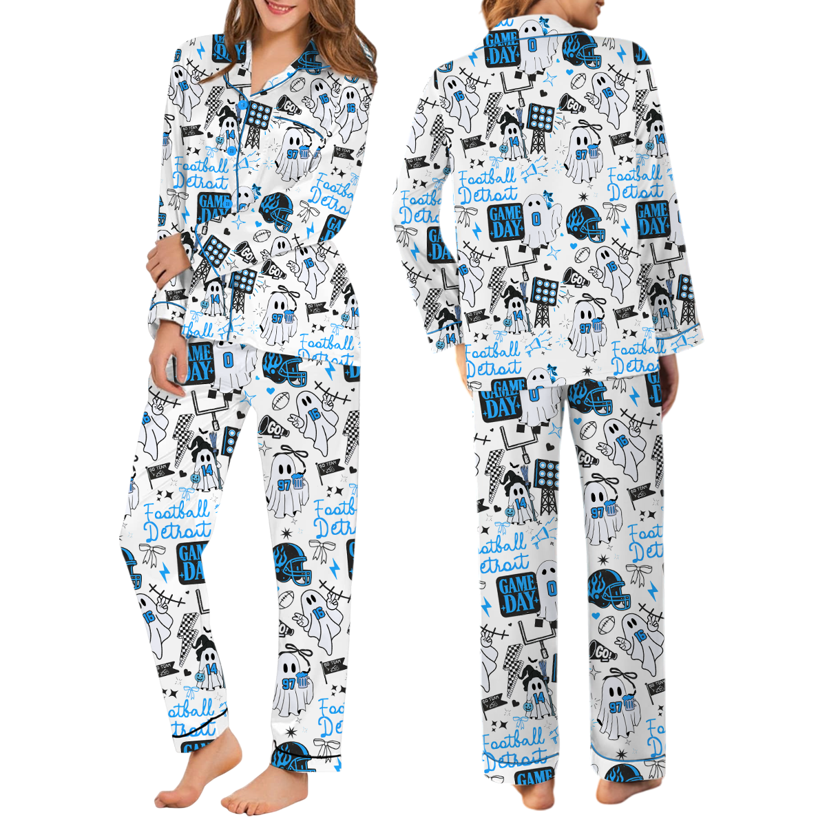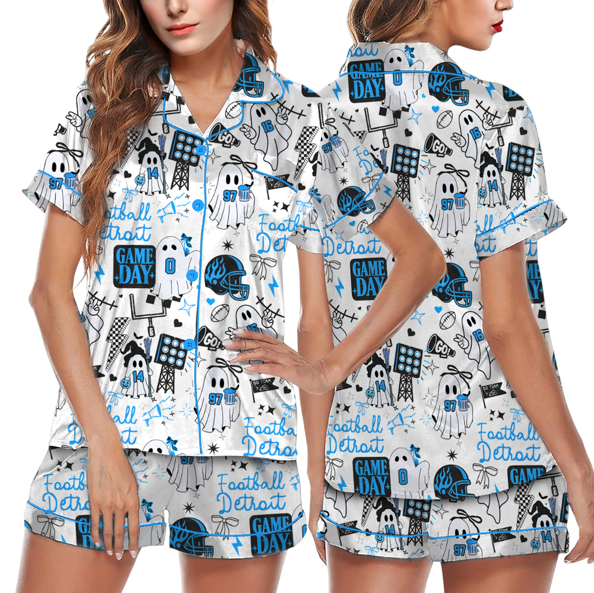 Cute Ghost Detroit Satin Pajamas Set