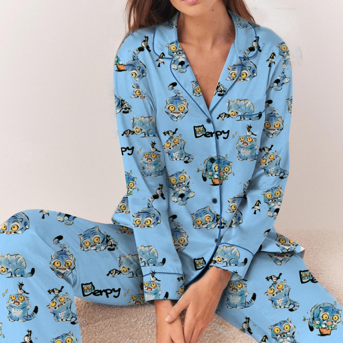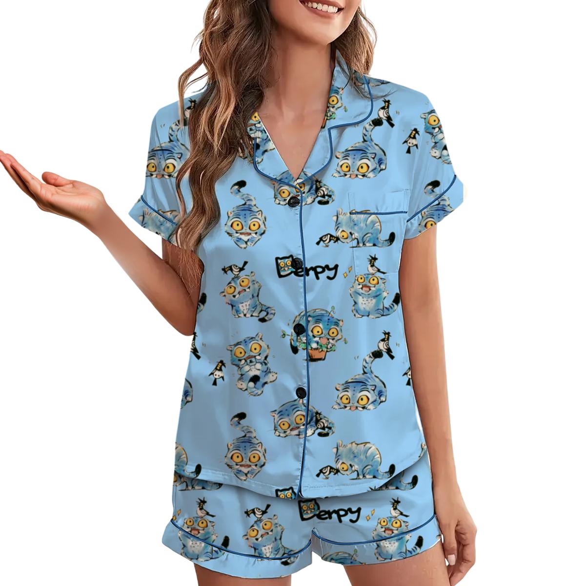 Demon Hunters Jinu’s Pet Derpy Tiger and Bird Satin Pajama Set