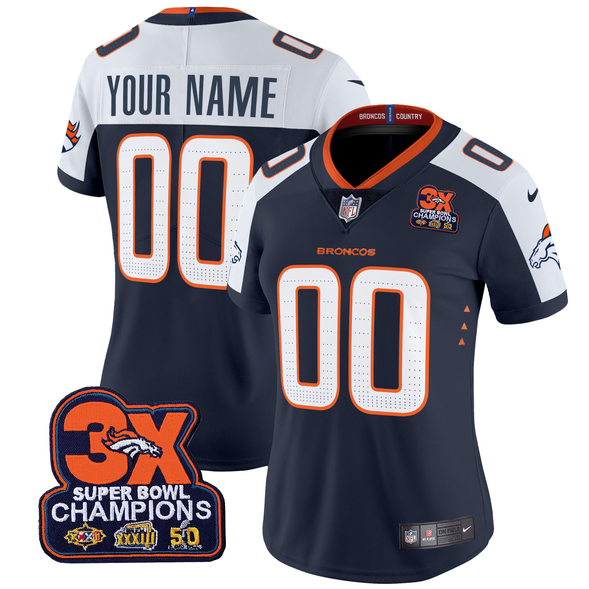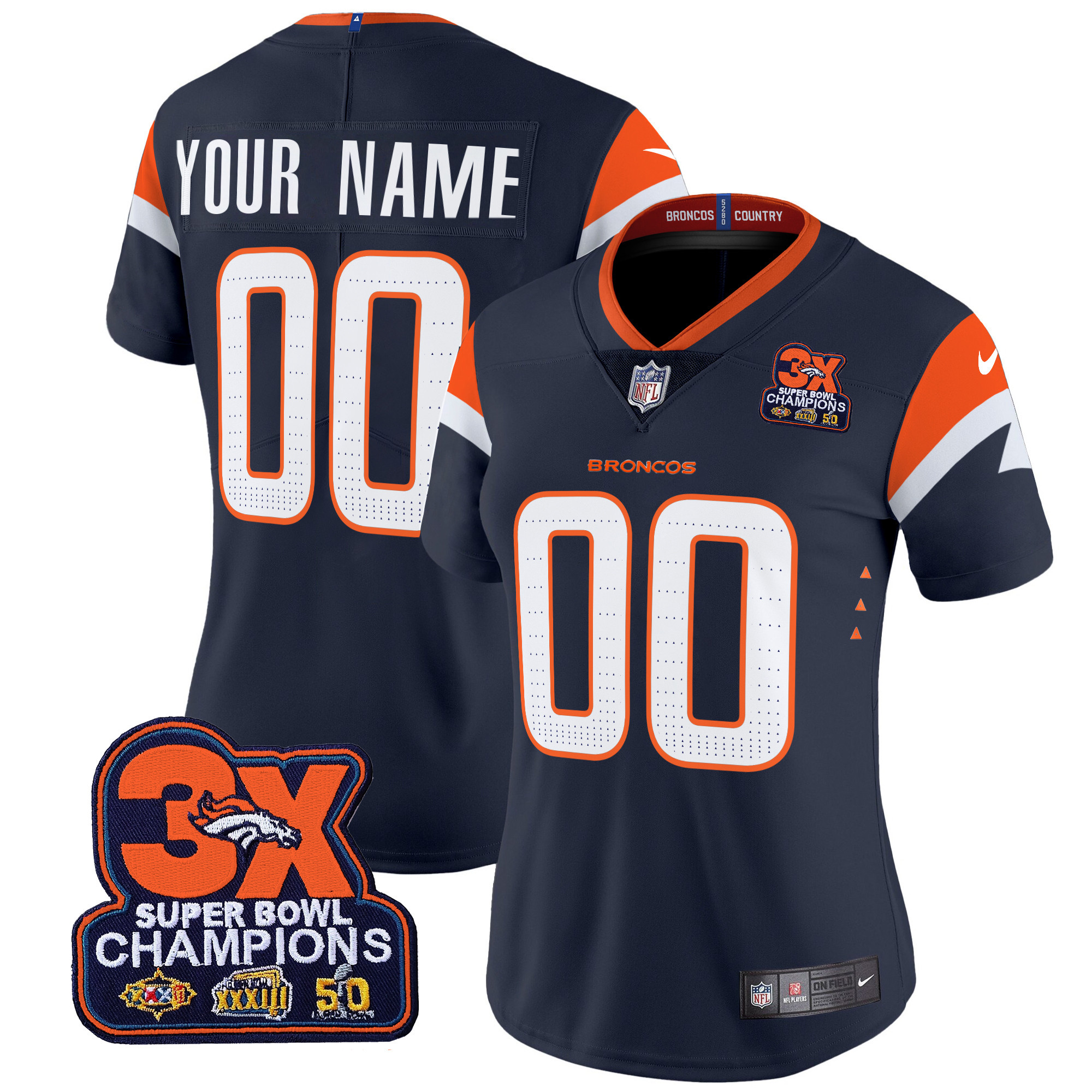 Denver Broncos 3-Time Champions Patch Vapor Limited Custom Jersey – All Stitched