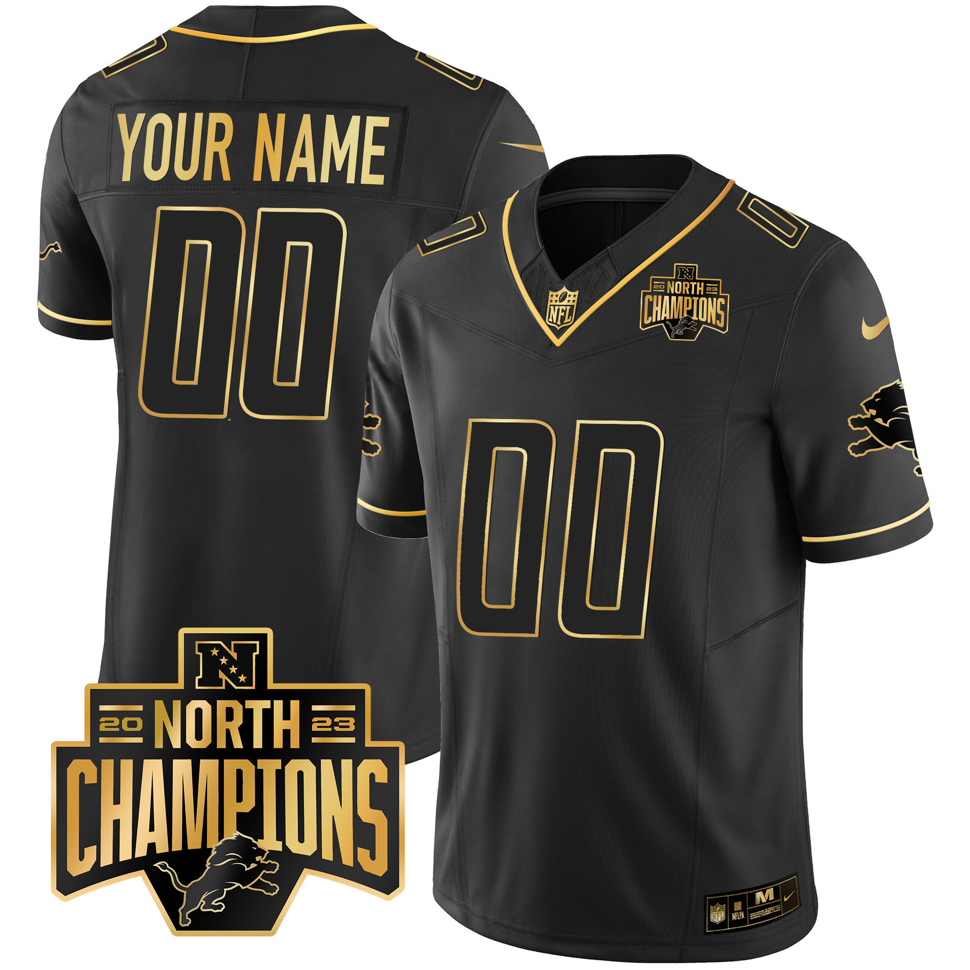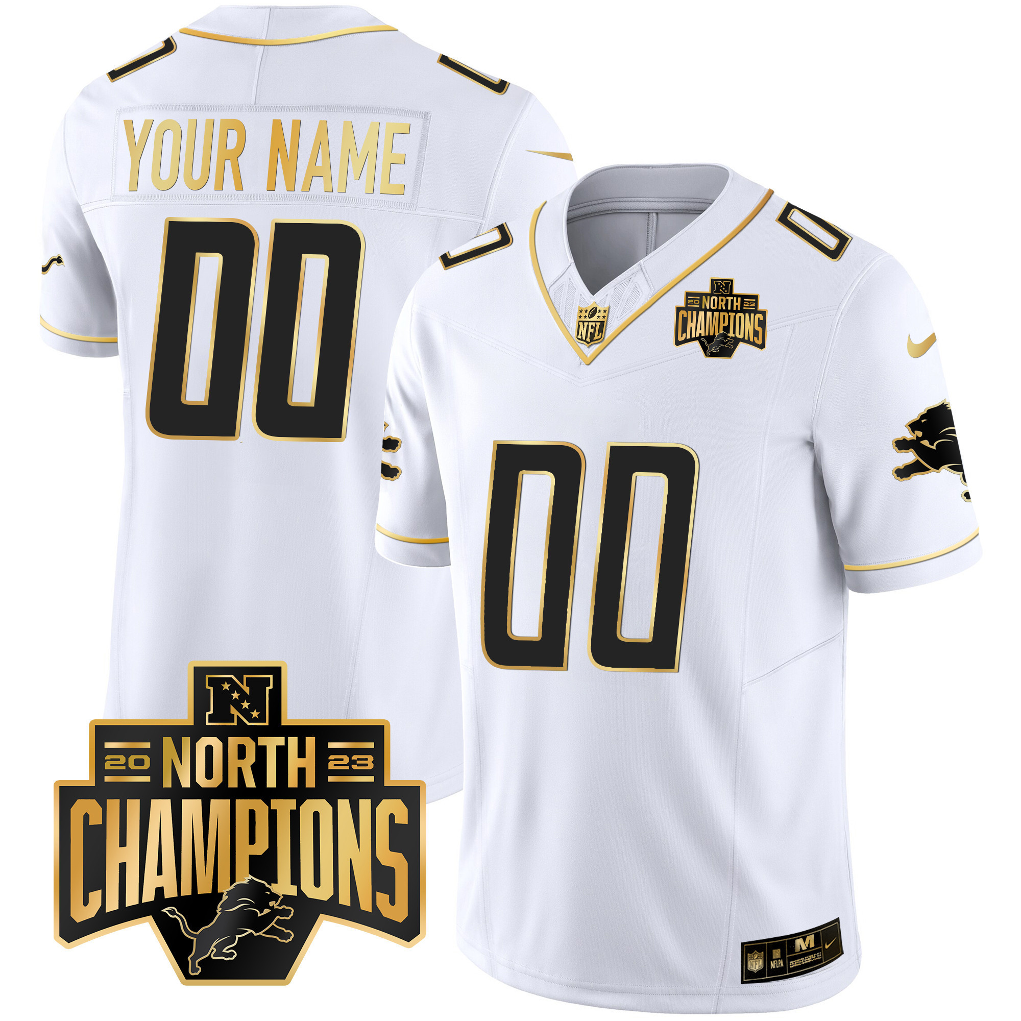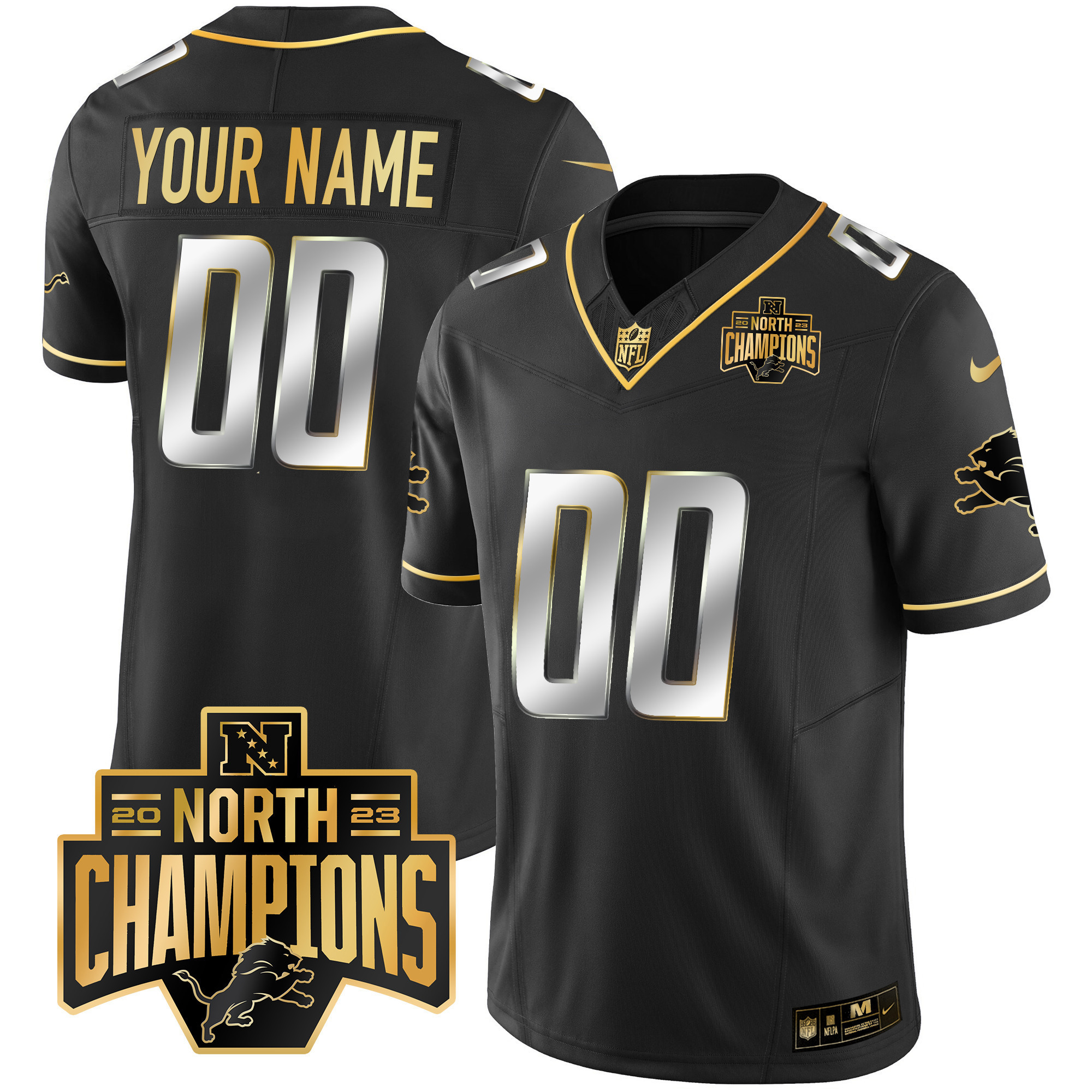Detroit Lions 2023 NFC North Division Champions Patch Vapor Gold Custom Jersey – All Stitched