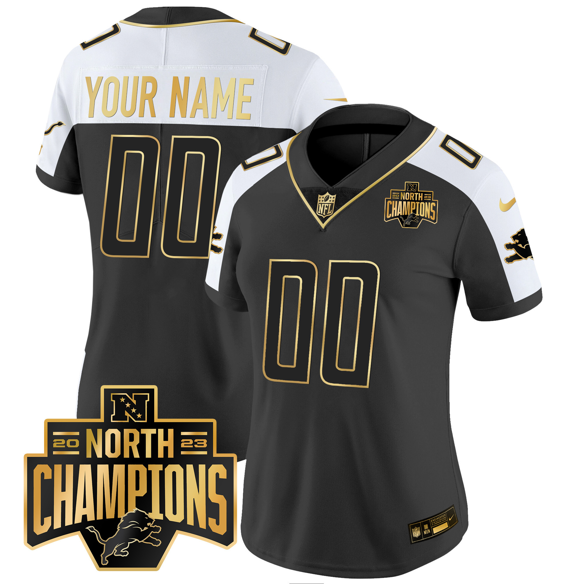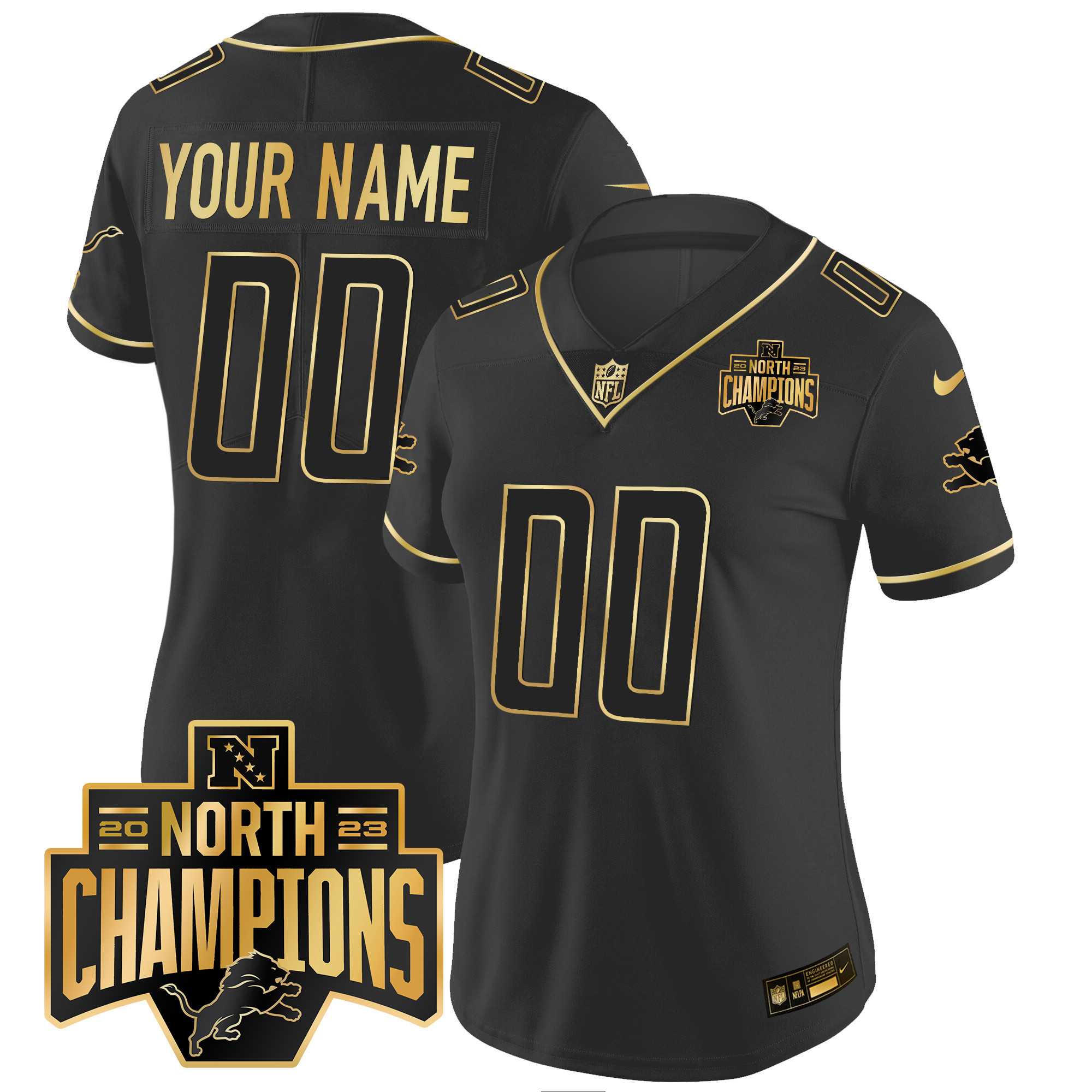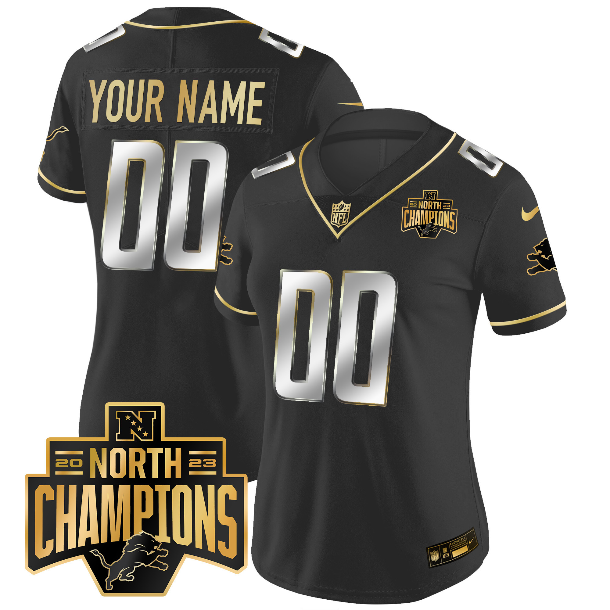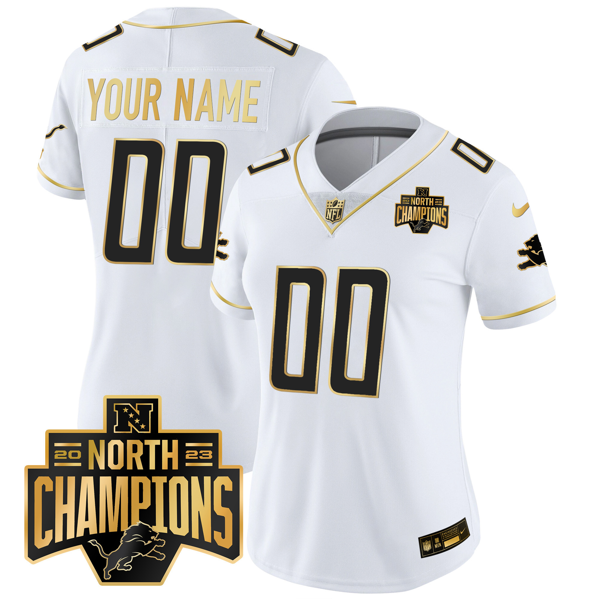 Detroit Lions 2023 NFC North Division Champions Patch Vapor Gold Custom Jersey – All Stitched