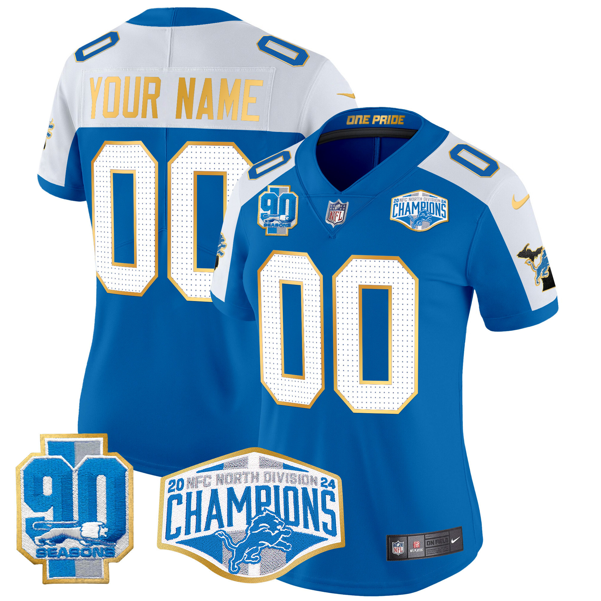 Detroit Lions 2024 NFC North Division Champions Patch Gold Trim Vapor Limited Custom Jersey – All Stitched