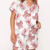 Diet Drinks Pink Bow Coquette Satin Pajama Set For Women