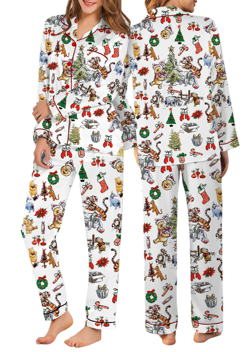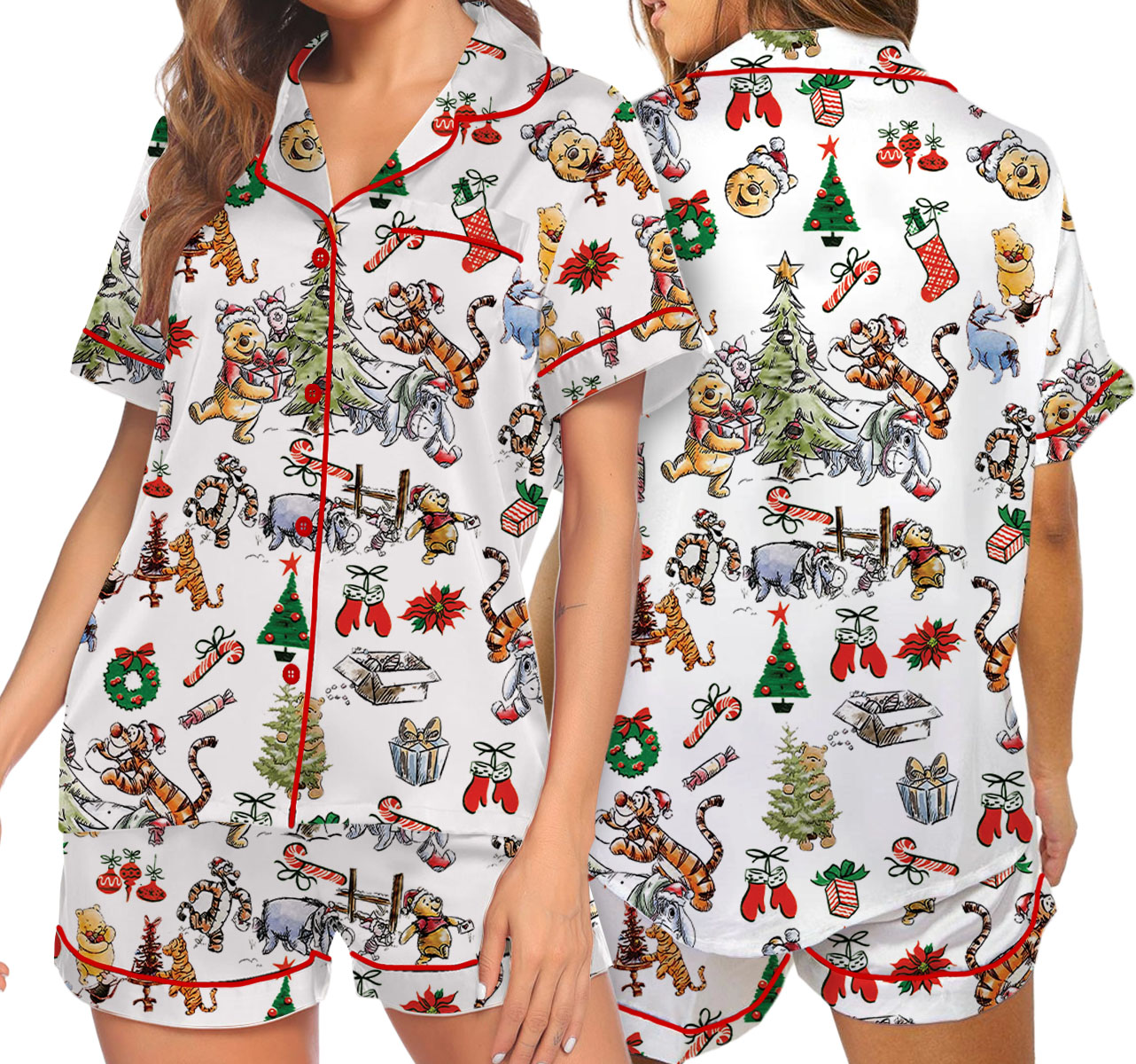 Disney Winnie The Pooh Satin Pajamas Set, Pooh And Friends Pajamas Set, Honey Pooh Bear Women Pajamas, Disney Cartoon Gift