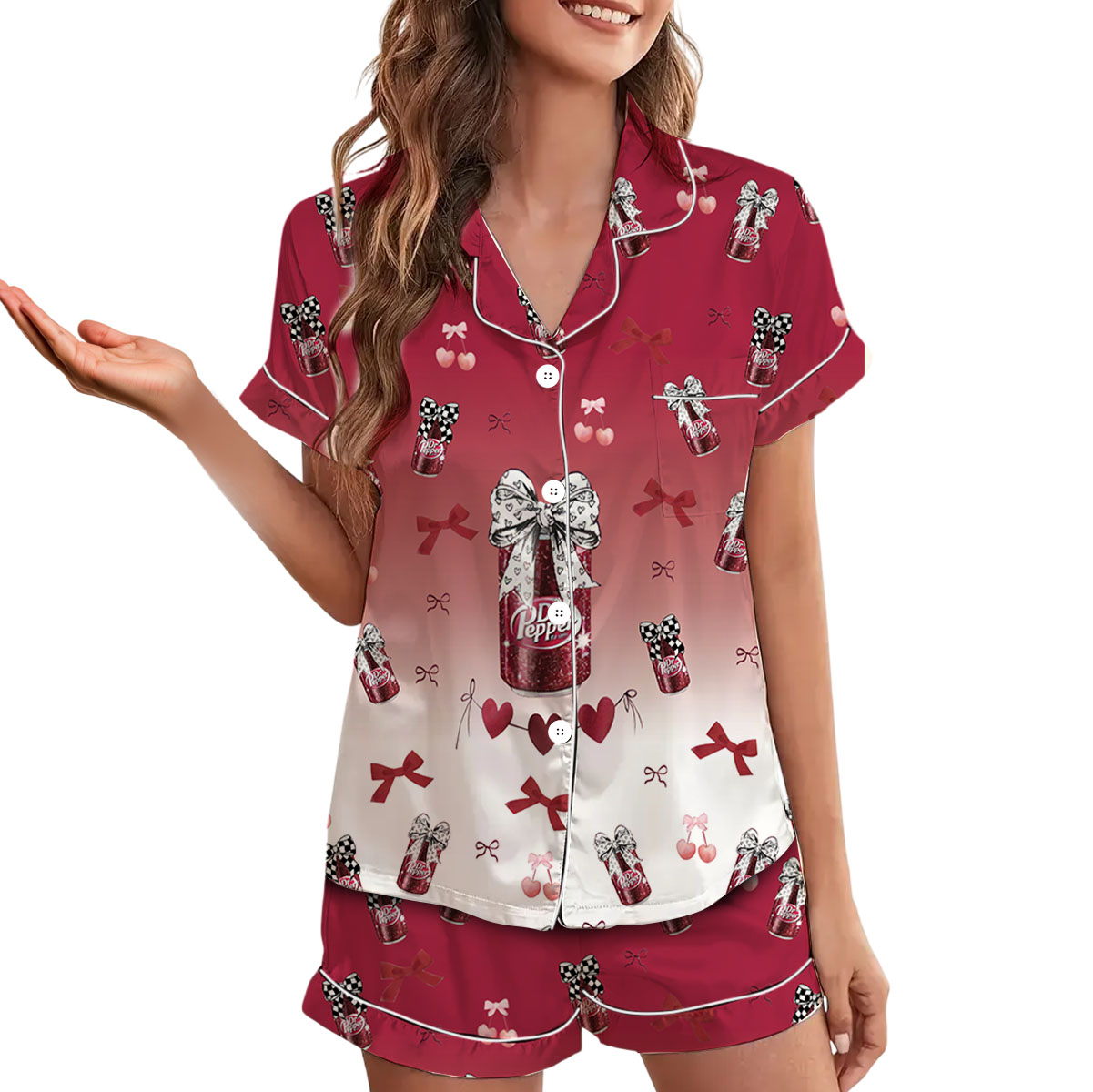 - Short-sleeve, button-front design with a turn-down collar, chest pocket, and contrast piping—classic and stylish for sleepwear, loungewear, or hosting guests.