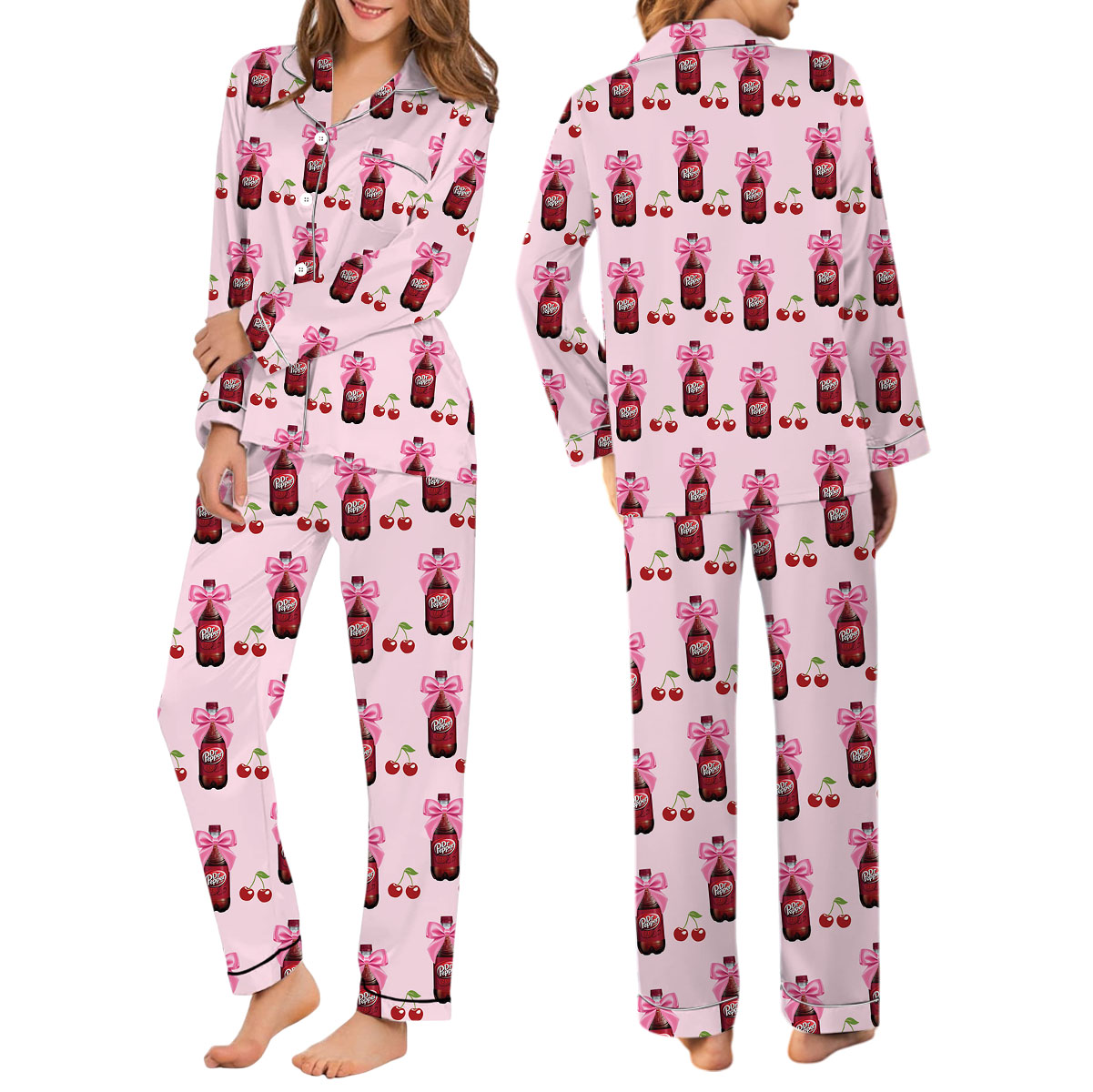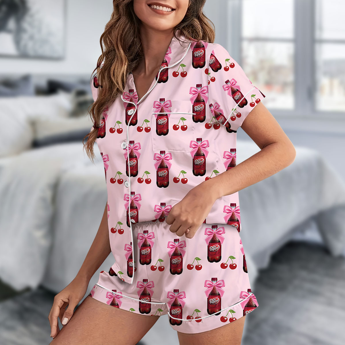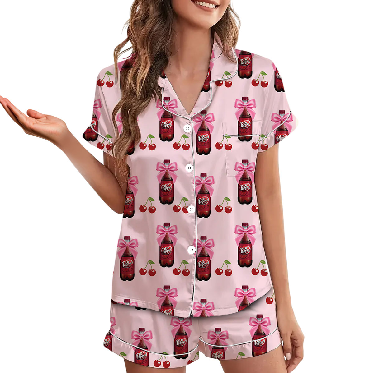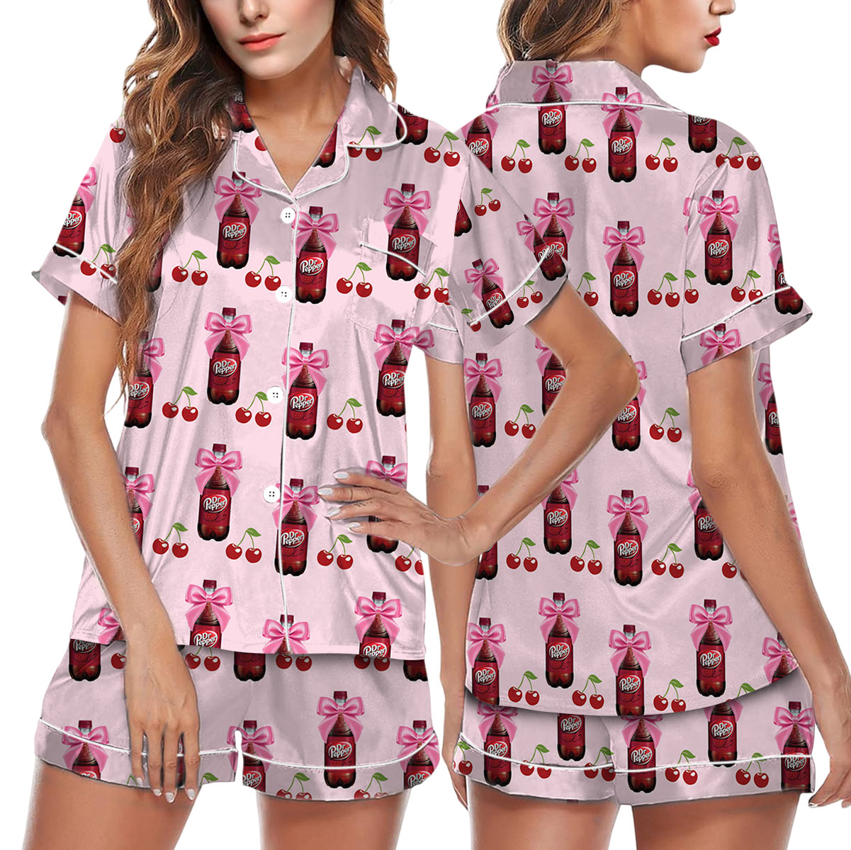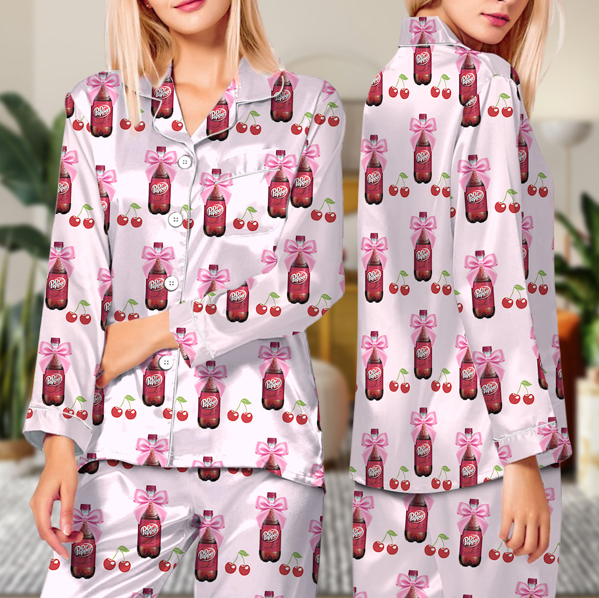 Dr Pepper Coquette With Cherries Satin Pajamas Set