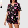 Flamingo Cowgirl Satin Pajama Set, Flamingo Women’s Western Pajama Short Set, Cactus & Cowgirl Print Summer Lounge Set