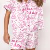 Football Doodles Game Day Silky Satin Pajama Set For Women