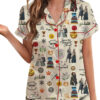 - Short-sleeve, button-front design with a turn-down collar, chest pocket, and contrast piping—classic and stylish for sleepwear, loungewear, or hosting guests.