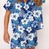 Hawaiian Floral Silky Satin Pajama Set For Women