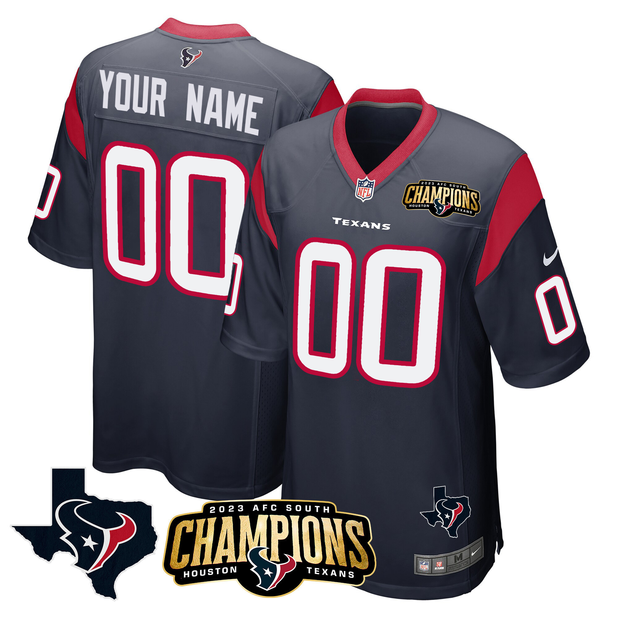 Houston Texans 2023 AFC South Champions Patch Game Custom Jersey – All Stitched