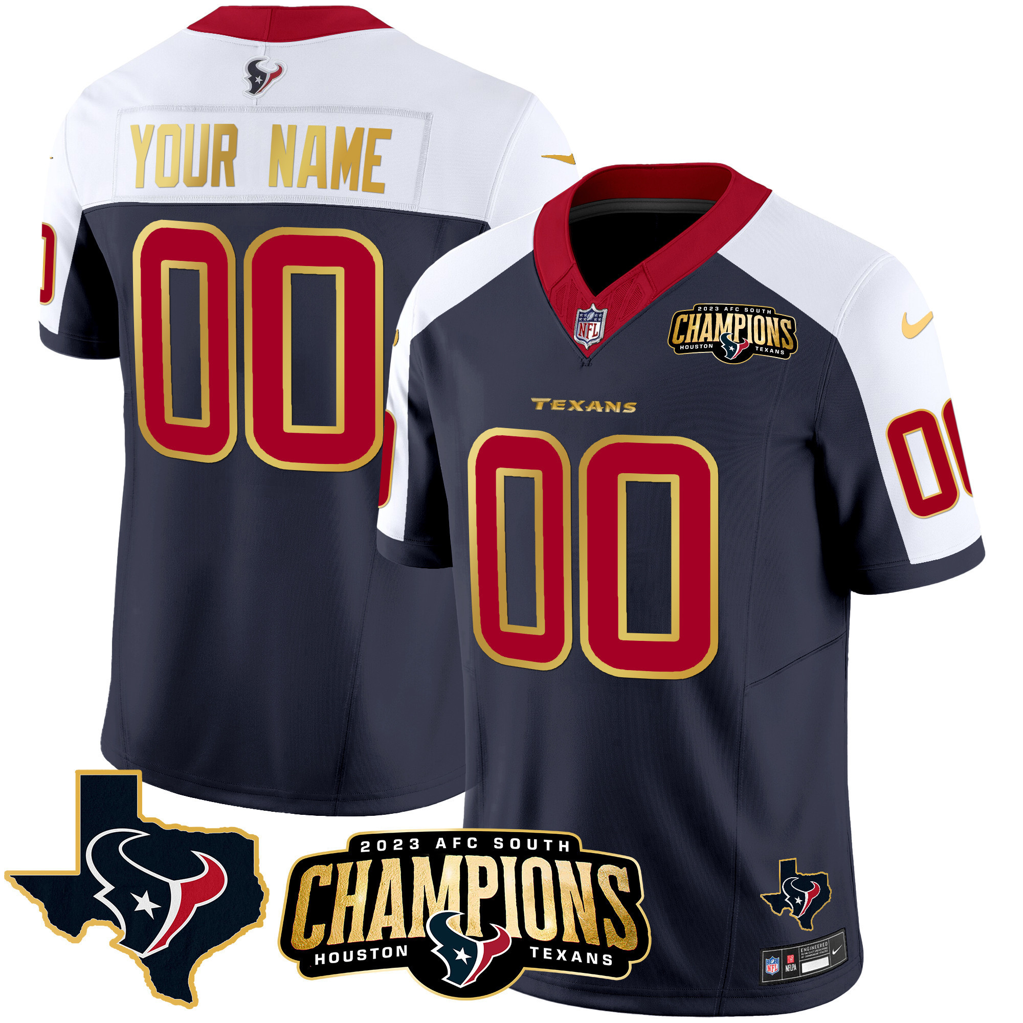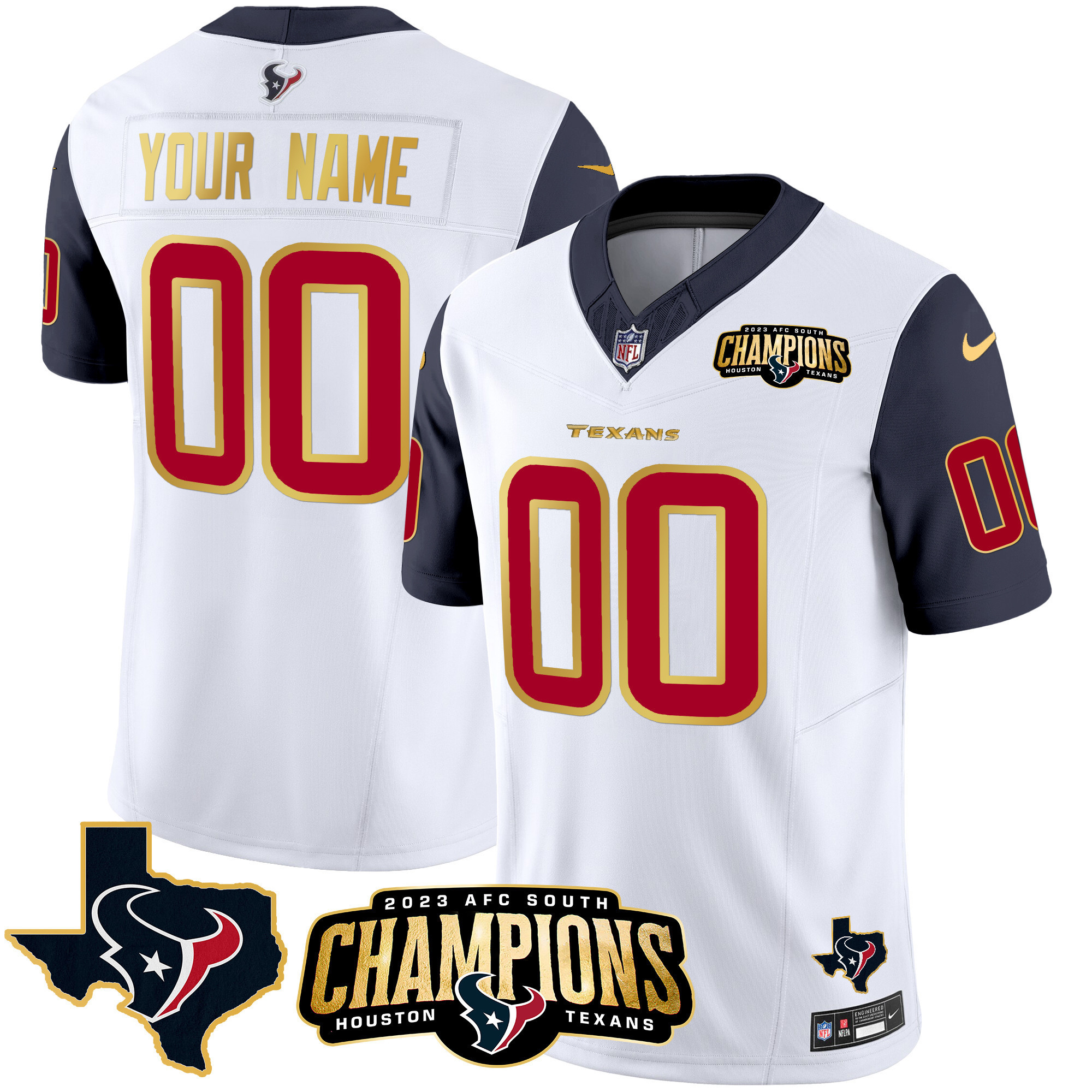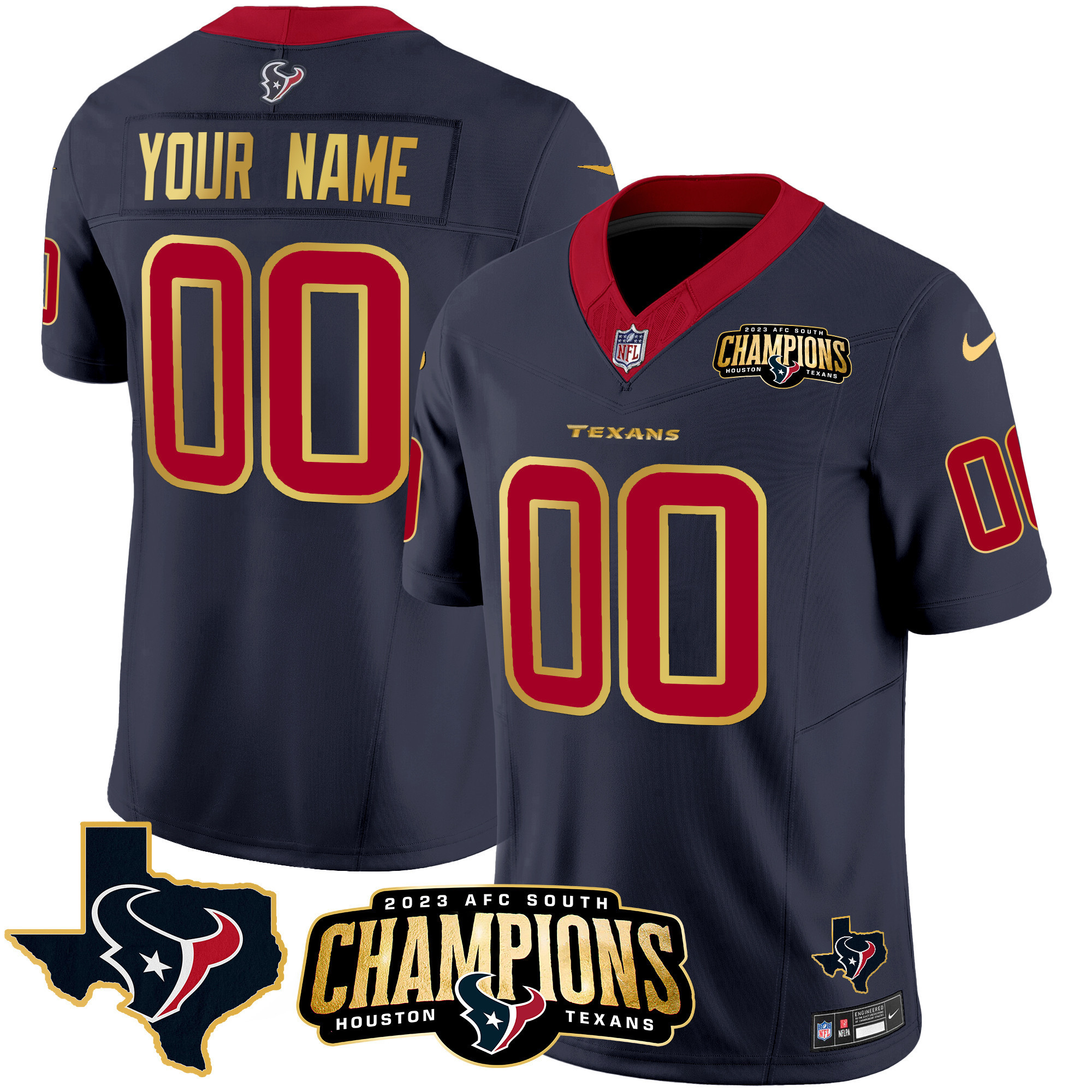 Houston Texans 2023 AFC South Champions Patch Gold Trim Vapor Custom Jersey – All Stitched