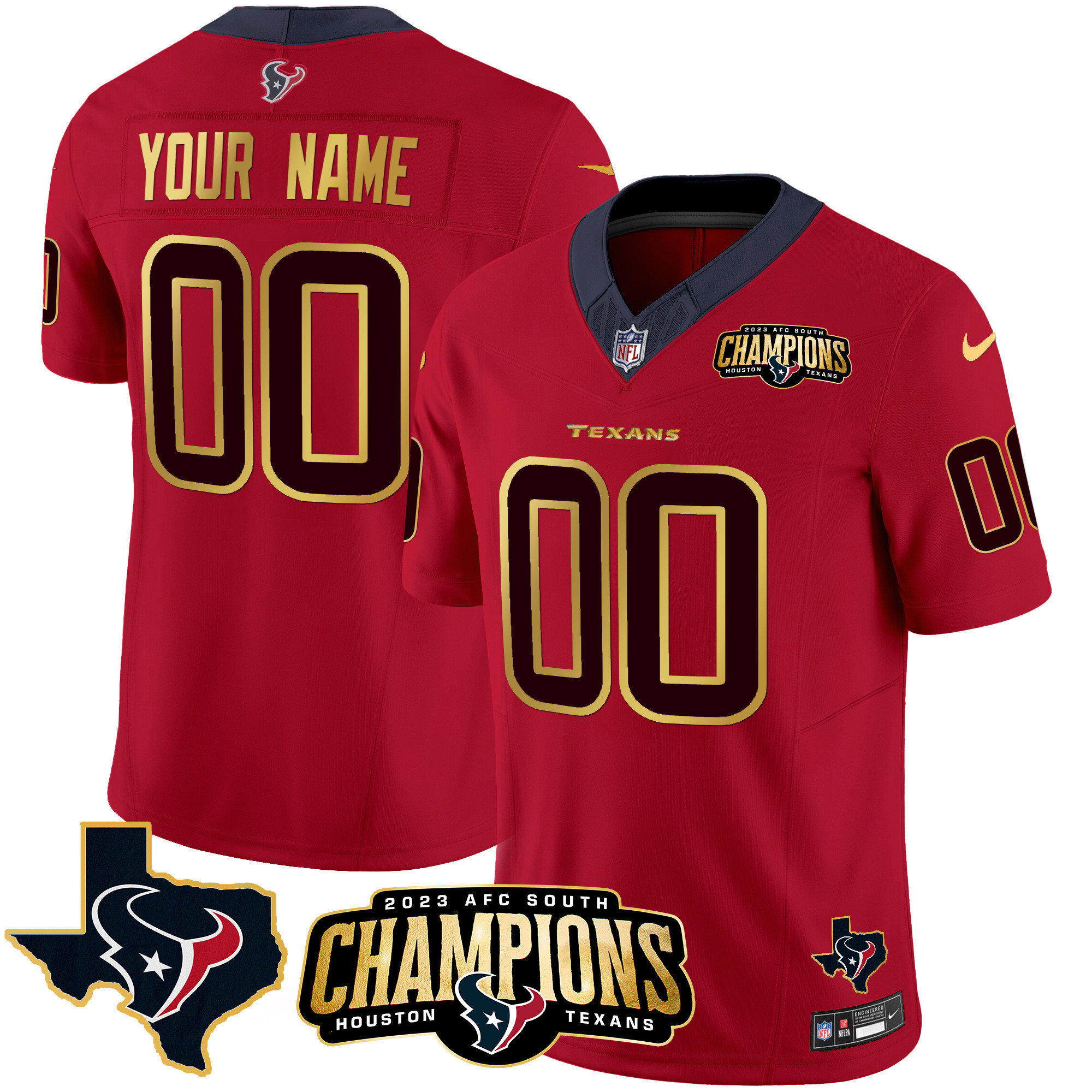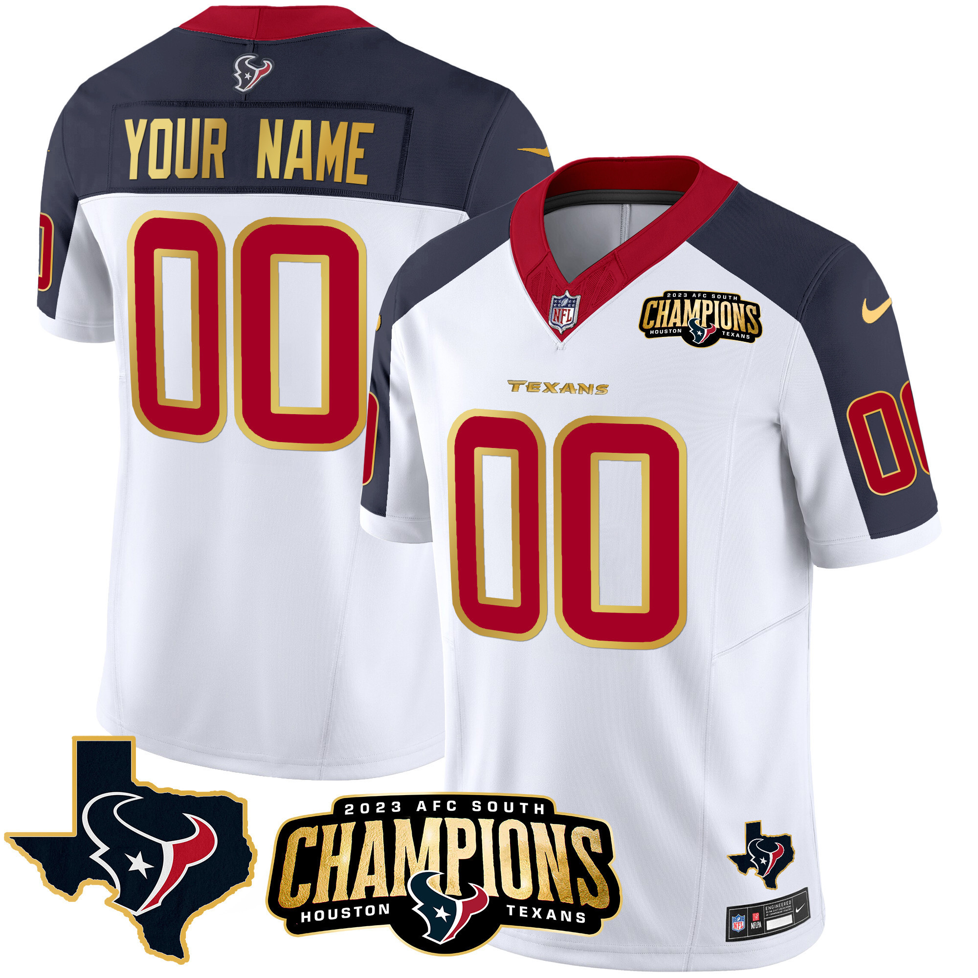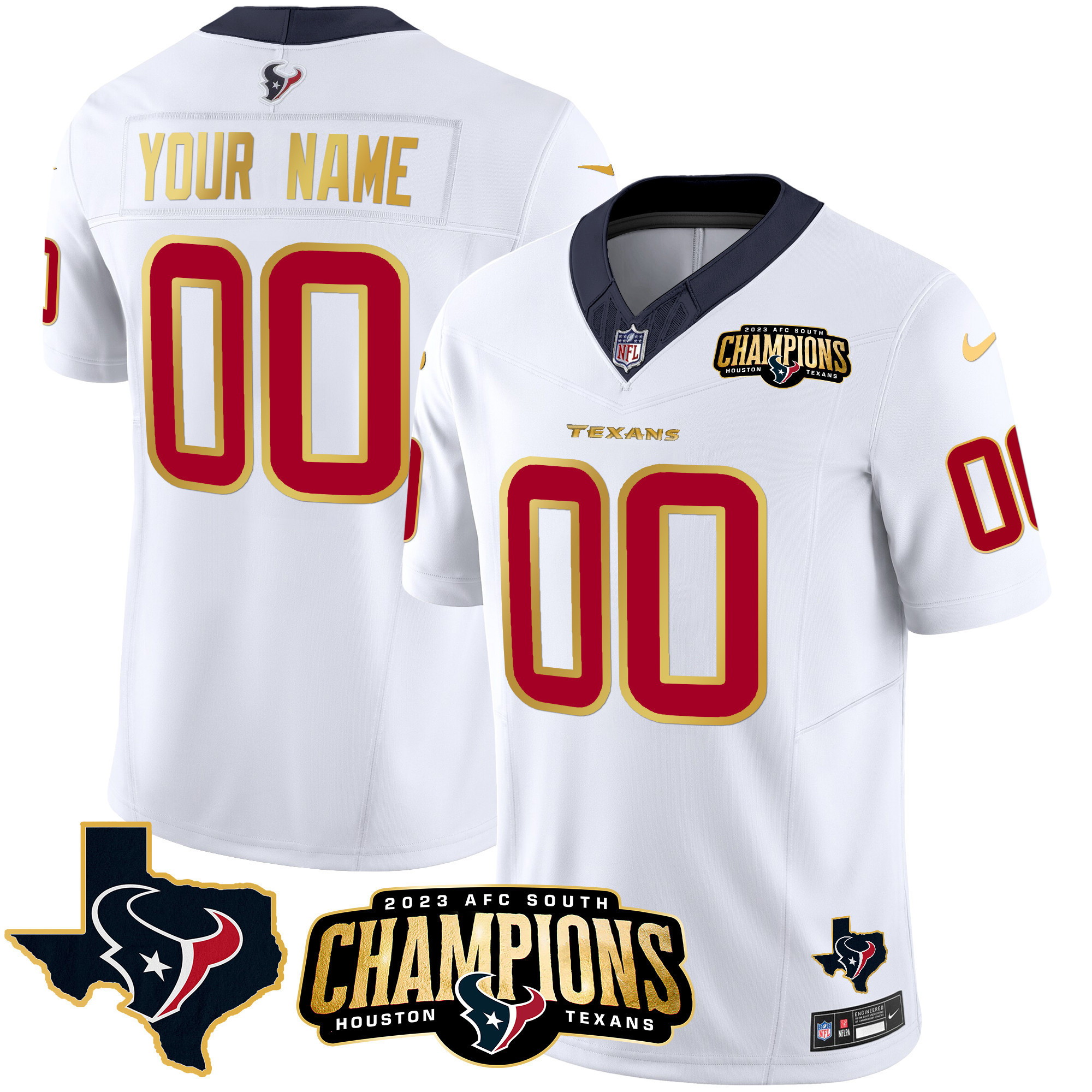 Houston Texans 2023 AFC South Champions Patch Gold Trim Vapor Custom Jersey – All Stitched