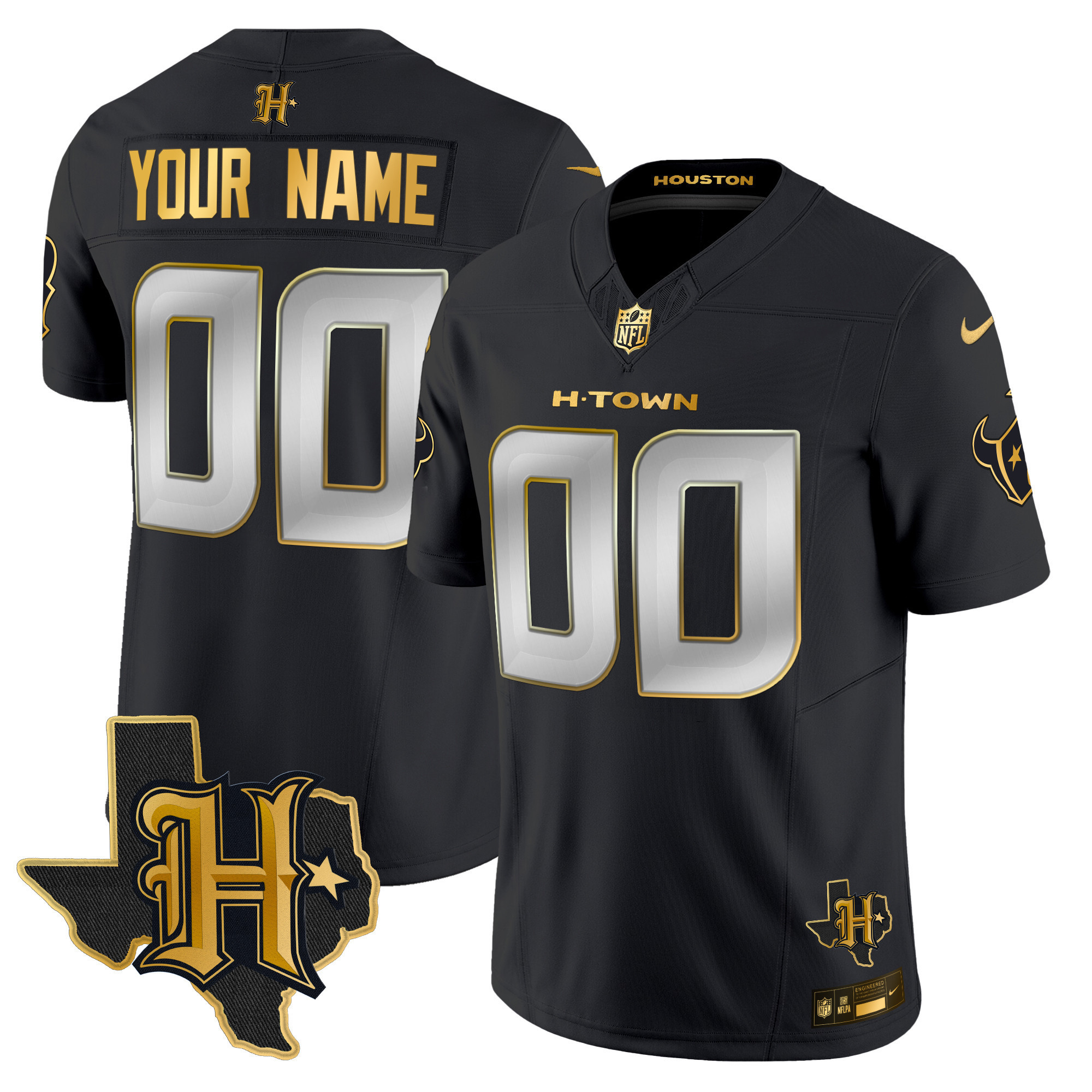 Houston Texans 2024 Texas Patch Gold Vapor Limited Custom Jersey – All Stitched
