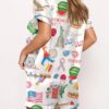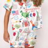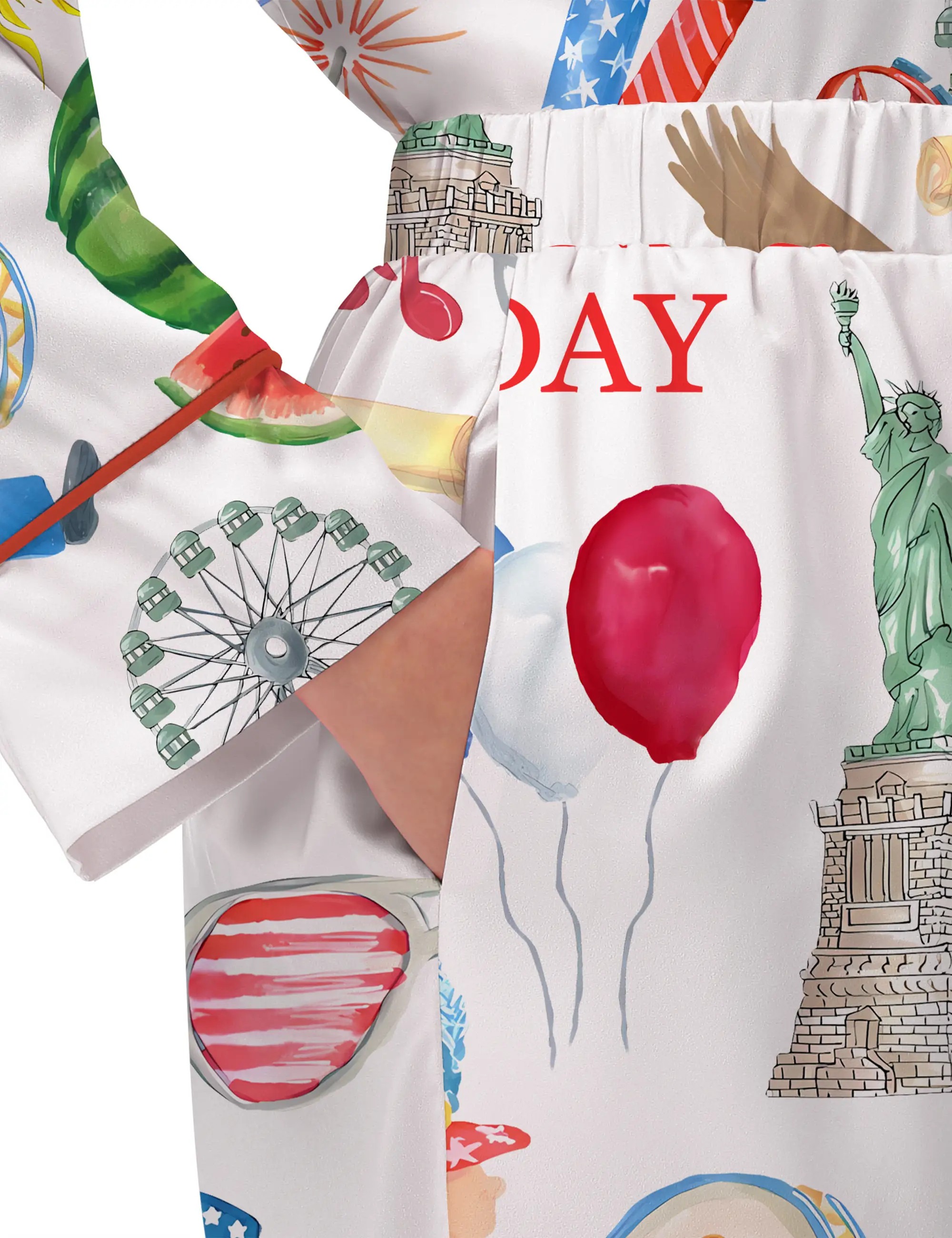 Independence Day Celebration Watercolor Silky Satin Pajama Set For Women