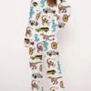 Jurassic Dinosaurs World Silky Satin Pajama Set For Women