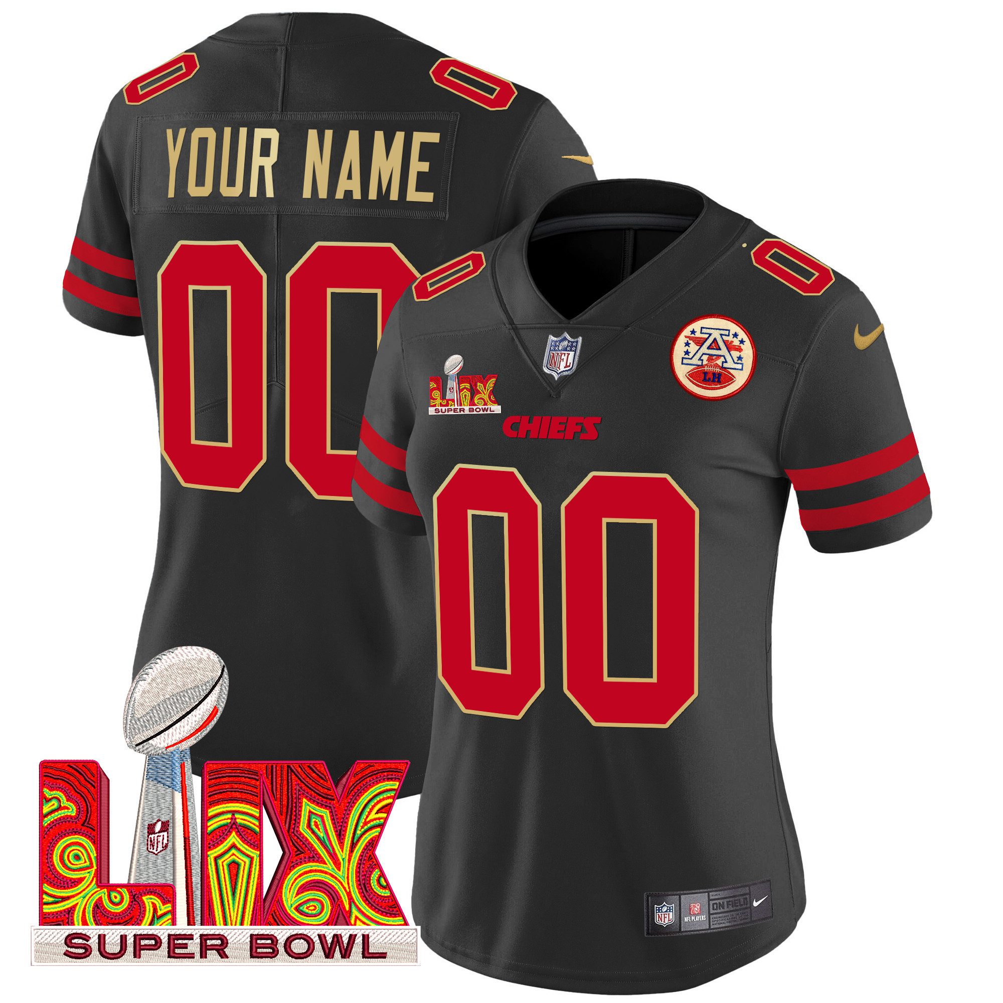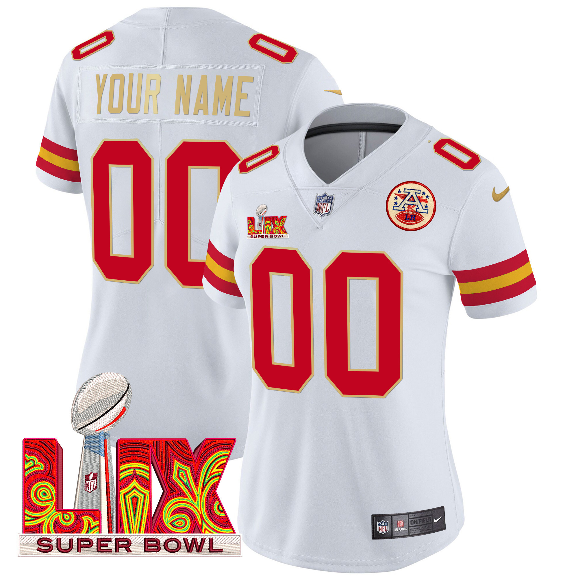Kansas City Chiefs Super Bowl LIX Patch Gold Trim Vapor Limited Custom Jersey – All Stitched