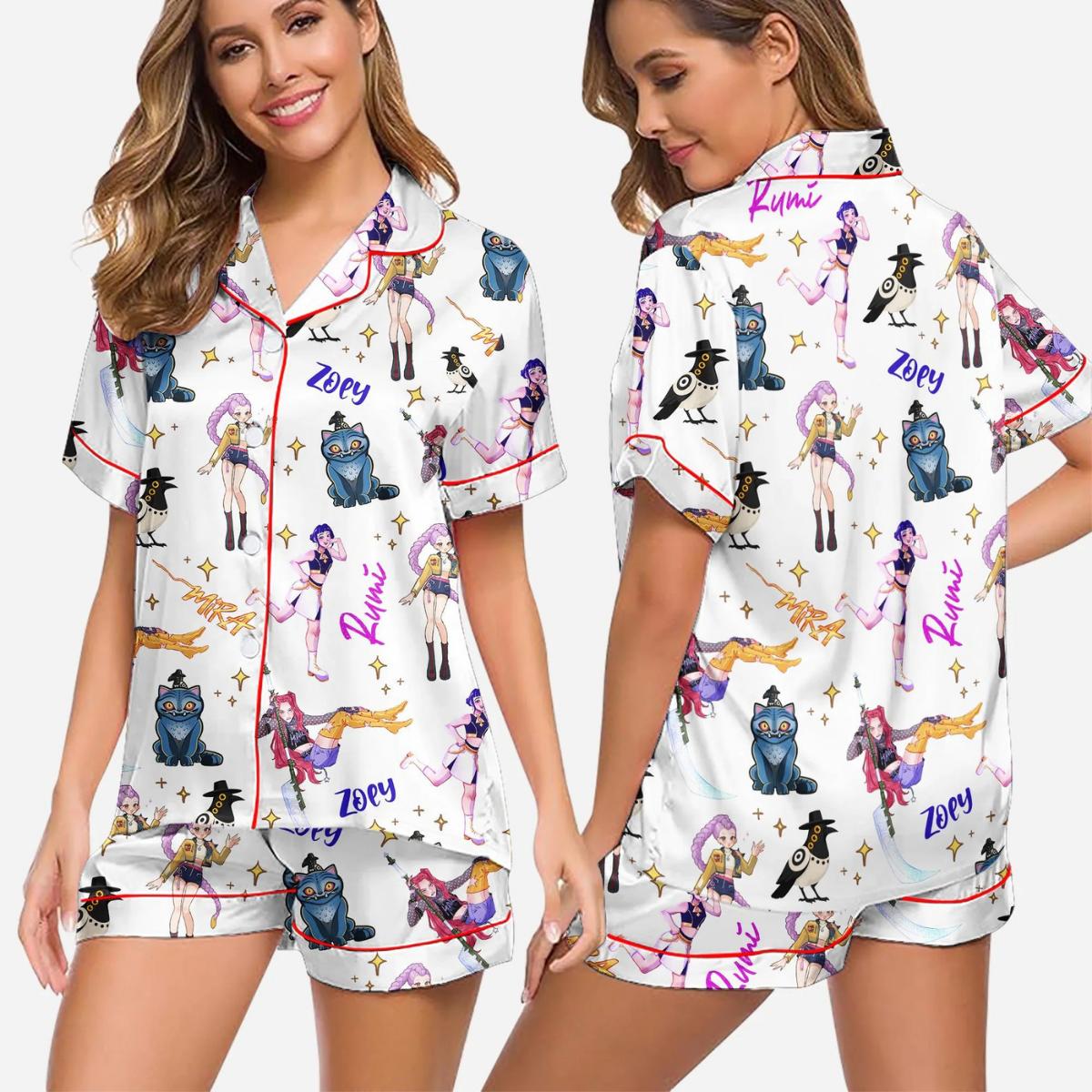 Kpop Demon Hunters Satin Pajama Set, Derpy the Tiger And Bird Sleepwear