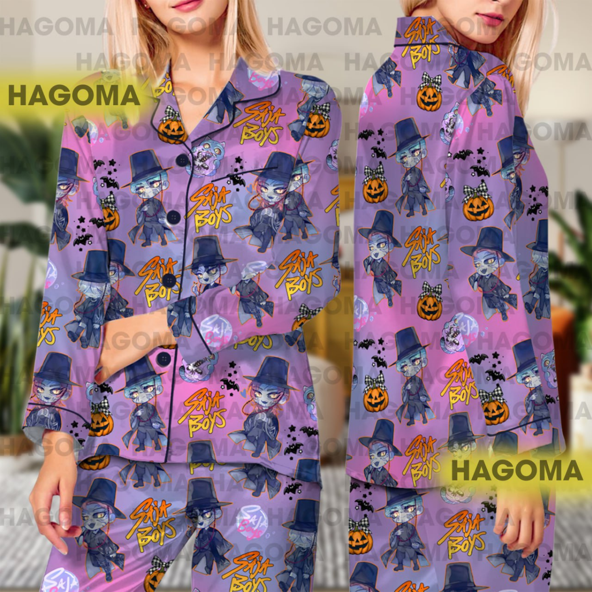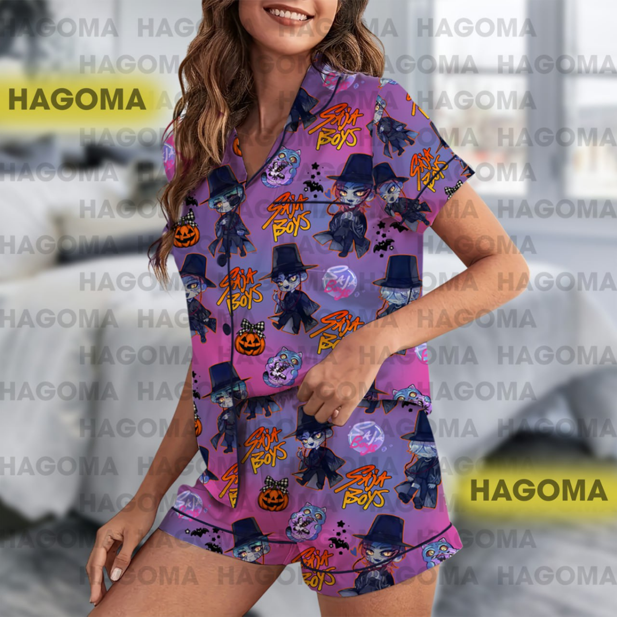 Kpop Saja Boys Halloween Satin Pajamas Set, Kpop Demon Hunters Women Pajama