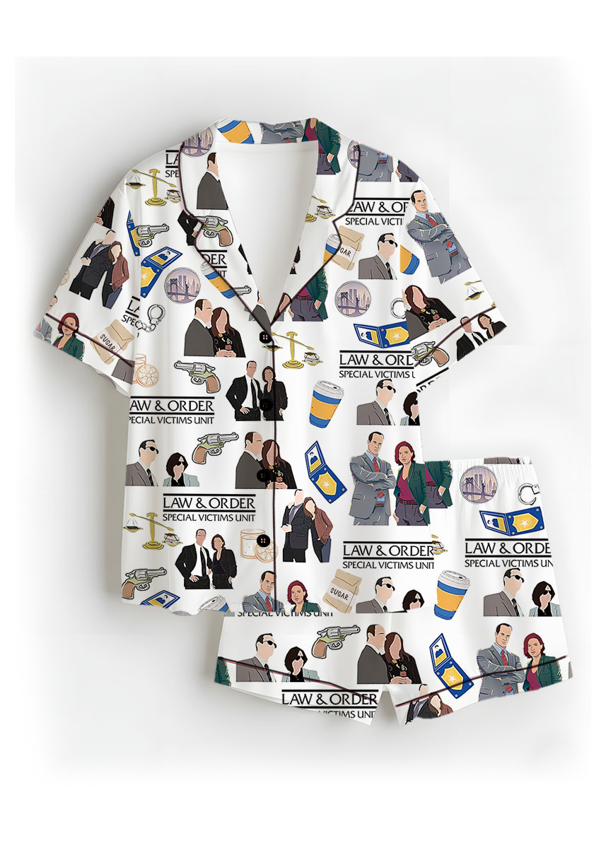 - Short-sleeve, button-front design with a turn-down collar, chest pocket, and contrast piping—classic and stylish for sleepwear, loungewear, or hosting guests.