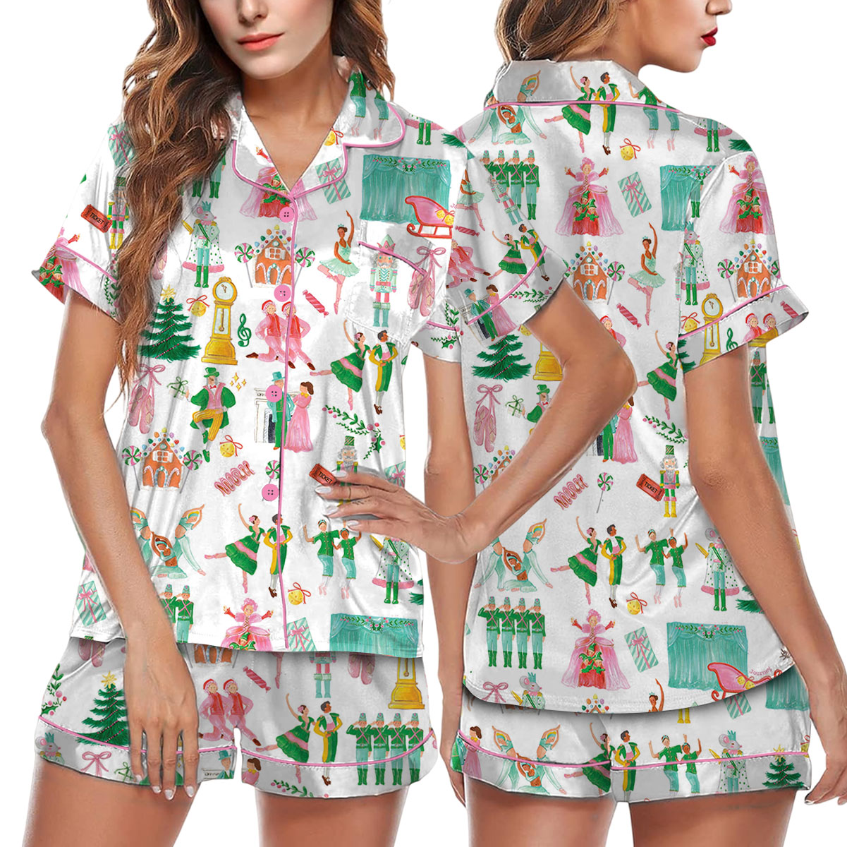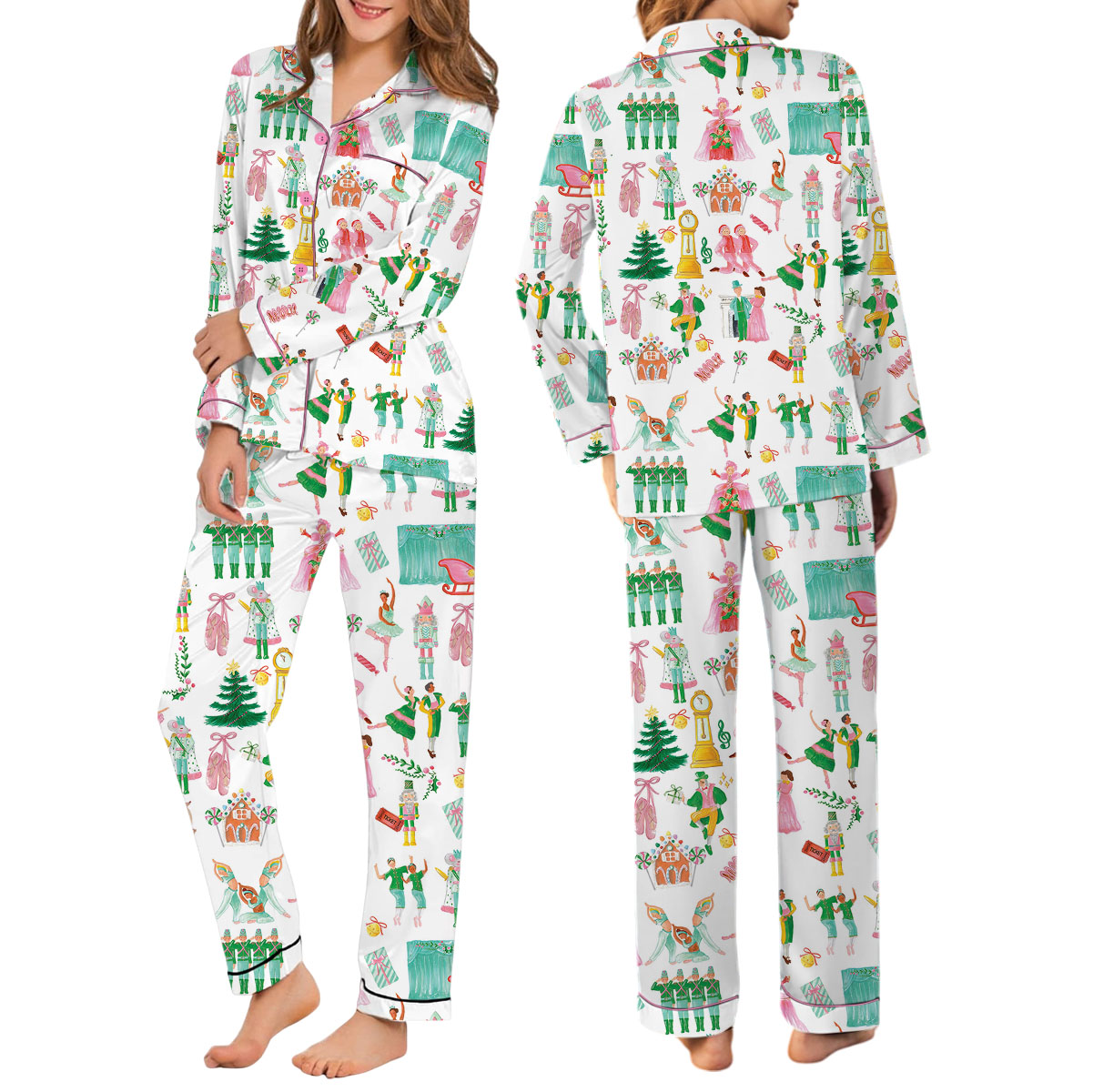 Lovely Nutcracker Christmas Silky Satin Pajama Set For Women
