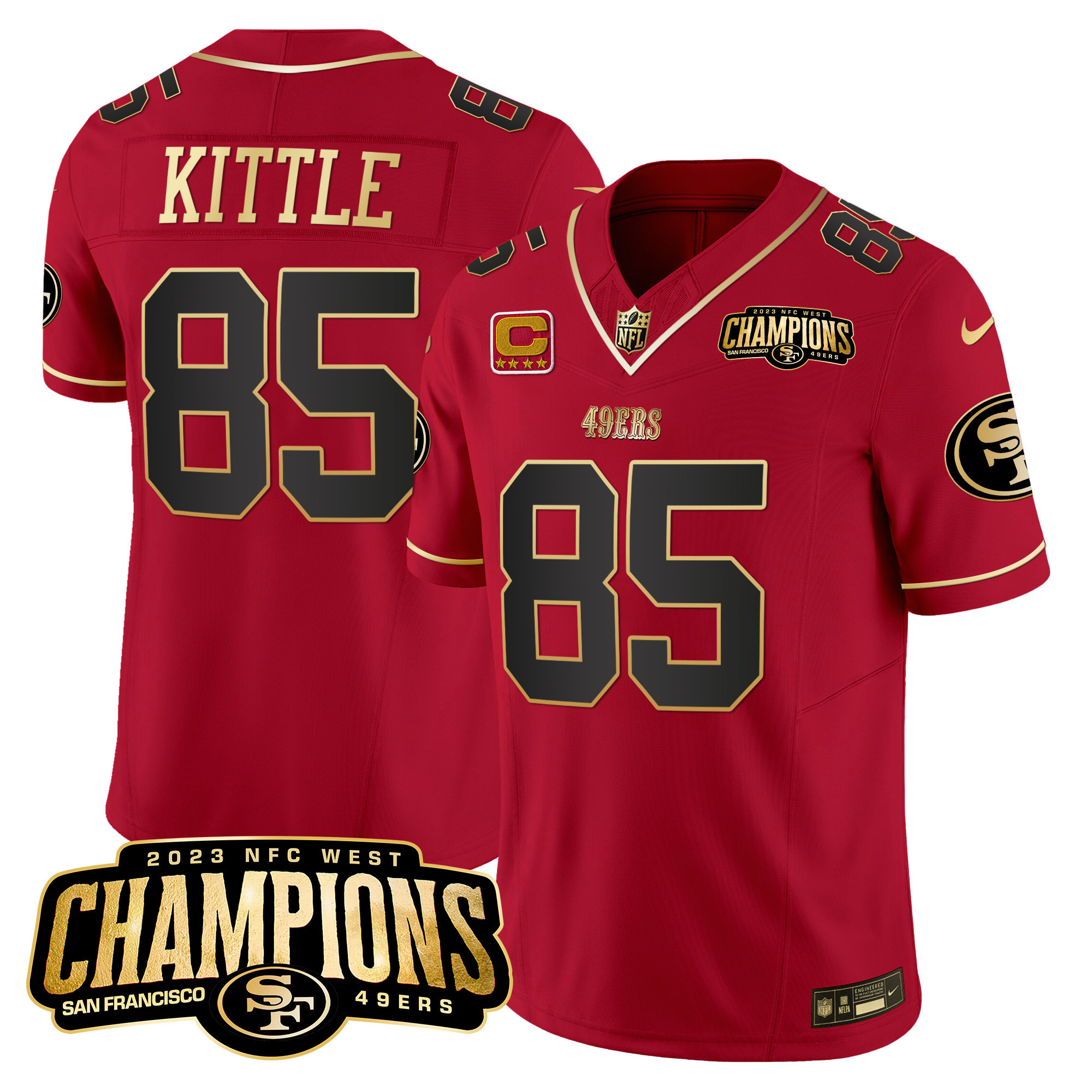 Men’s 49ers 2023 NFC West Champions Patch Vapor Jersey V2 – All Stitched