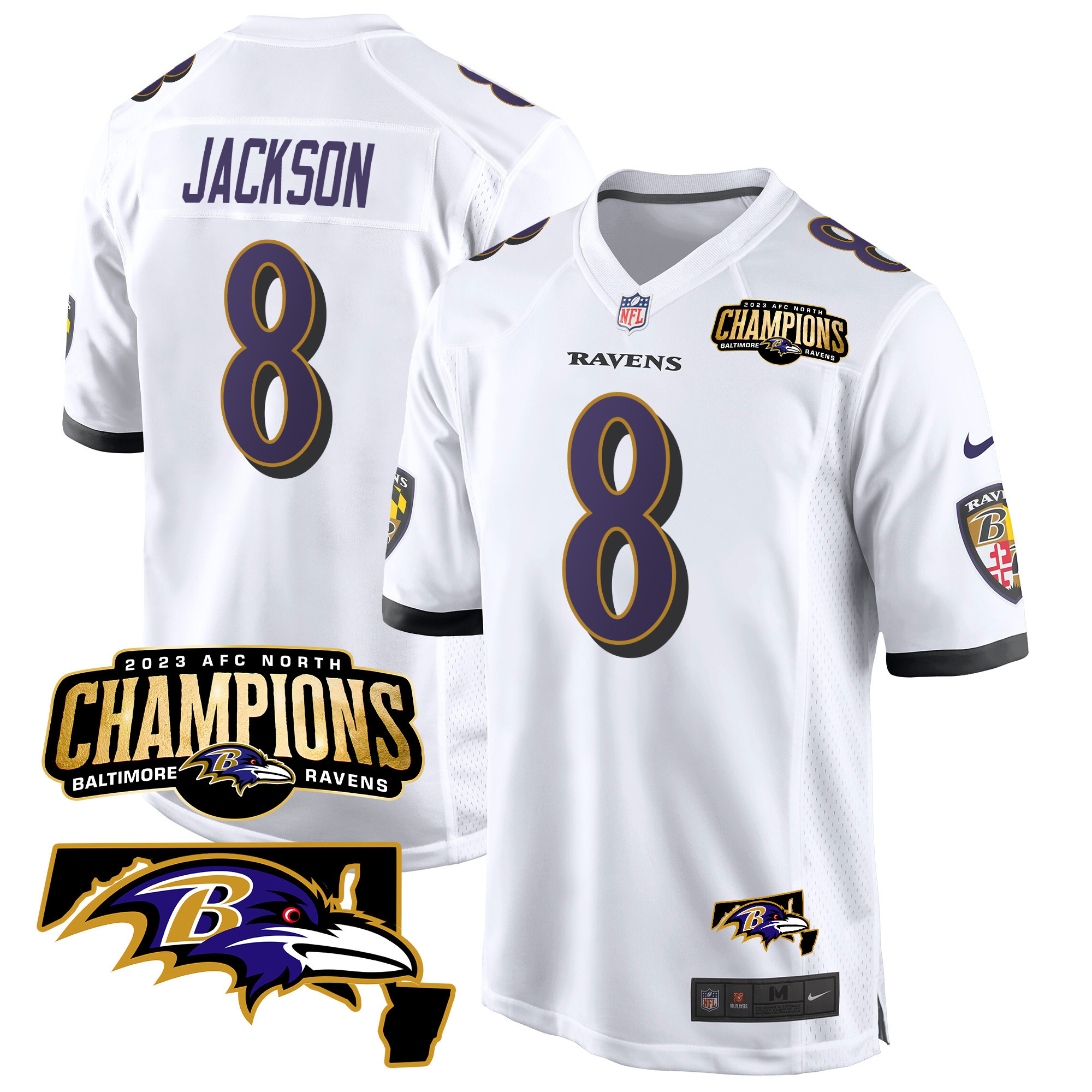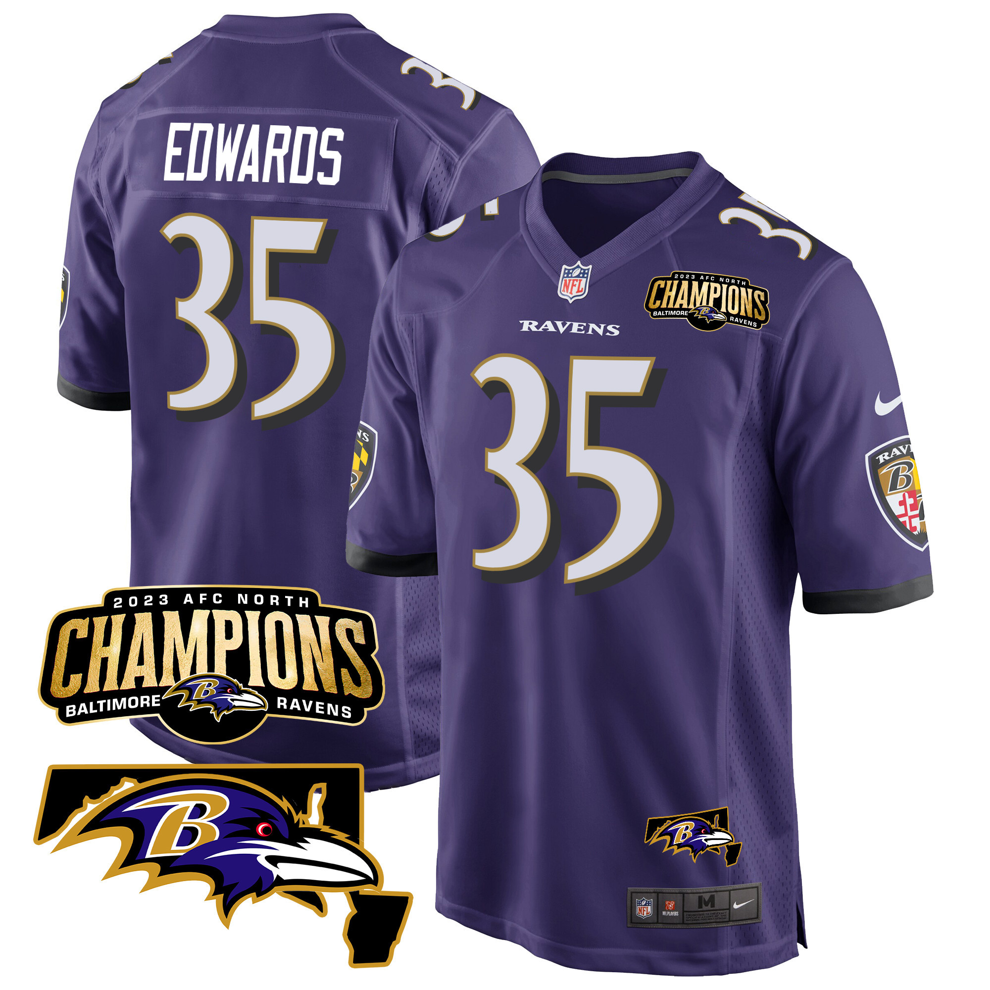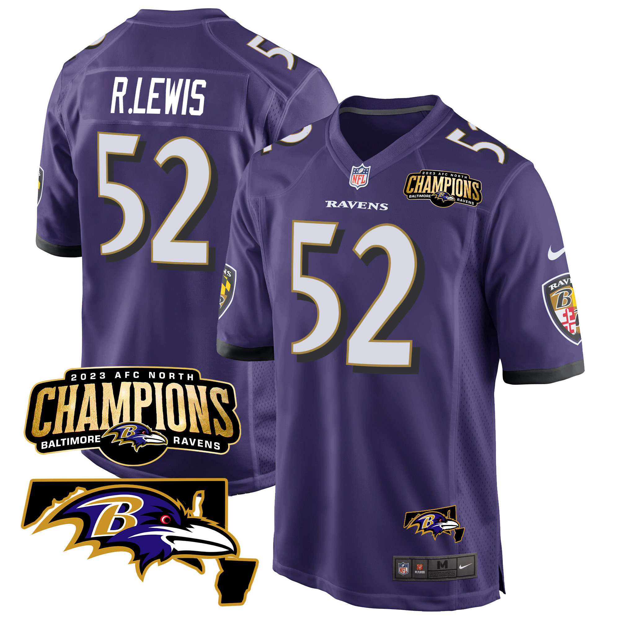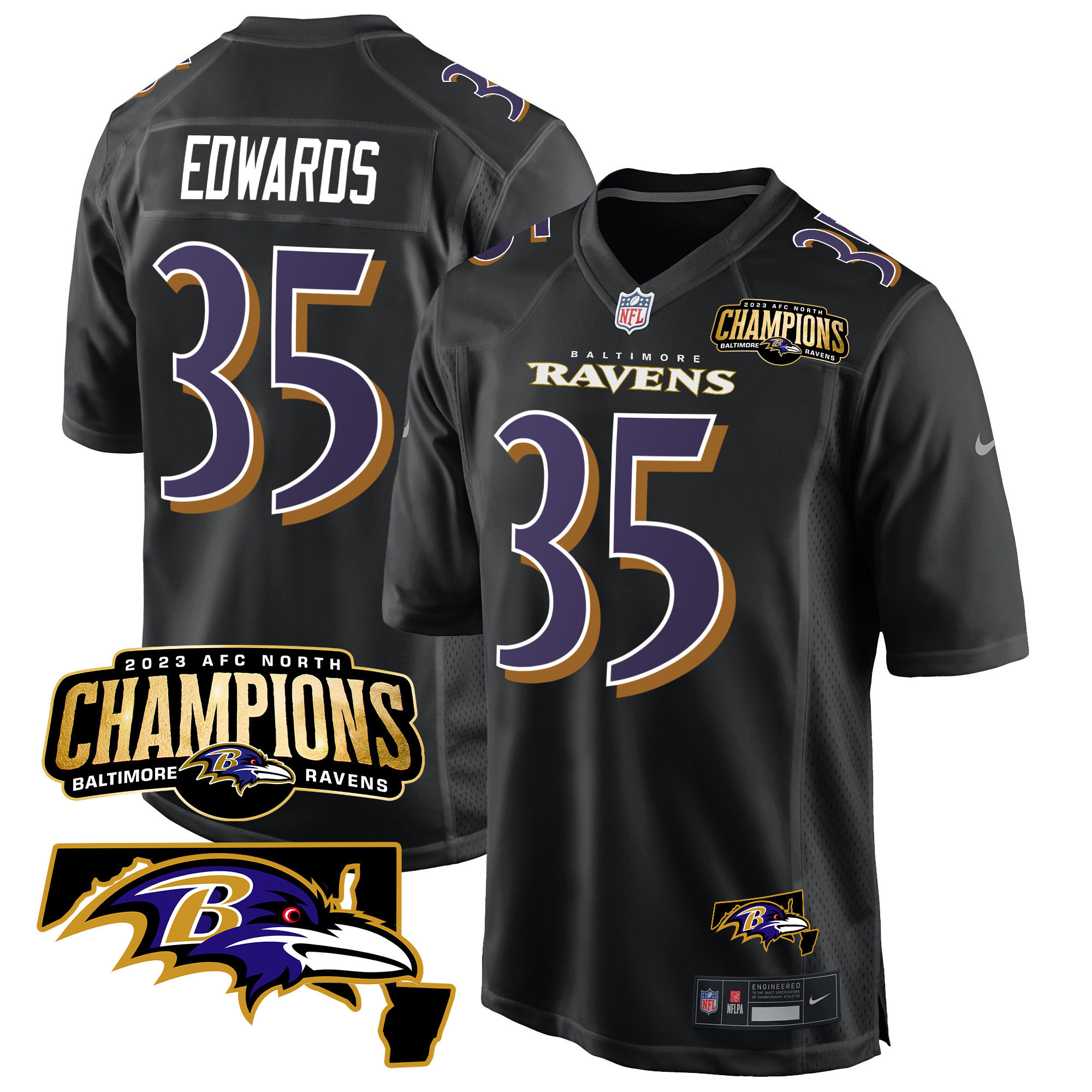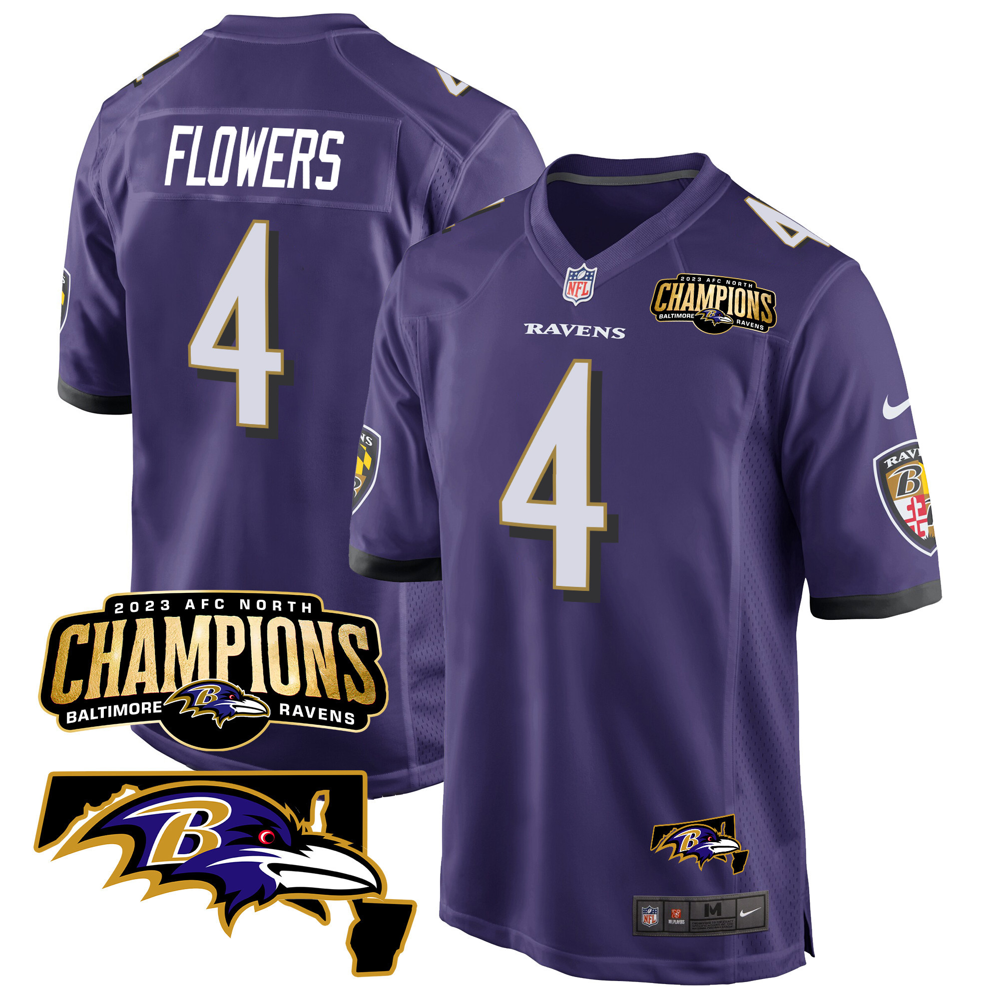 Men’s Baltimore Ravens 2023 AFC North Champions & Maryland Patch Game Jersey – All Stitched