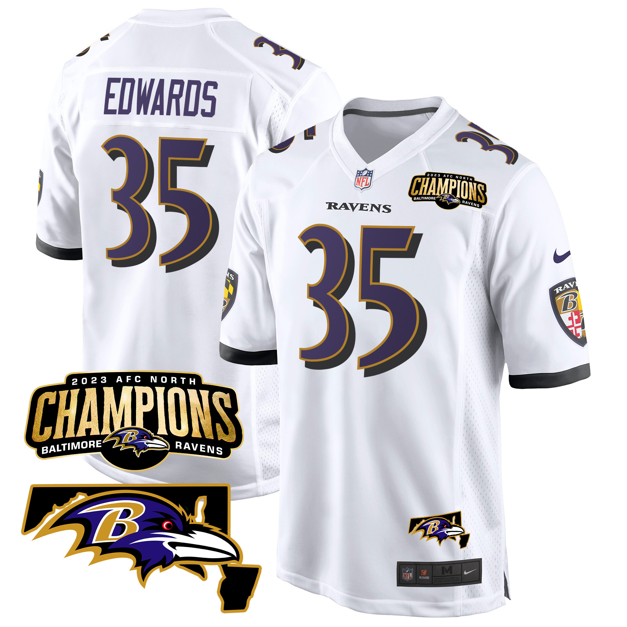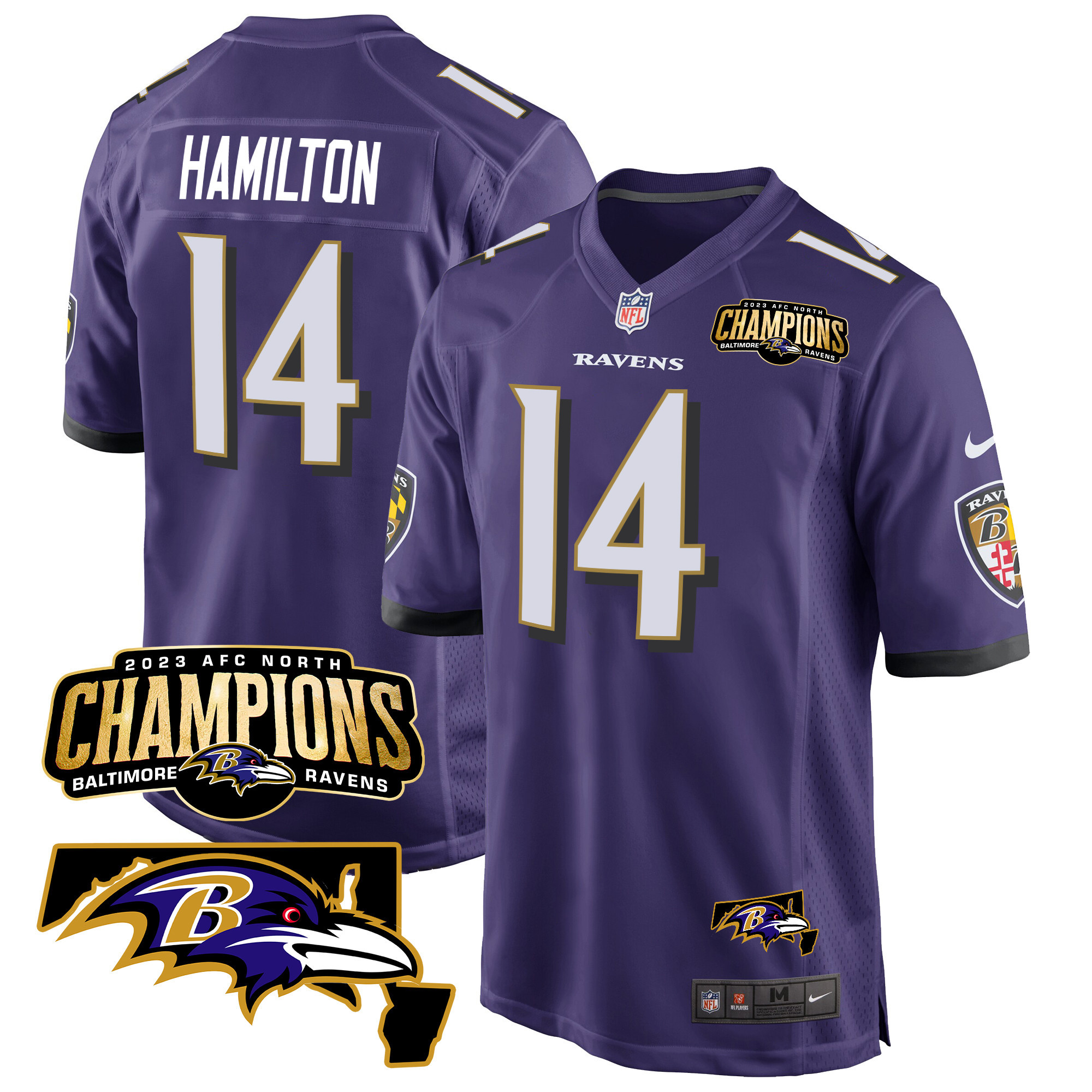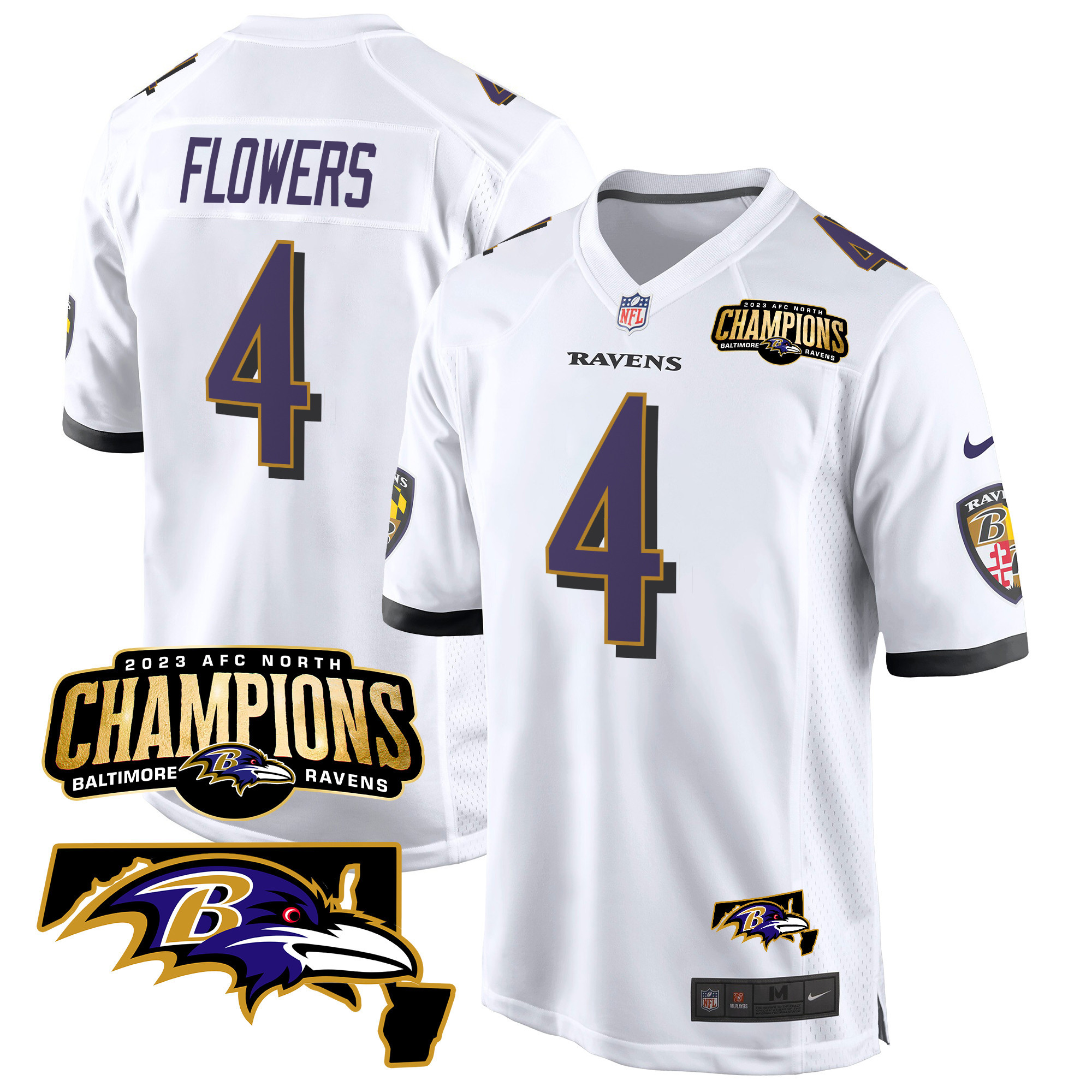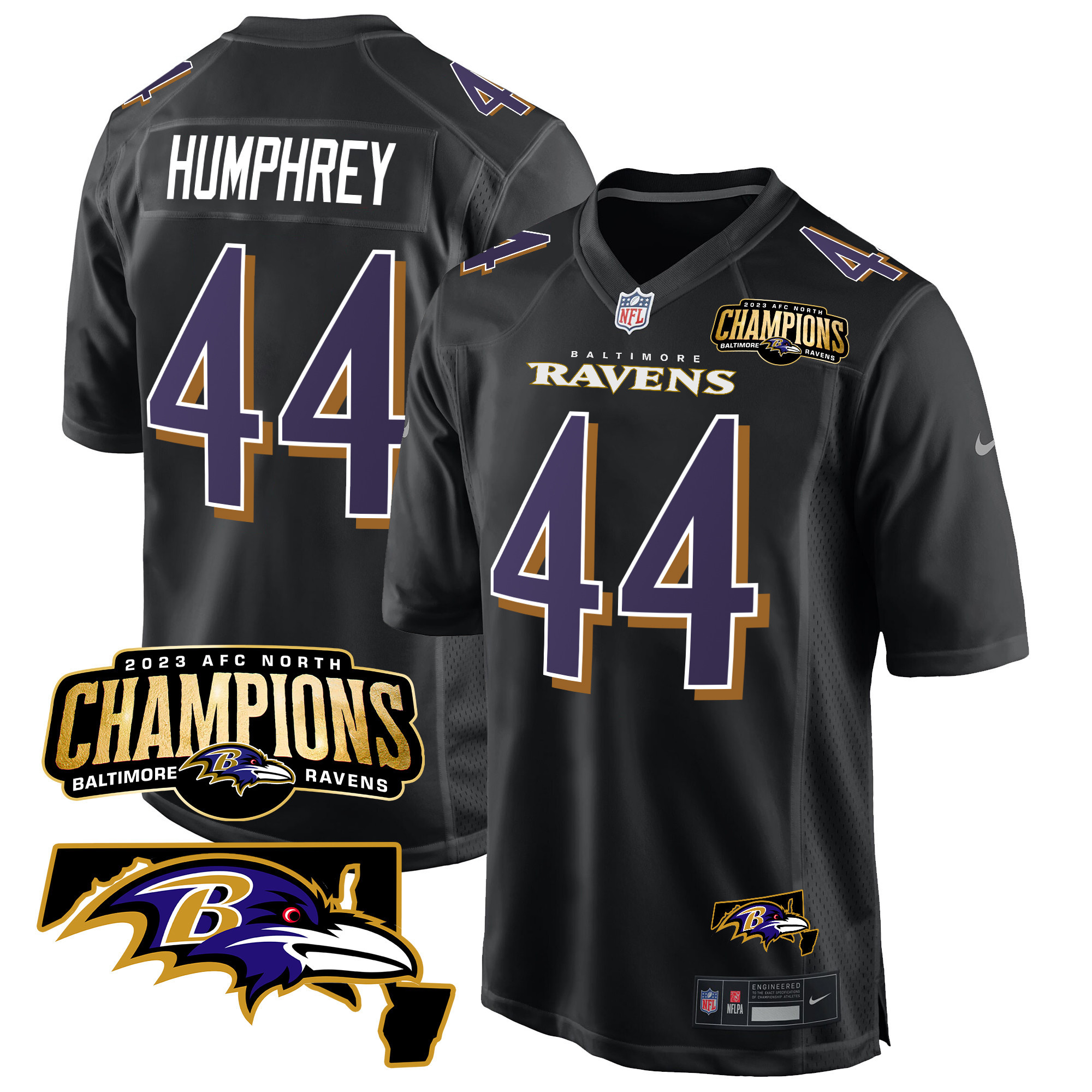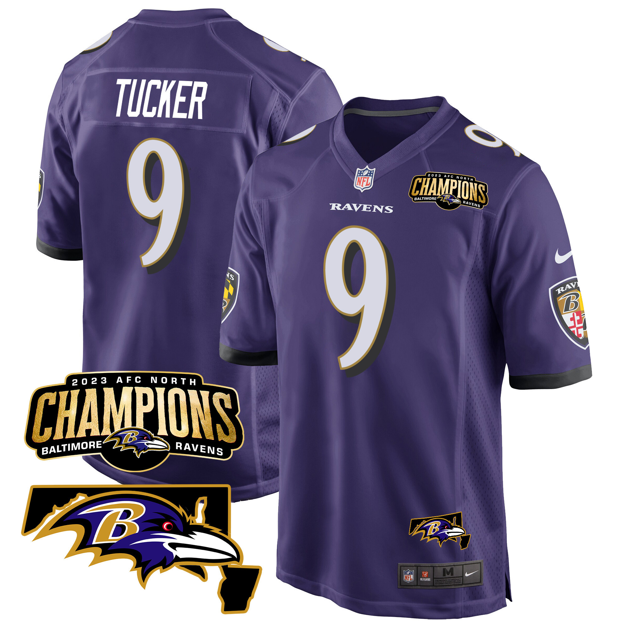 Men’s Baltimore Ravens 2023 AFC North Champions & Maryland Patch Game Jersey – All Stitched