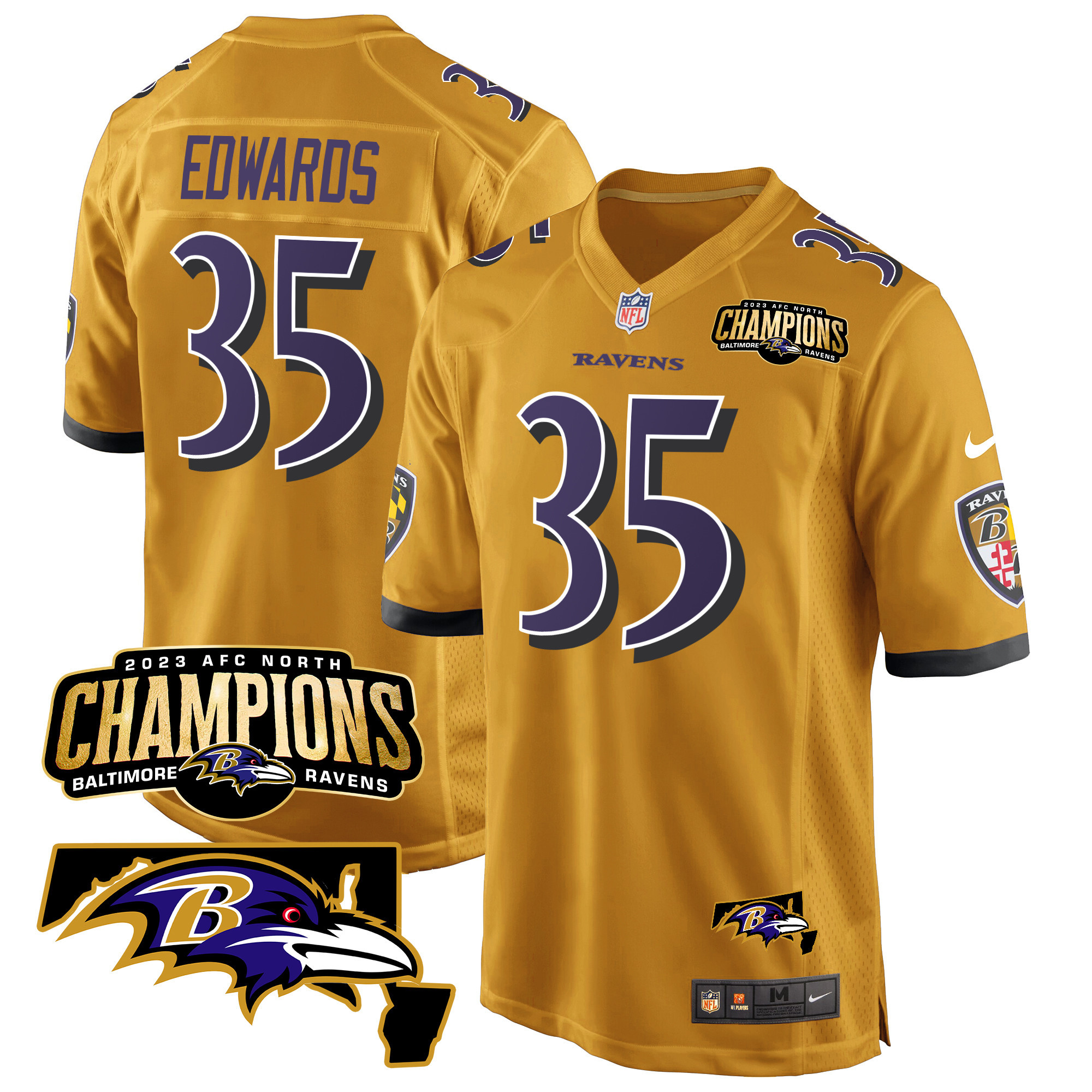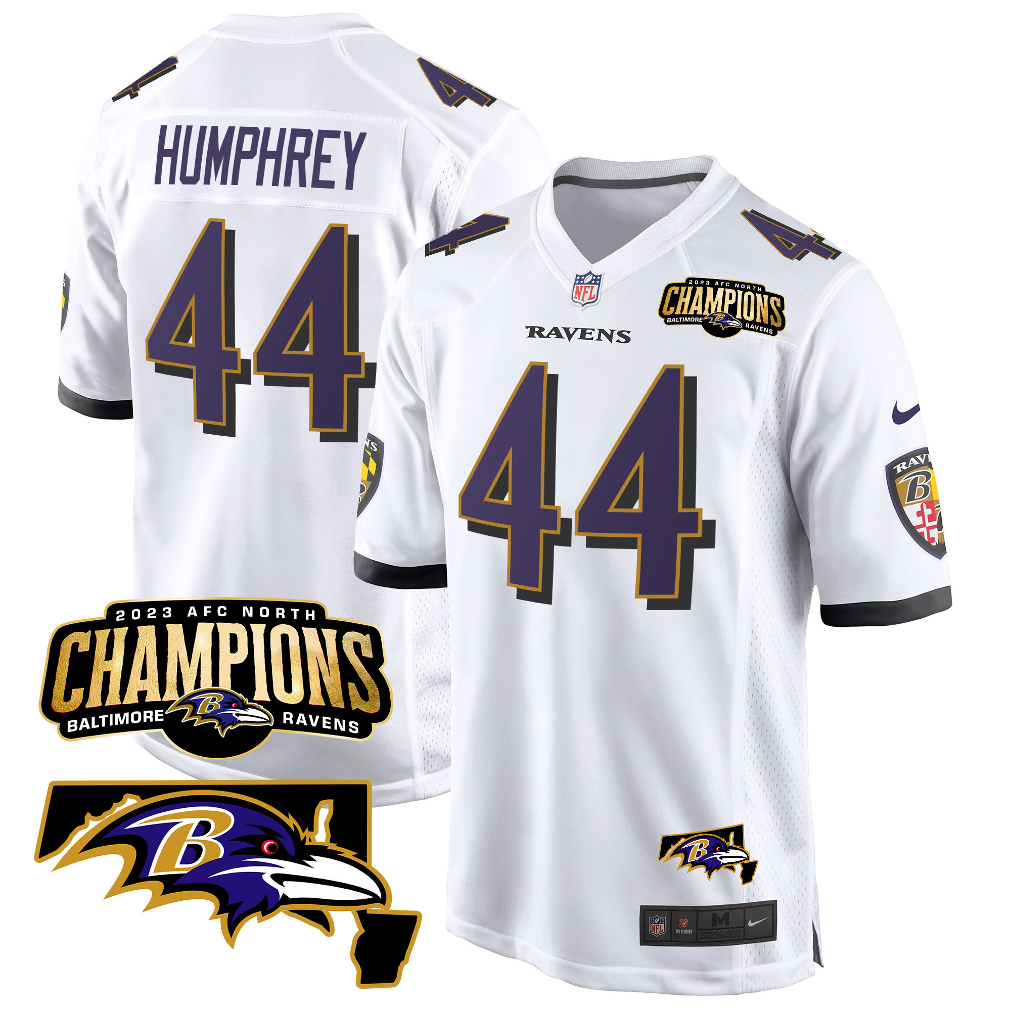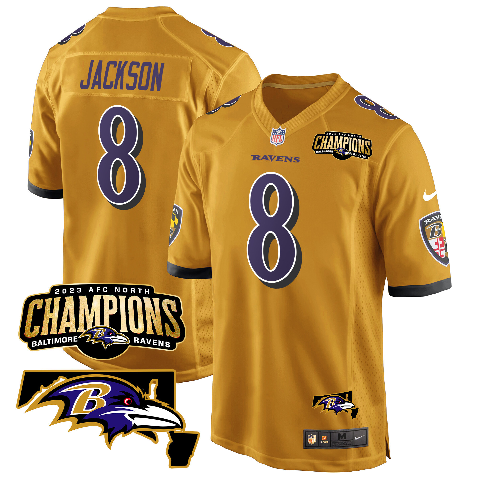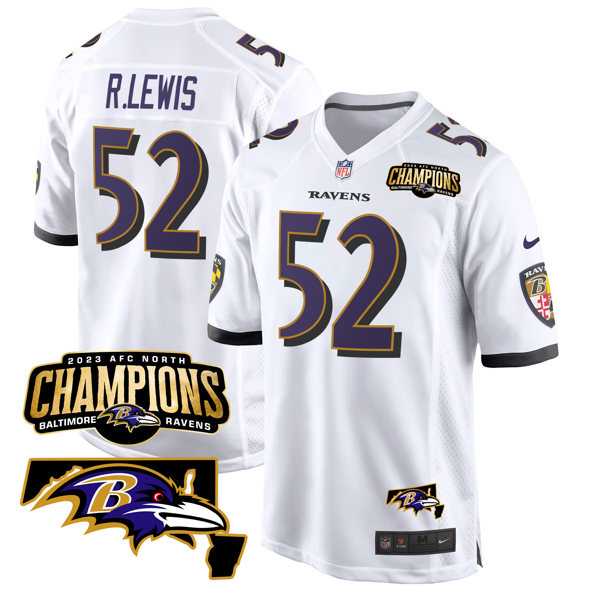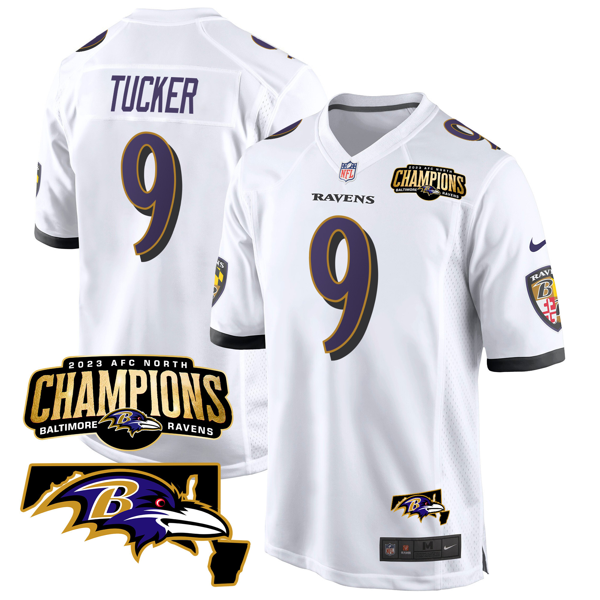 Men’s Baltimore Ravens 2023 AFC North Champions & Maryland Patch Game Jersey – All Stitched