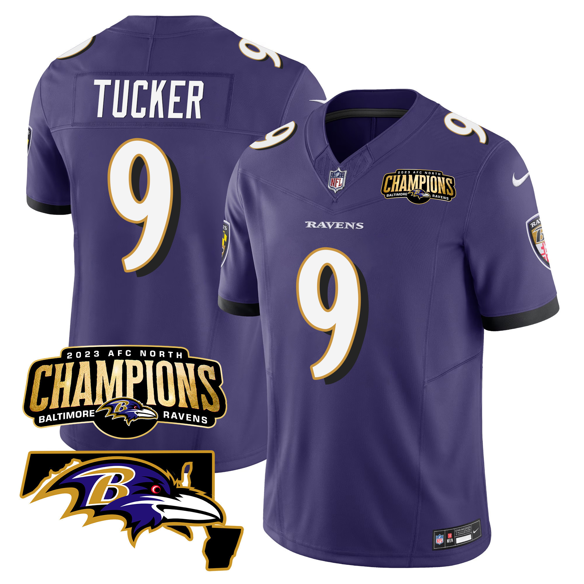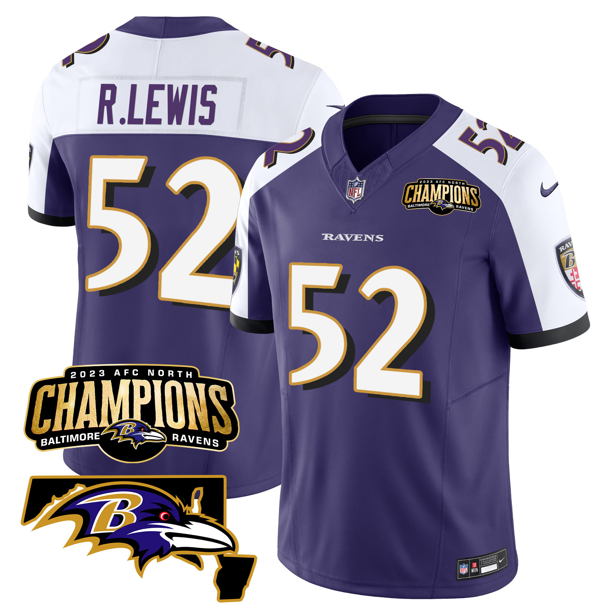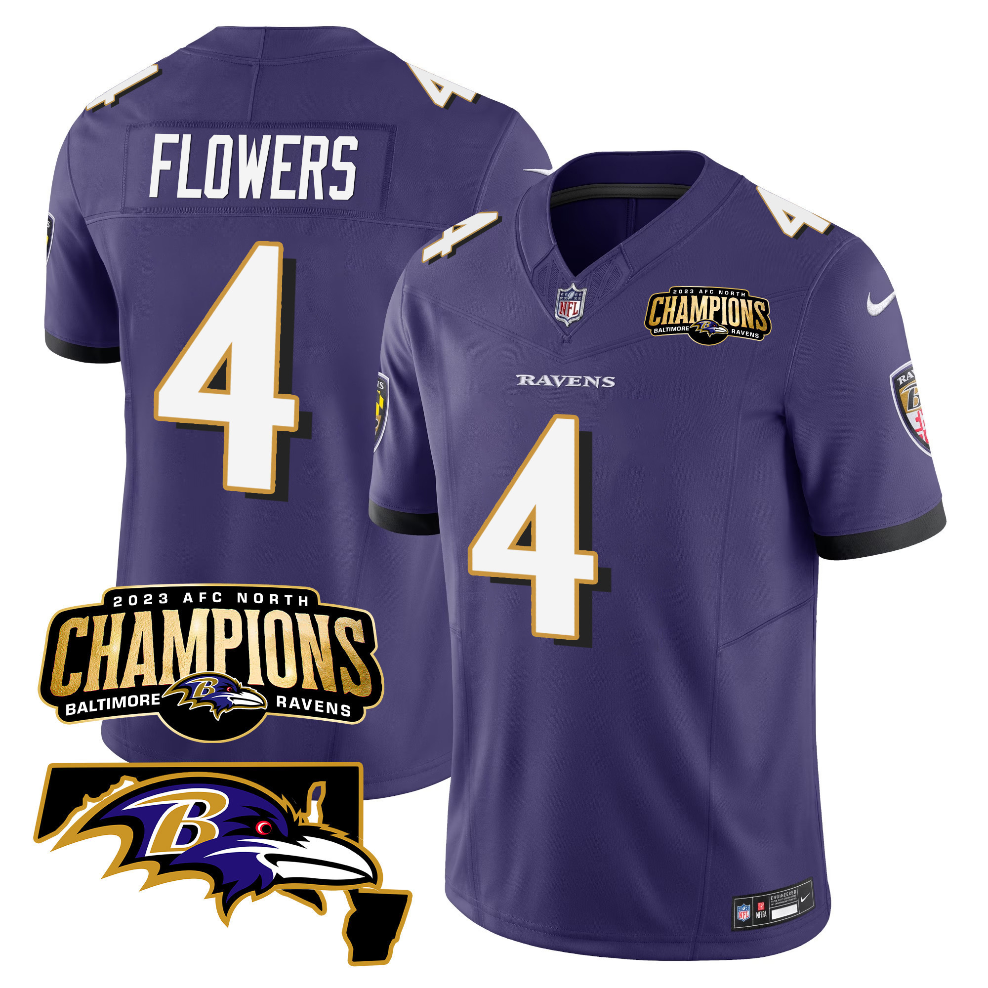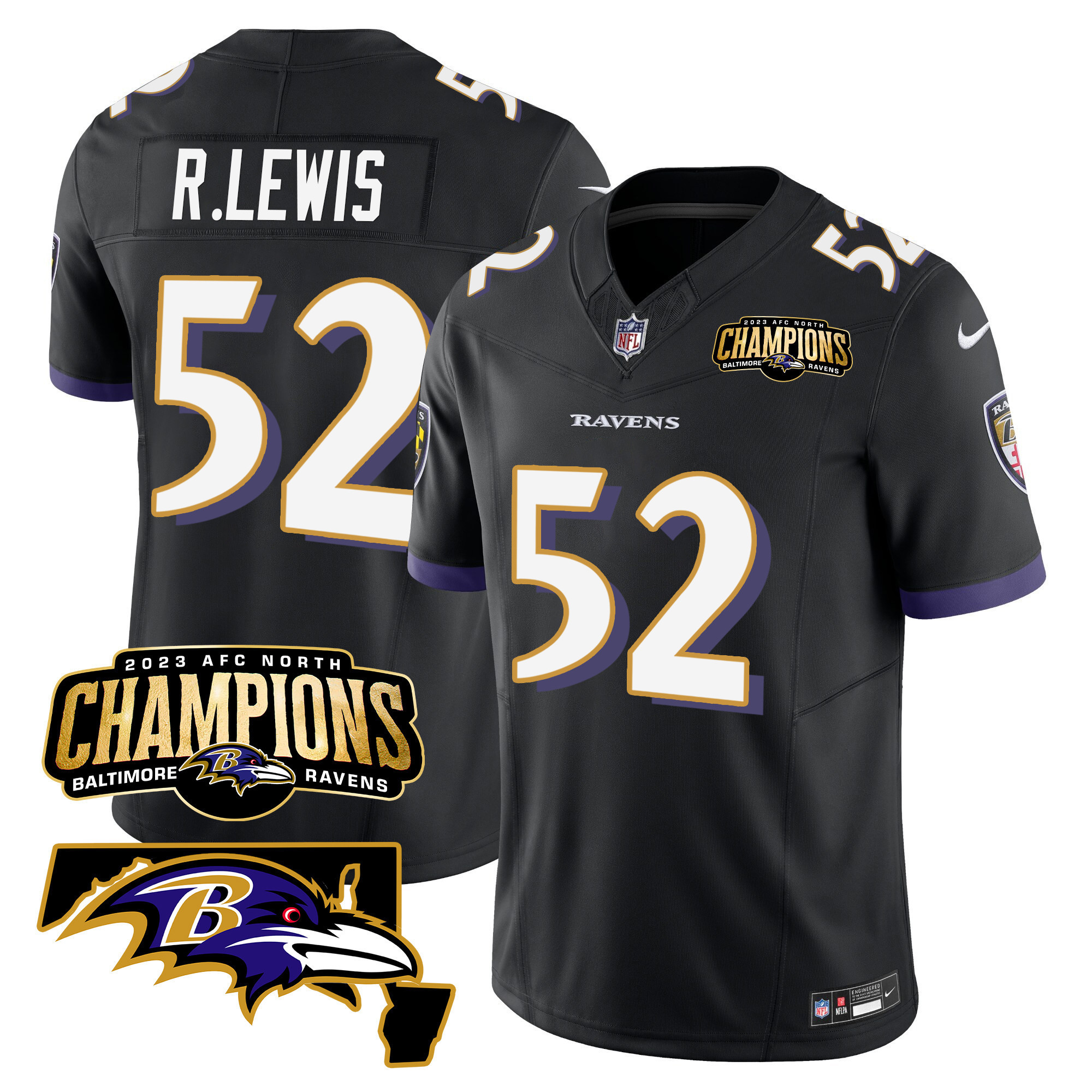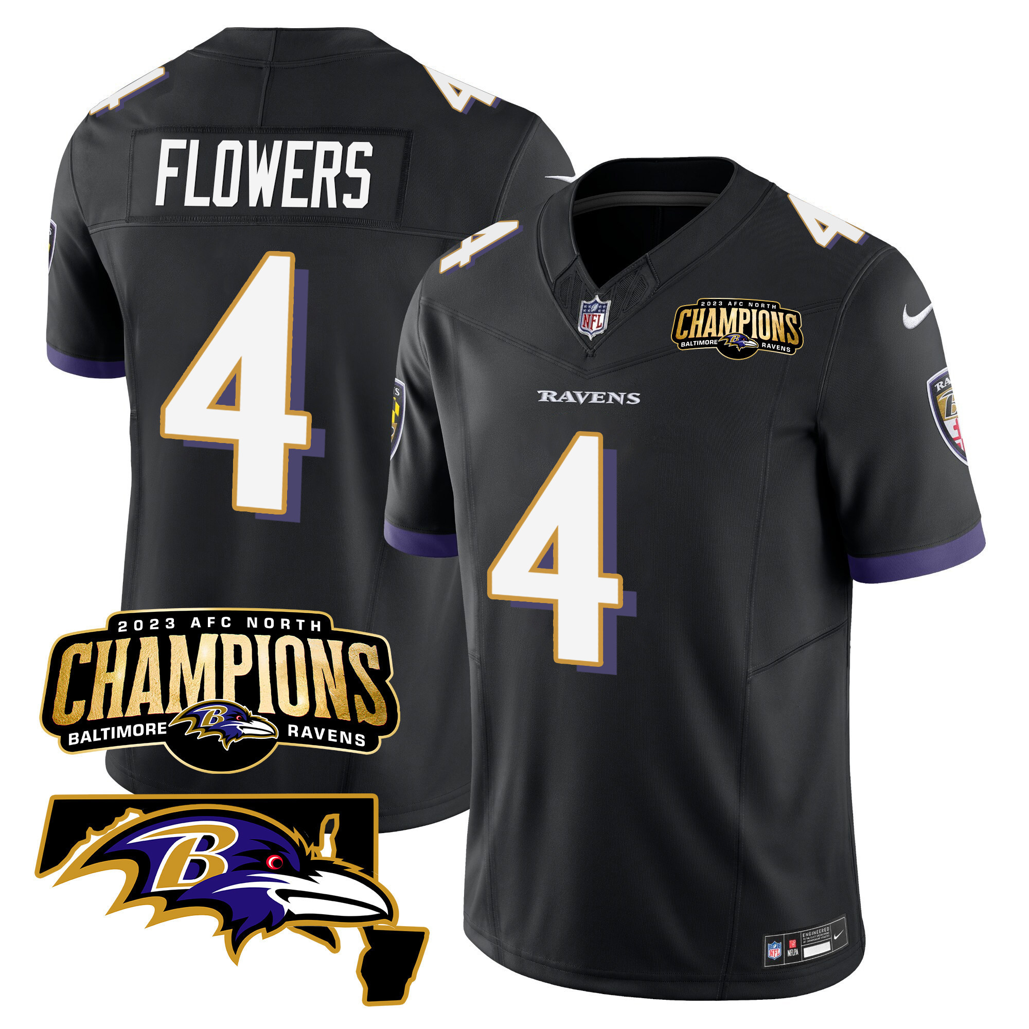 Men’s Baltimore Ravens 2023 AFC North Champions & Maryland Patch Vapor Jersey – All Stitched
