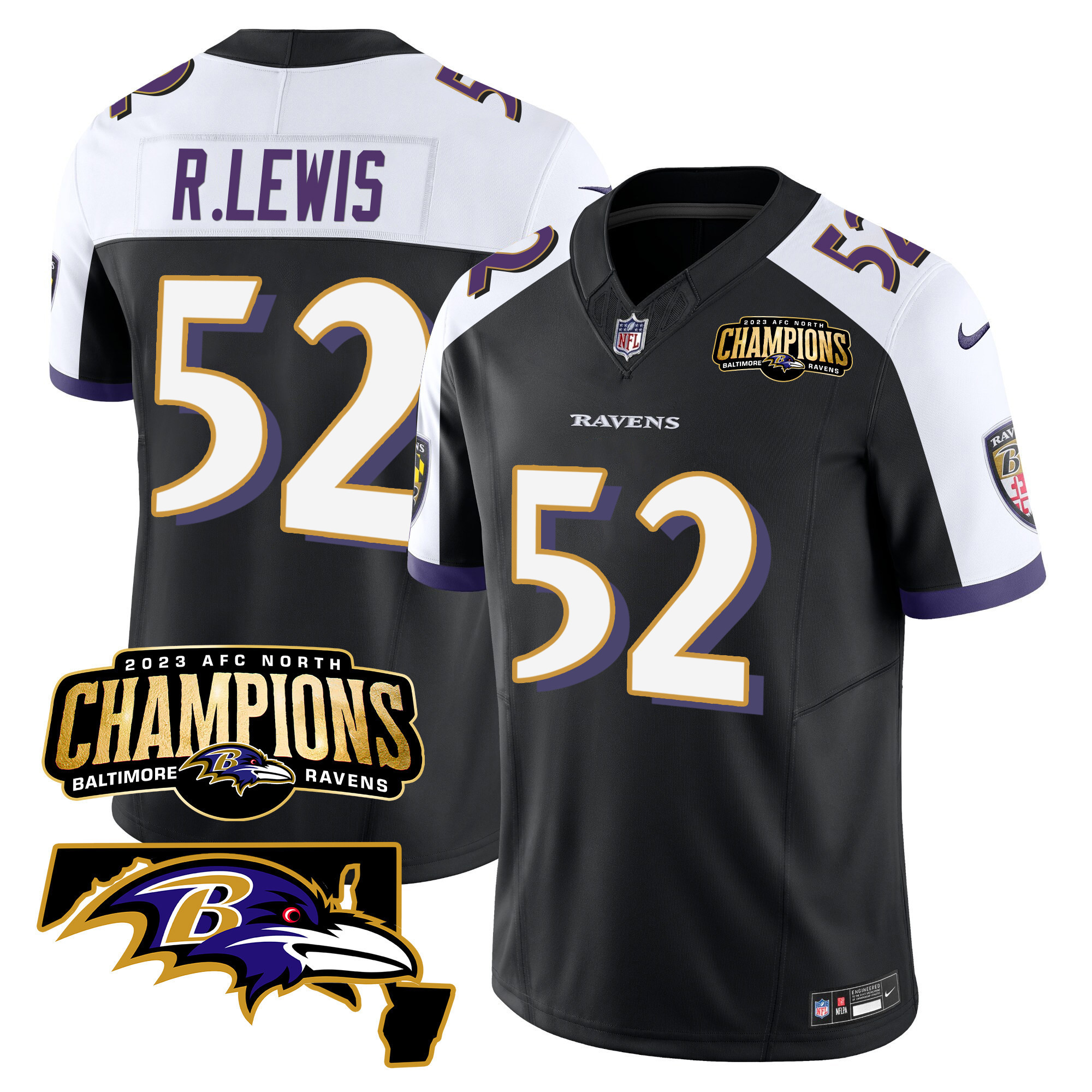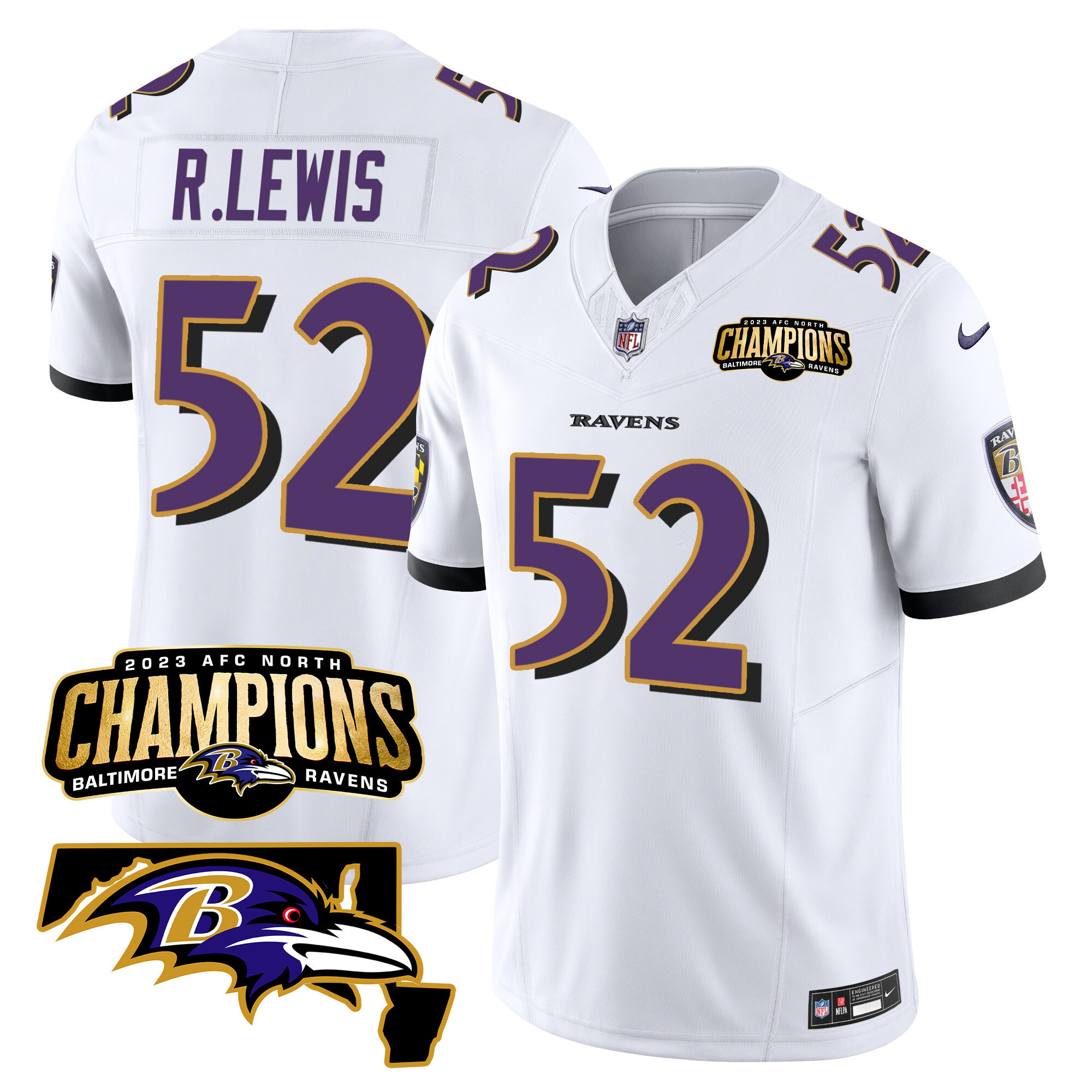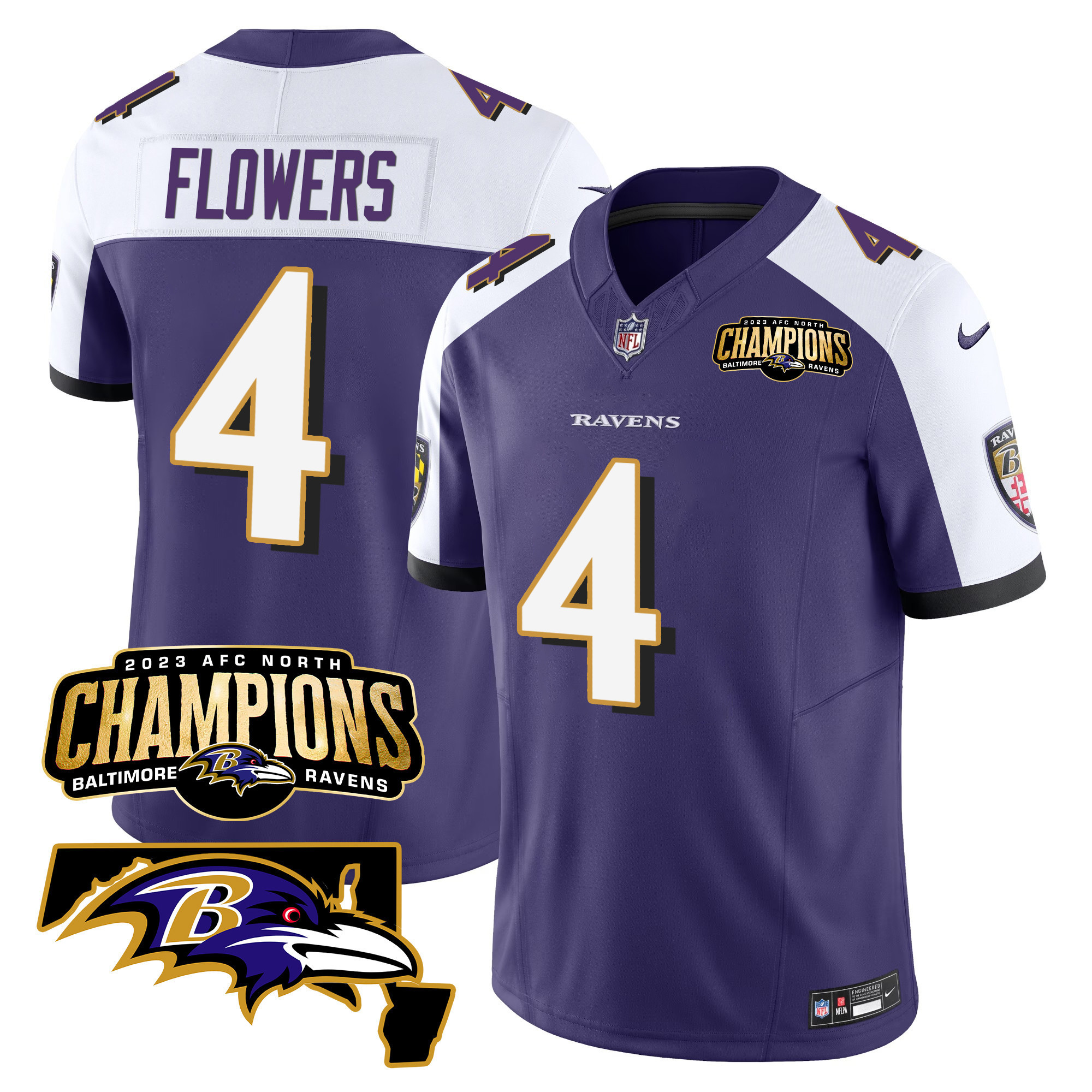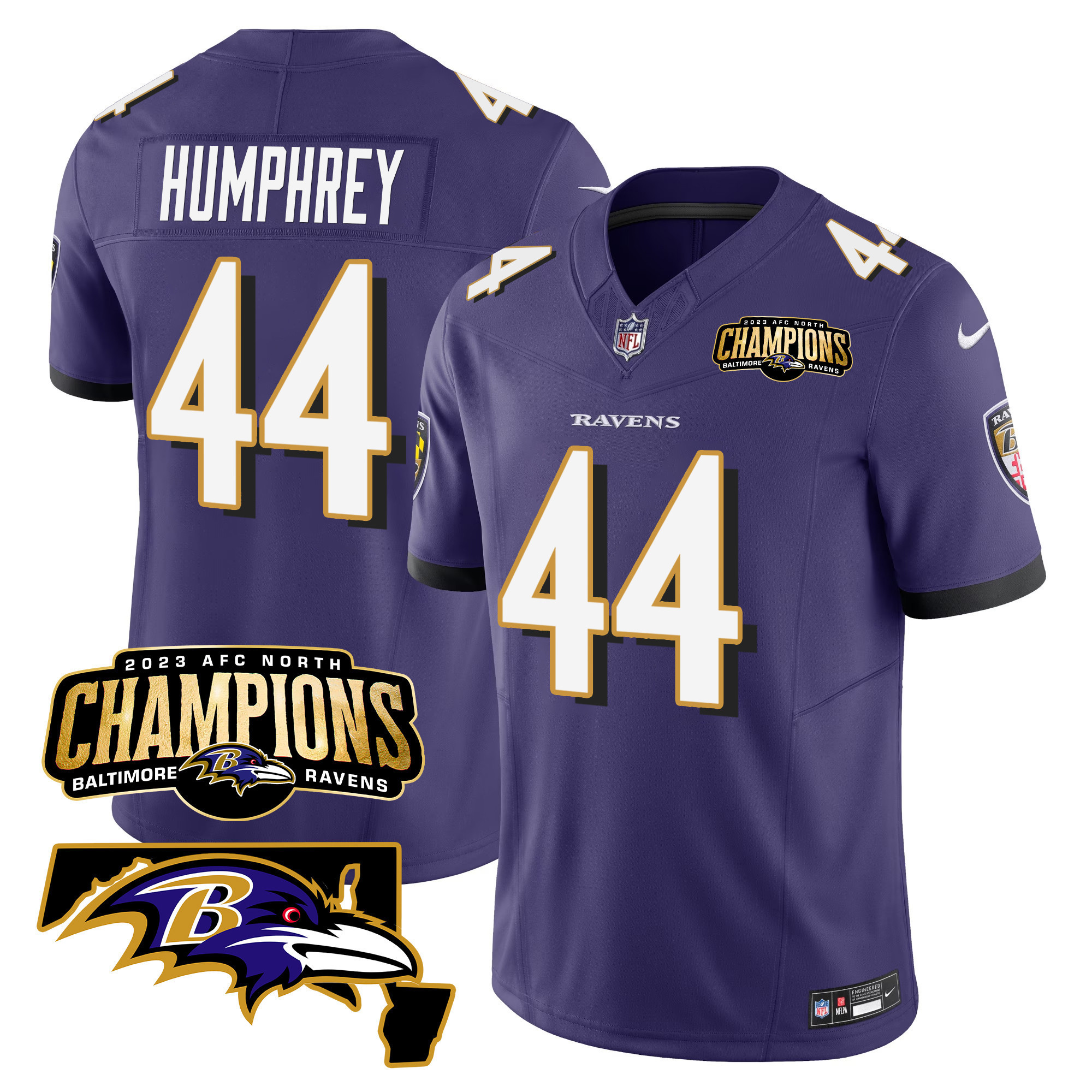 Men’s Baltimore Ravens 2023 AFC North Champions & Maryland Patch Vapor Jersey – All Stitched