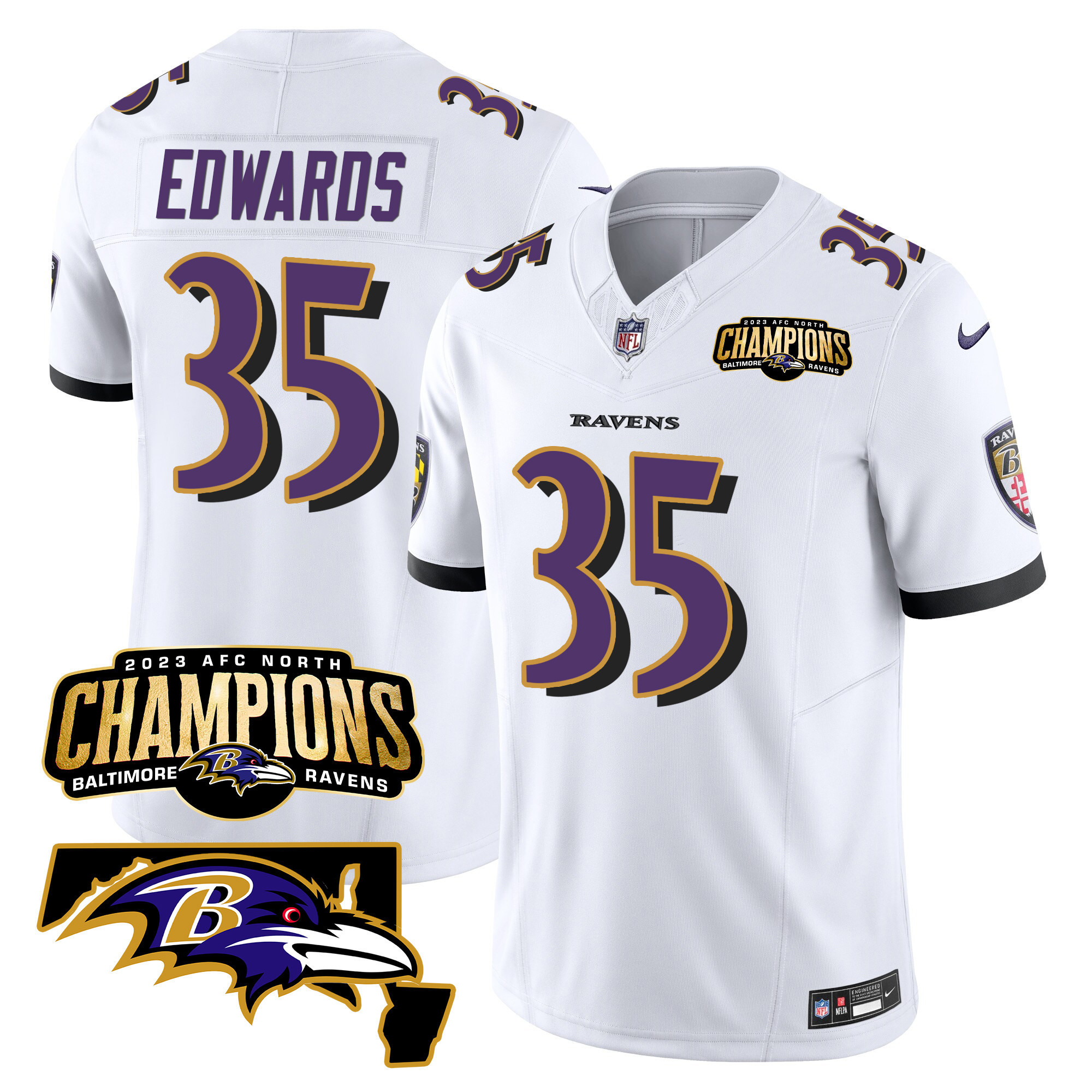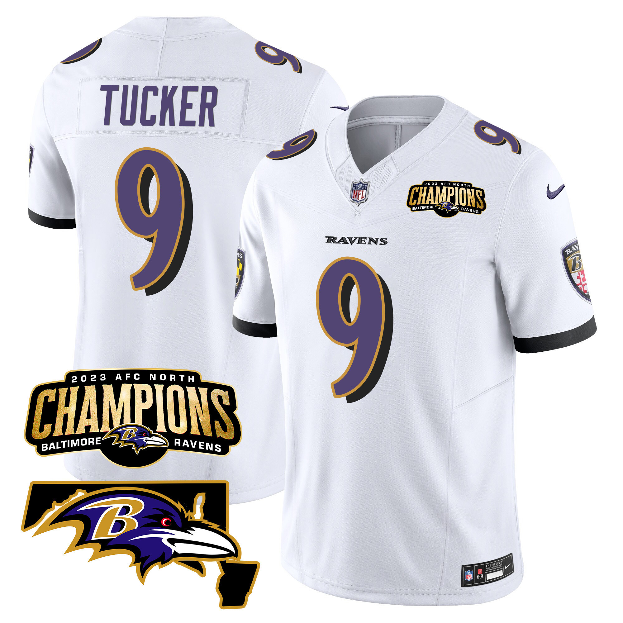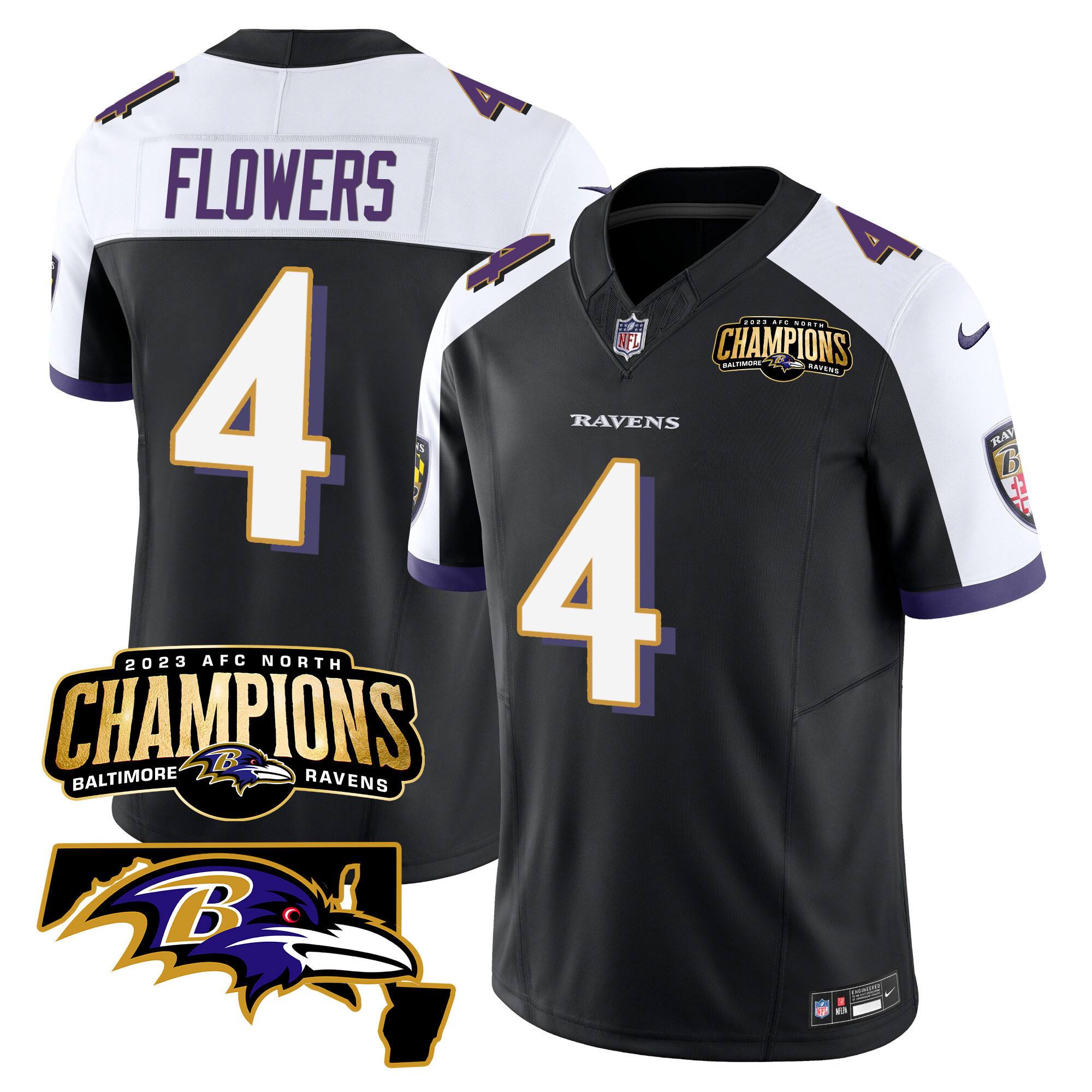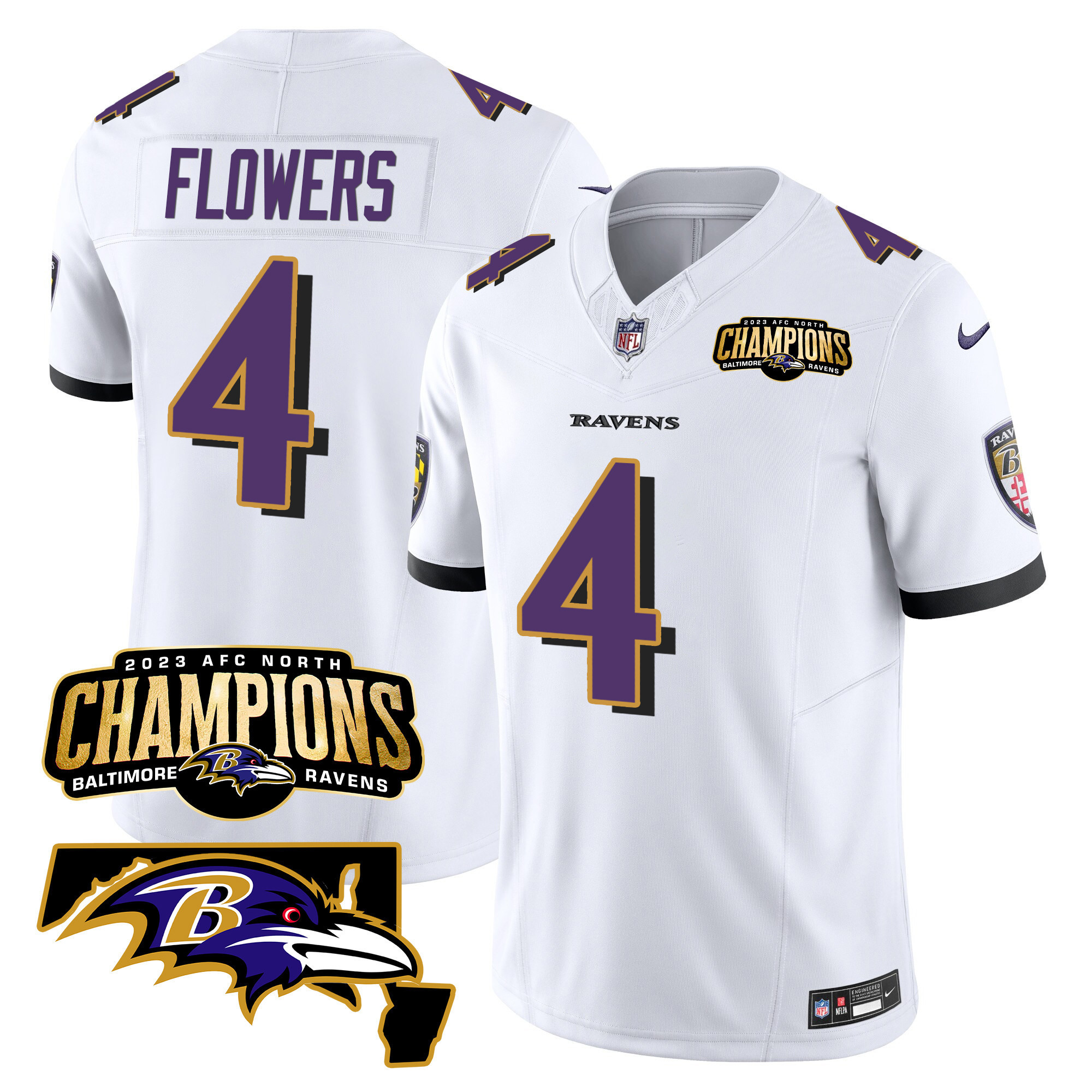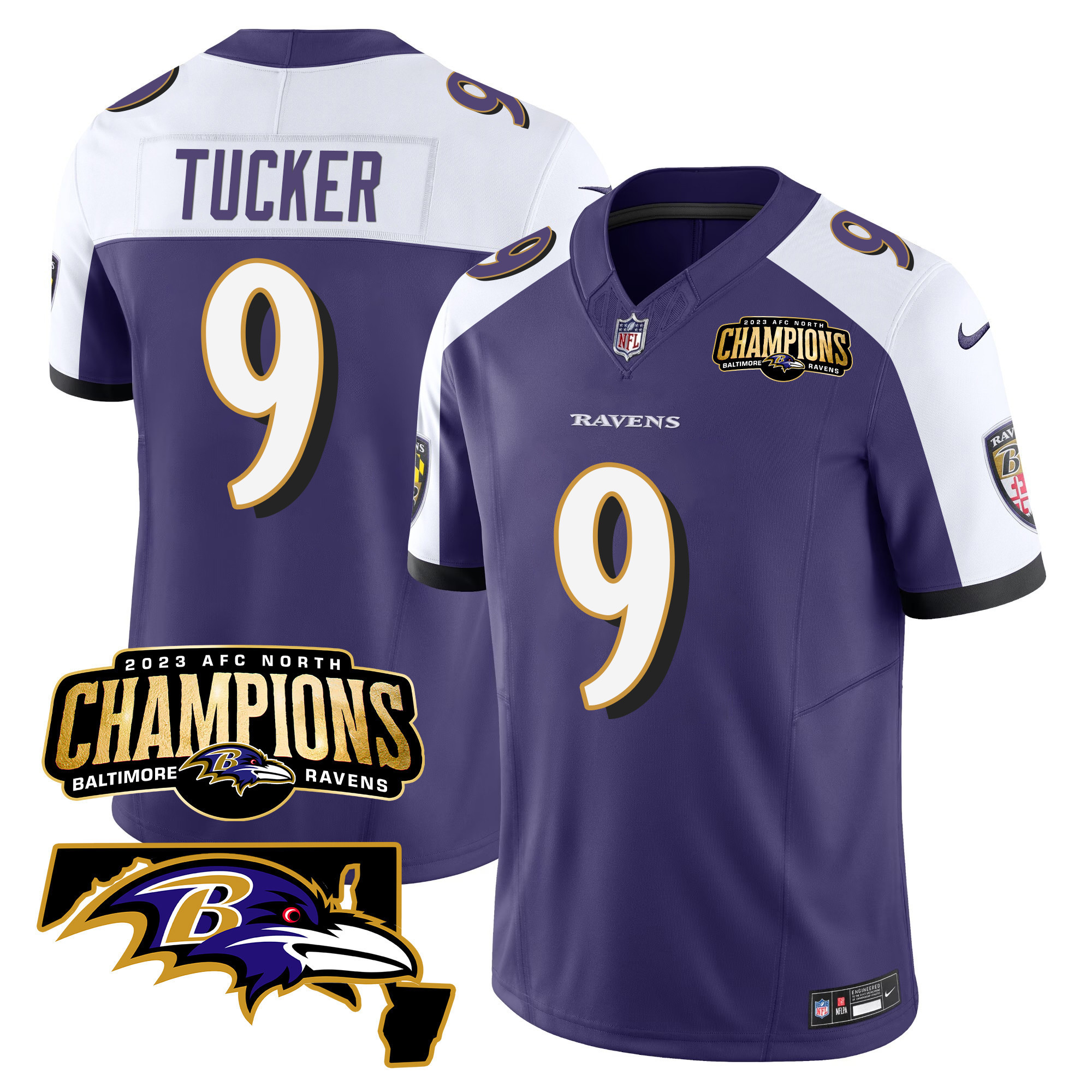 Men’s Baltimore Ravens 2023 AFC North Champions & Maryland Patch Vapor Jersey – All Stitched