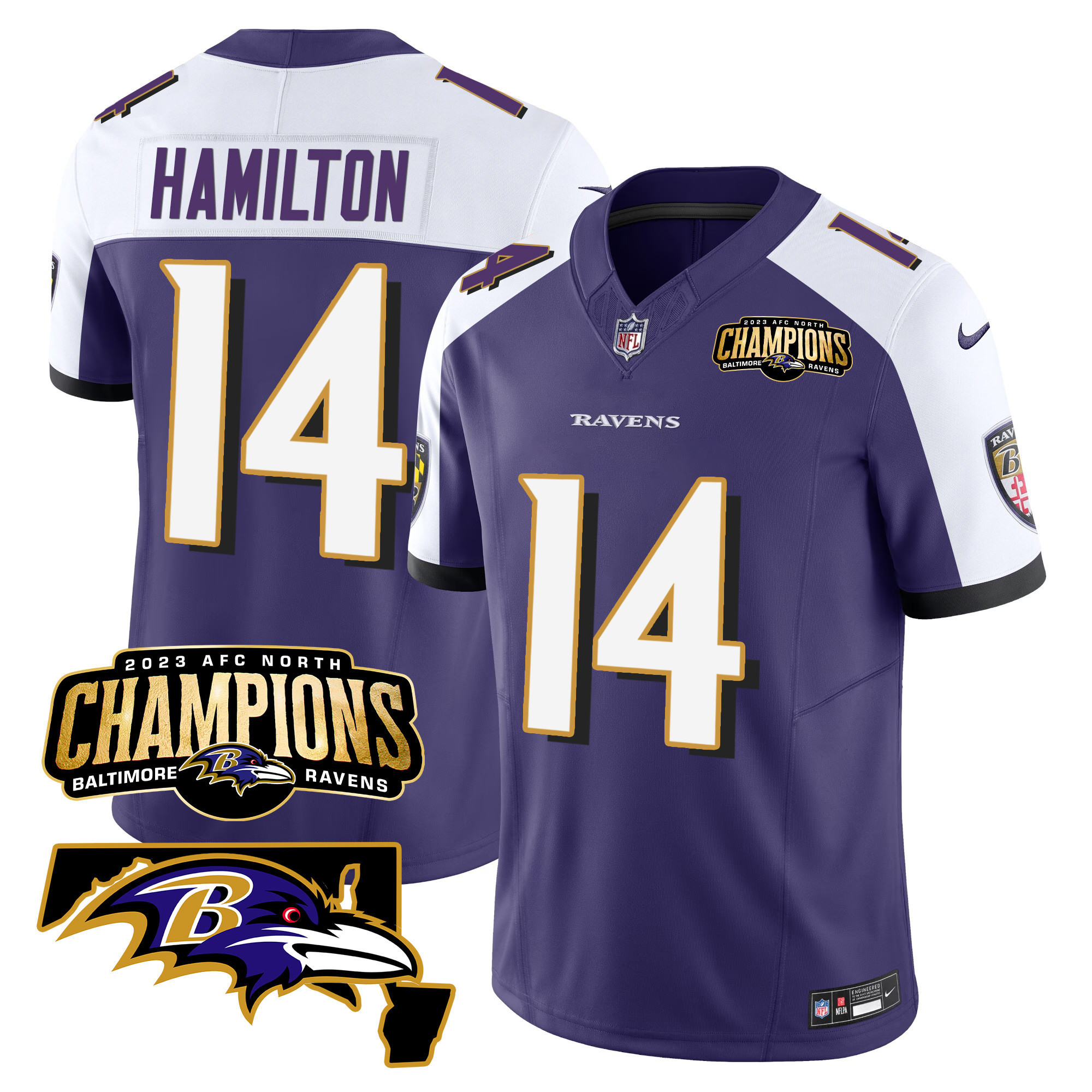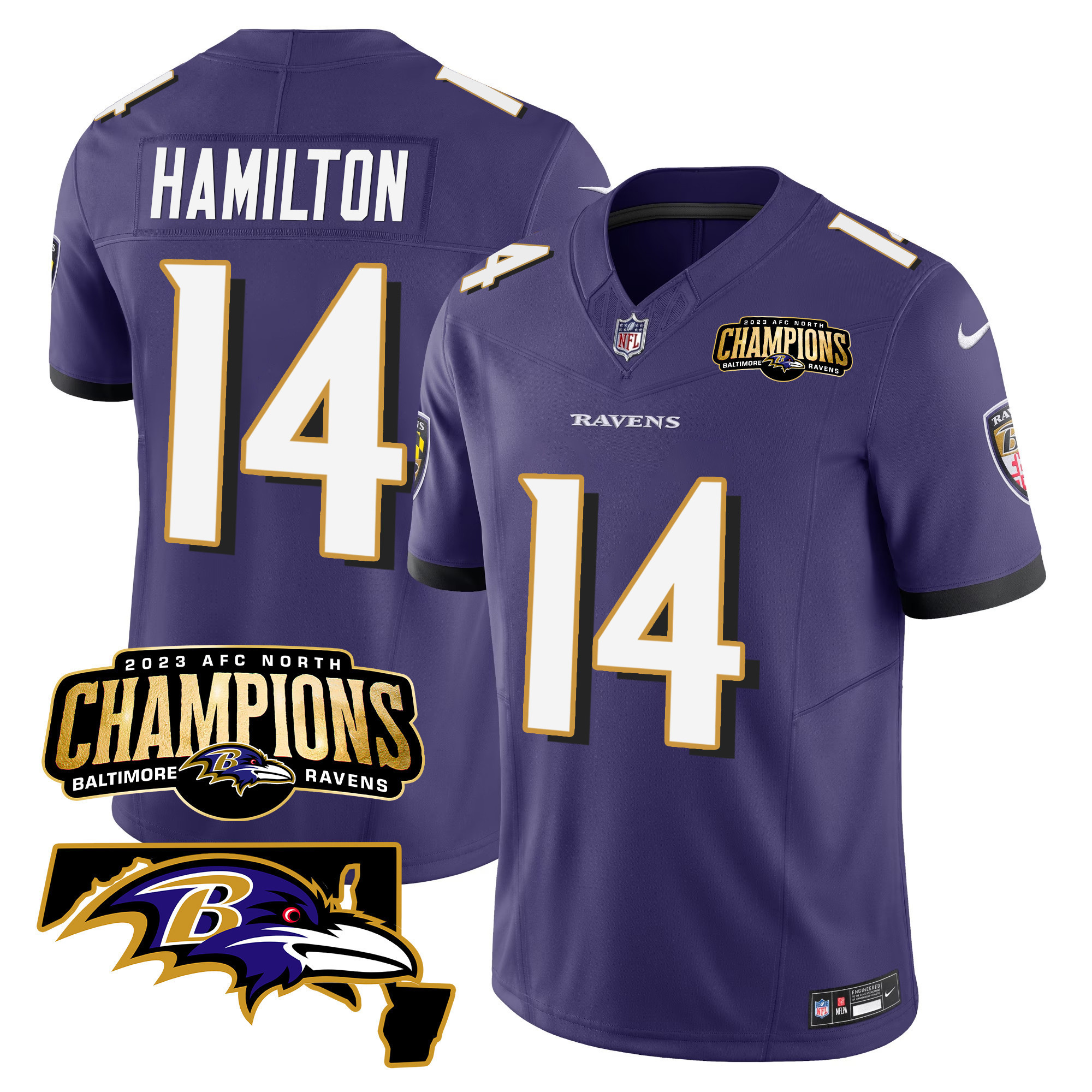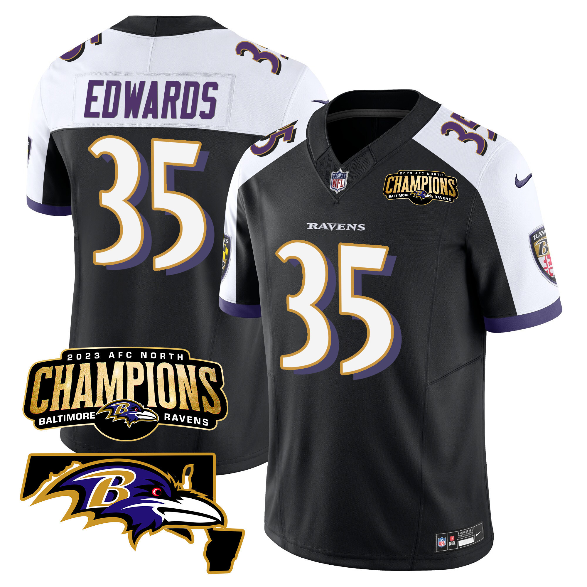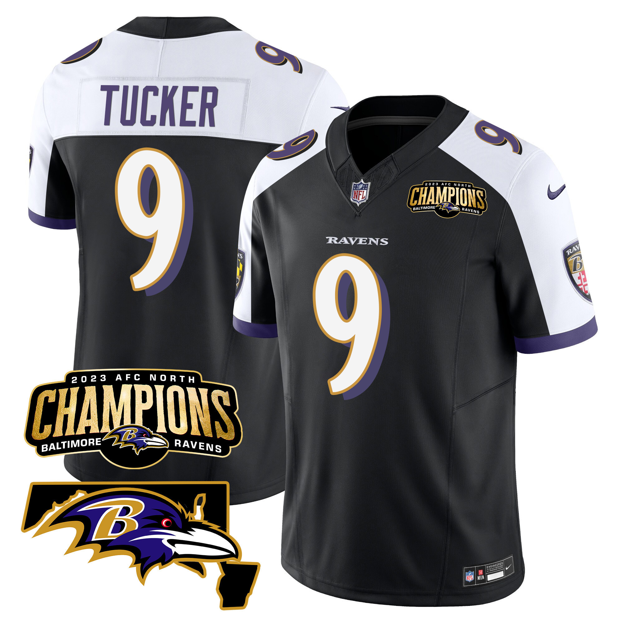 Men’s Baltimore Ravens 2023 AFC North Champions & Maryland Patch Vapor Jersey – All Stitched
