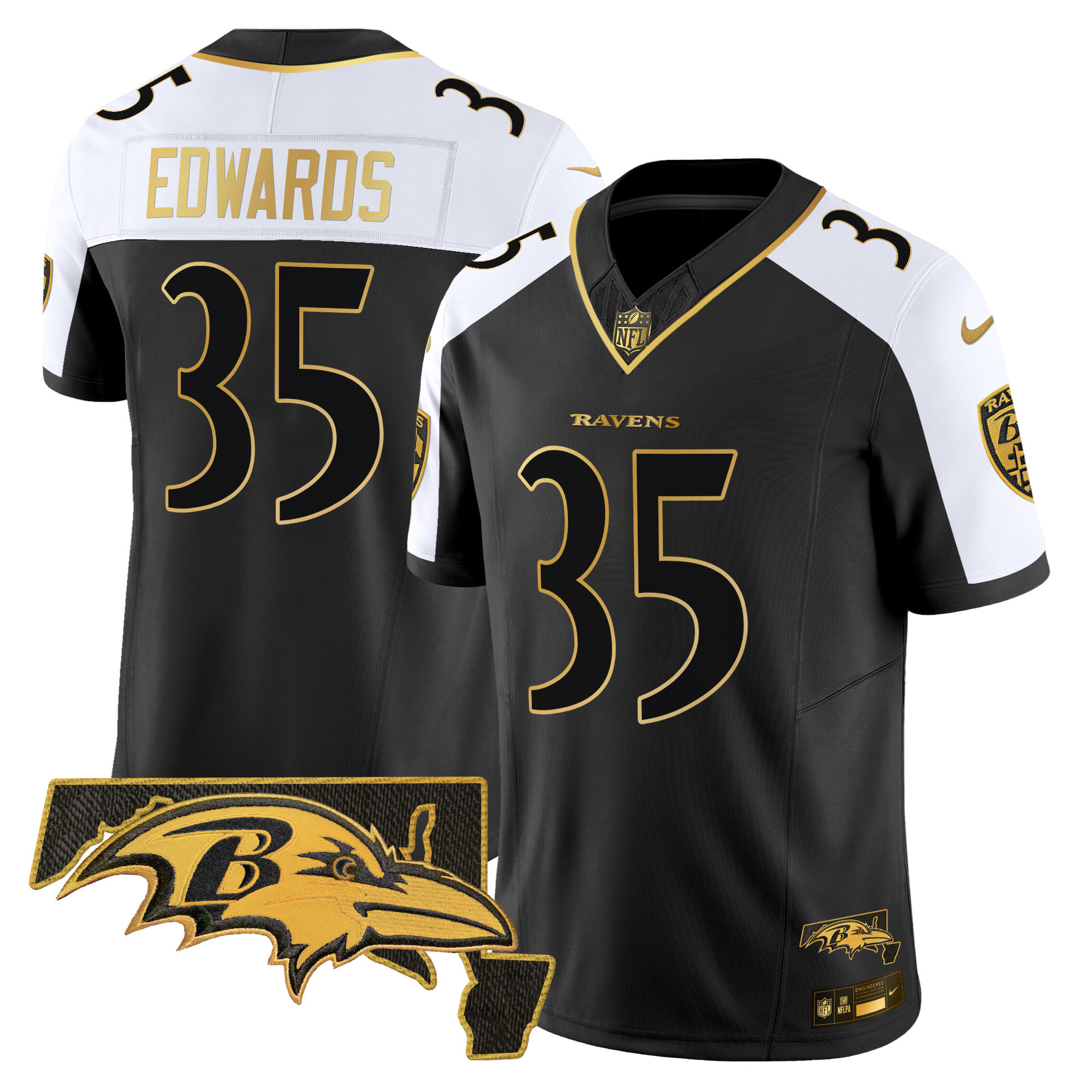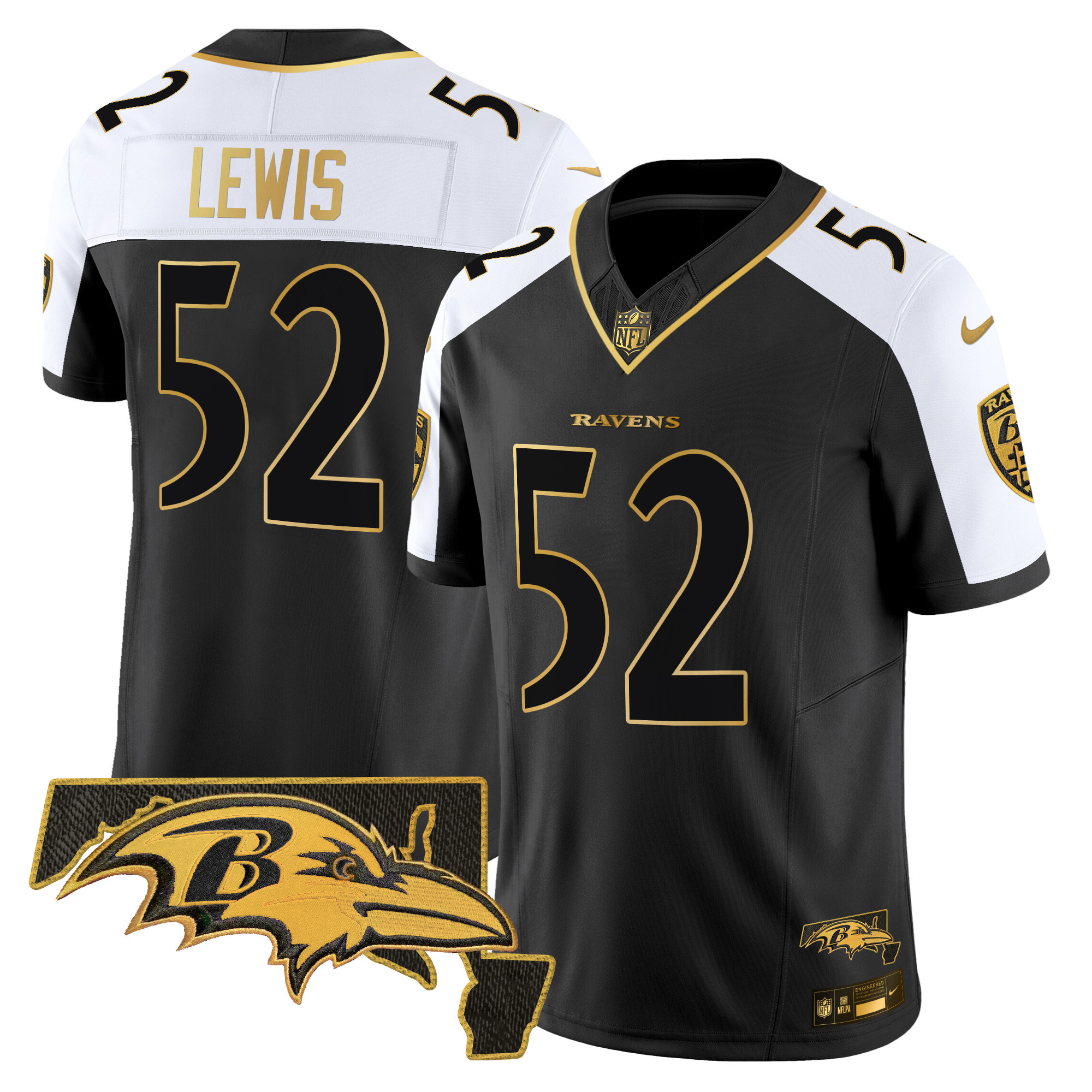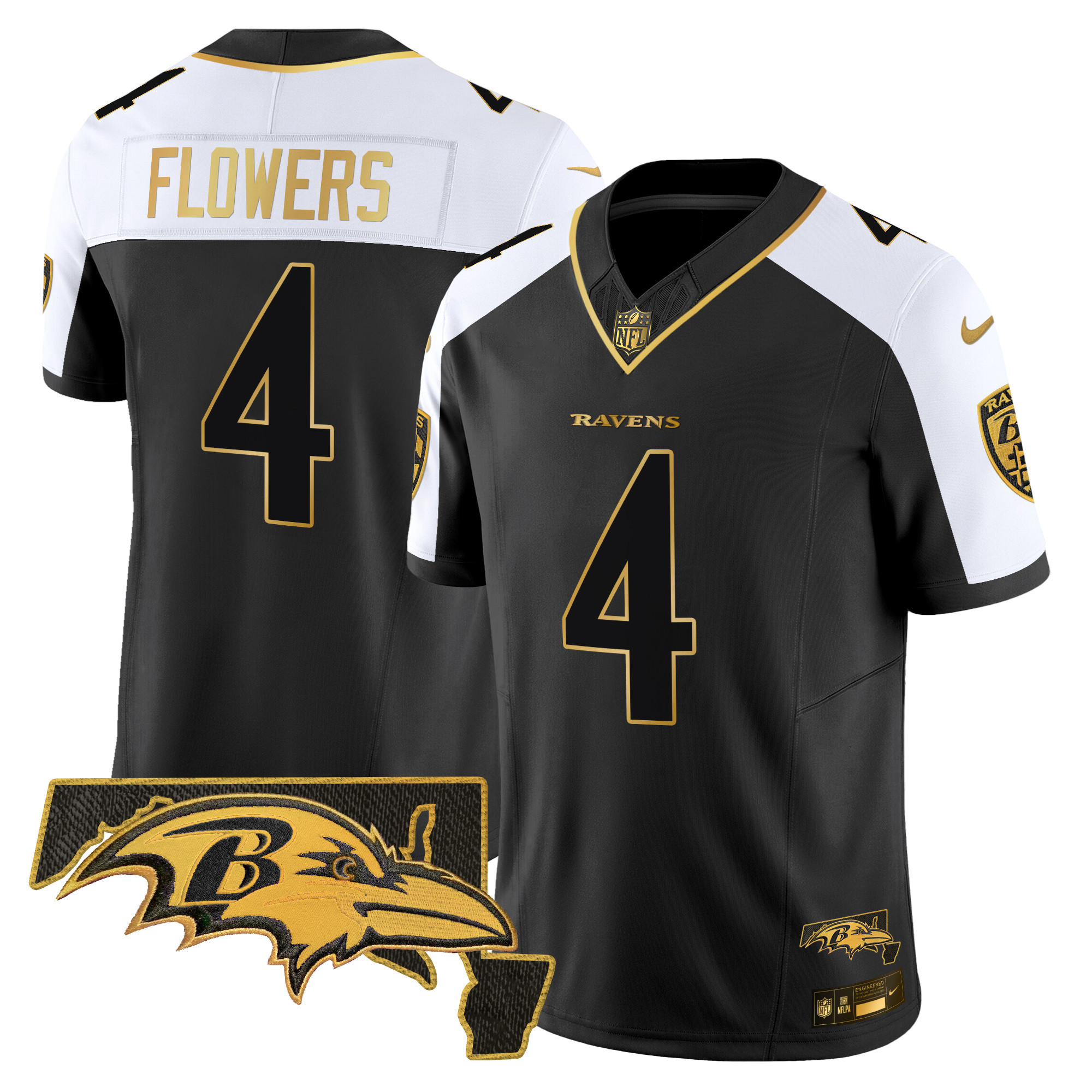 Men’s Baltimore Ravens Maryland Flag Map Patch Gold Vapor Limited Jersey – All Stitched