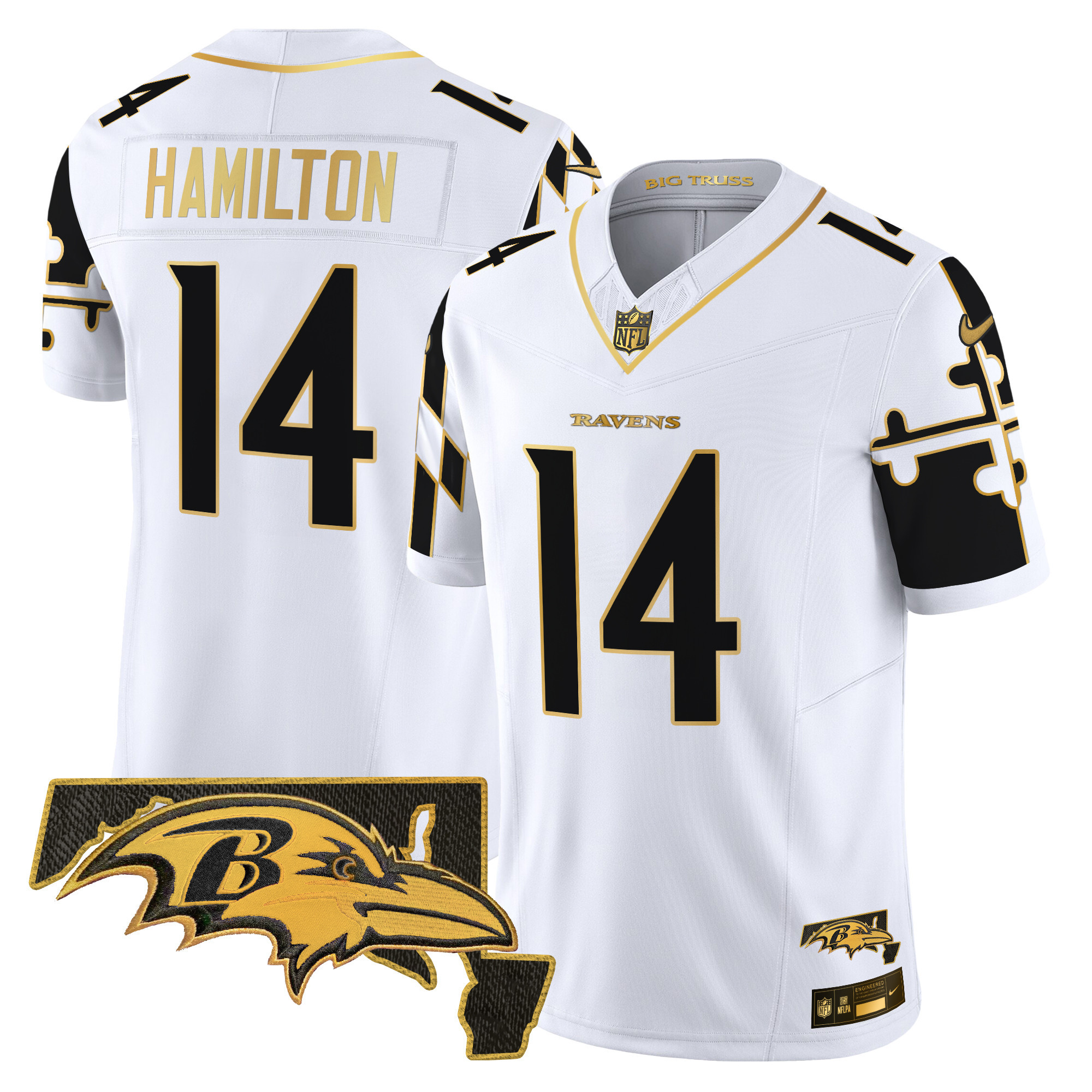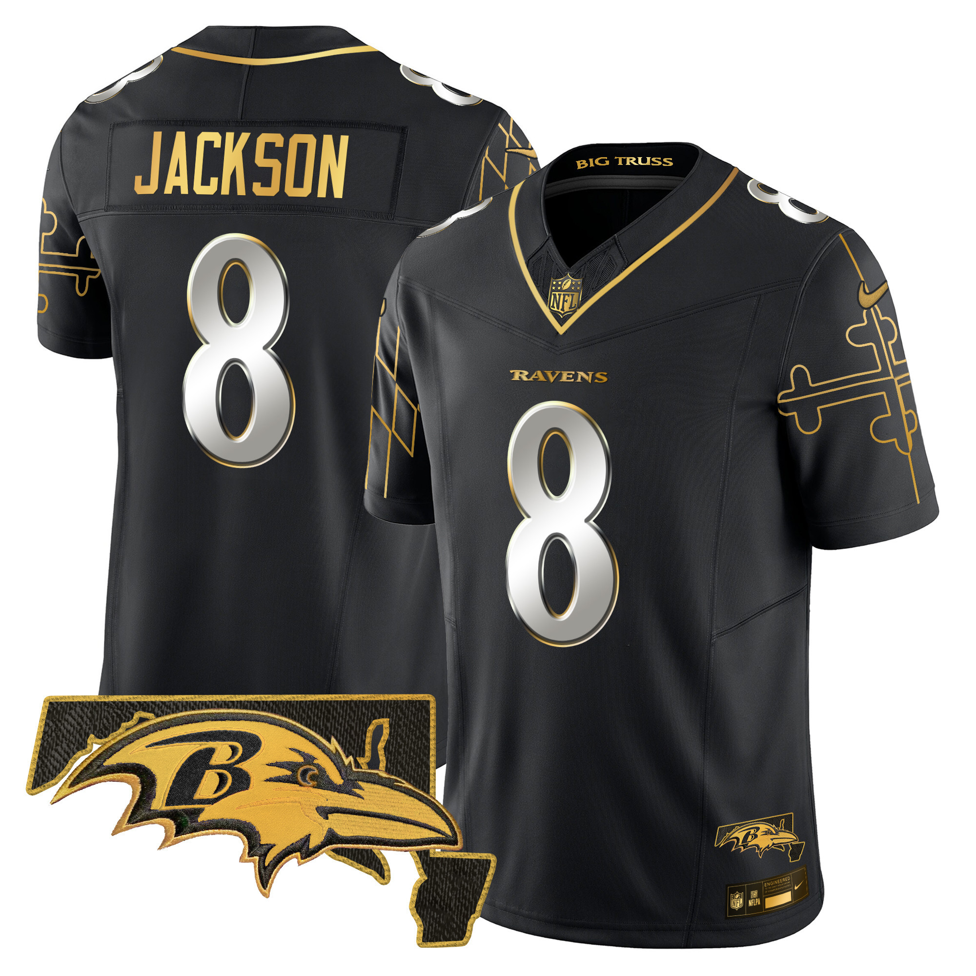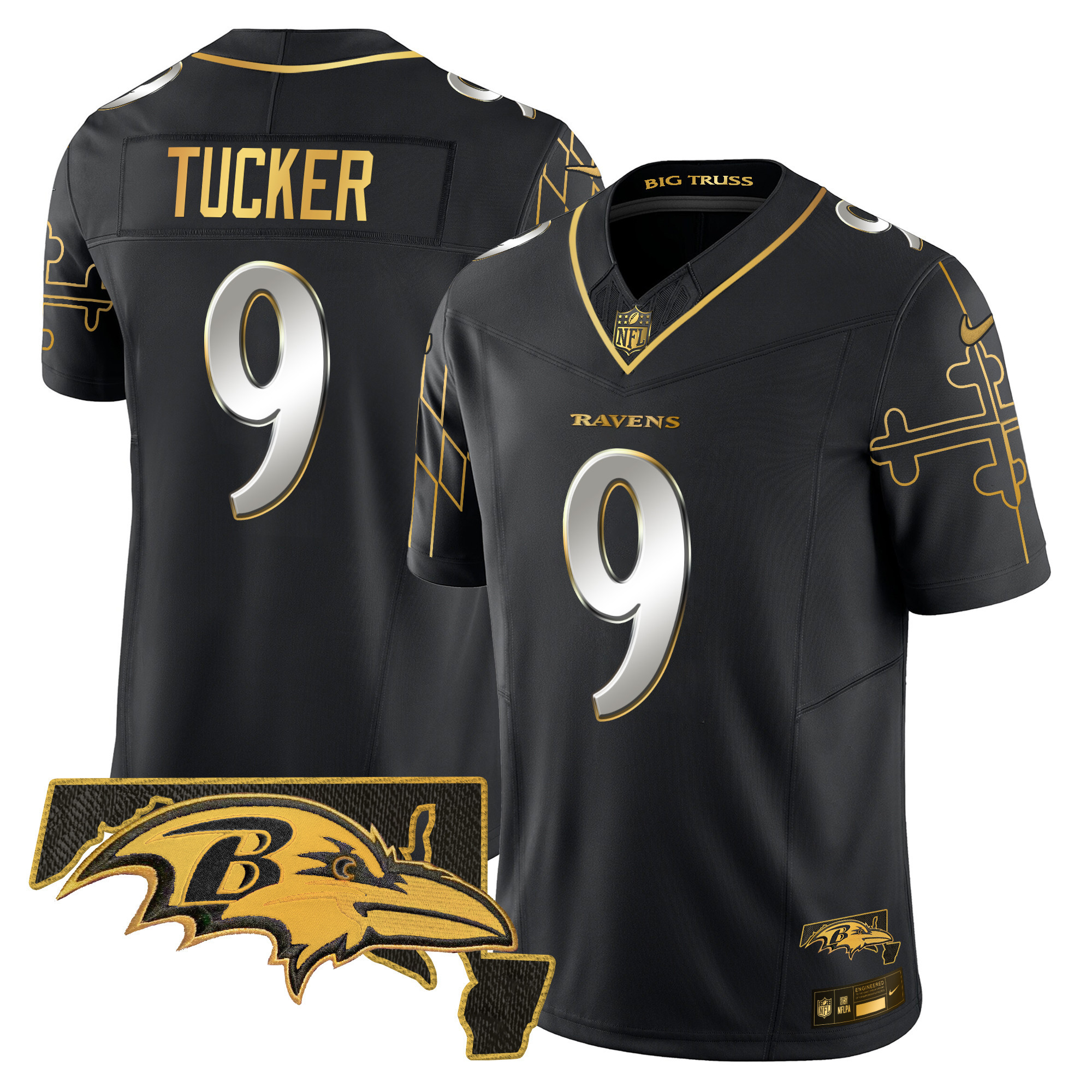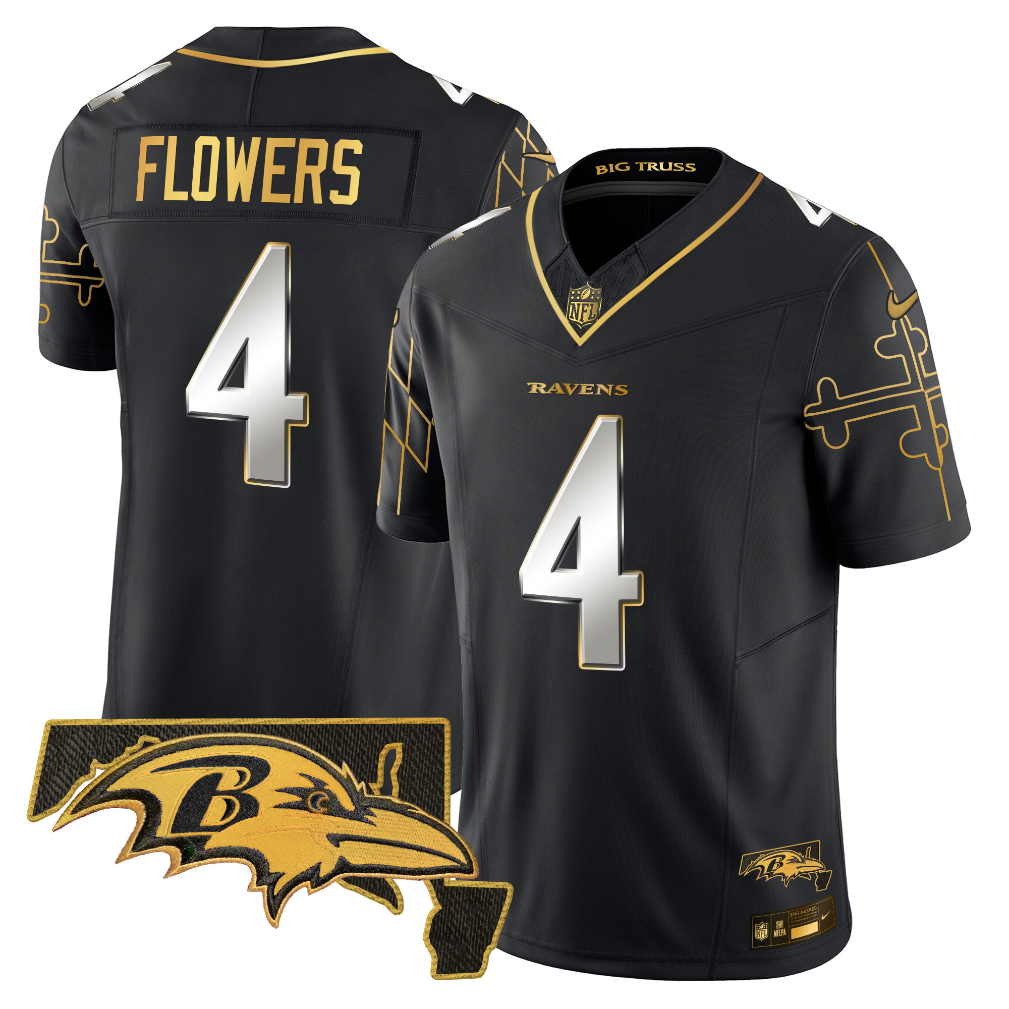 Men’s Baltimore Ravens Maryland Flag Map Patch Gold Vapor Limited Jersey – All Stitched