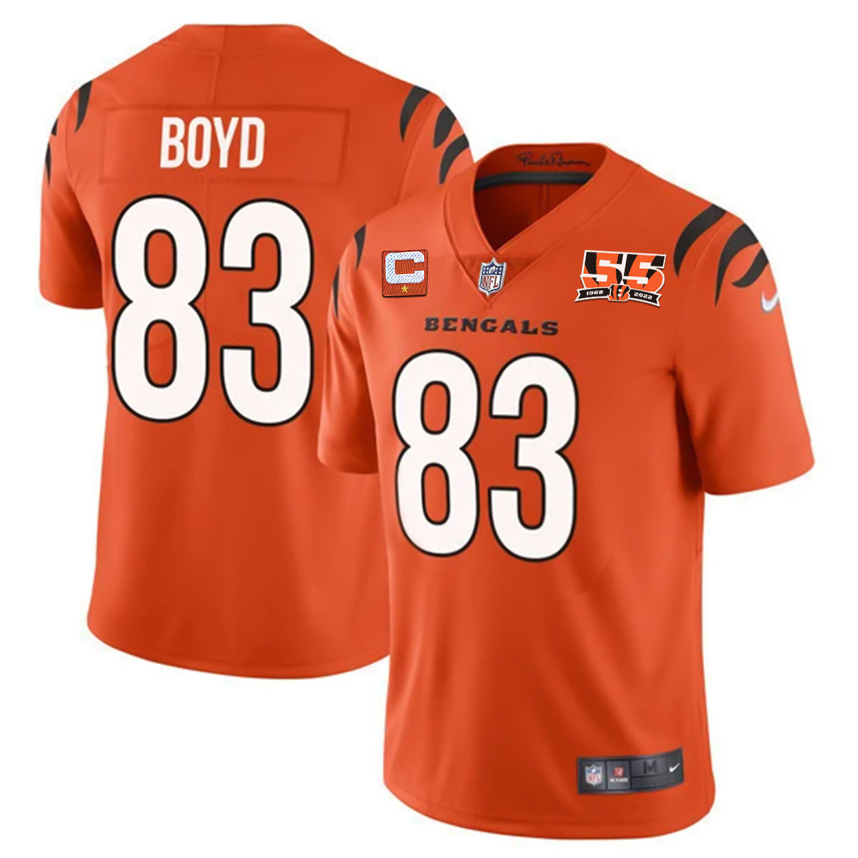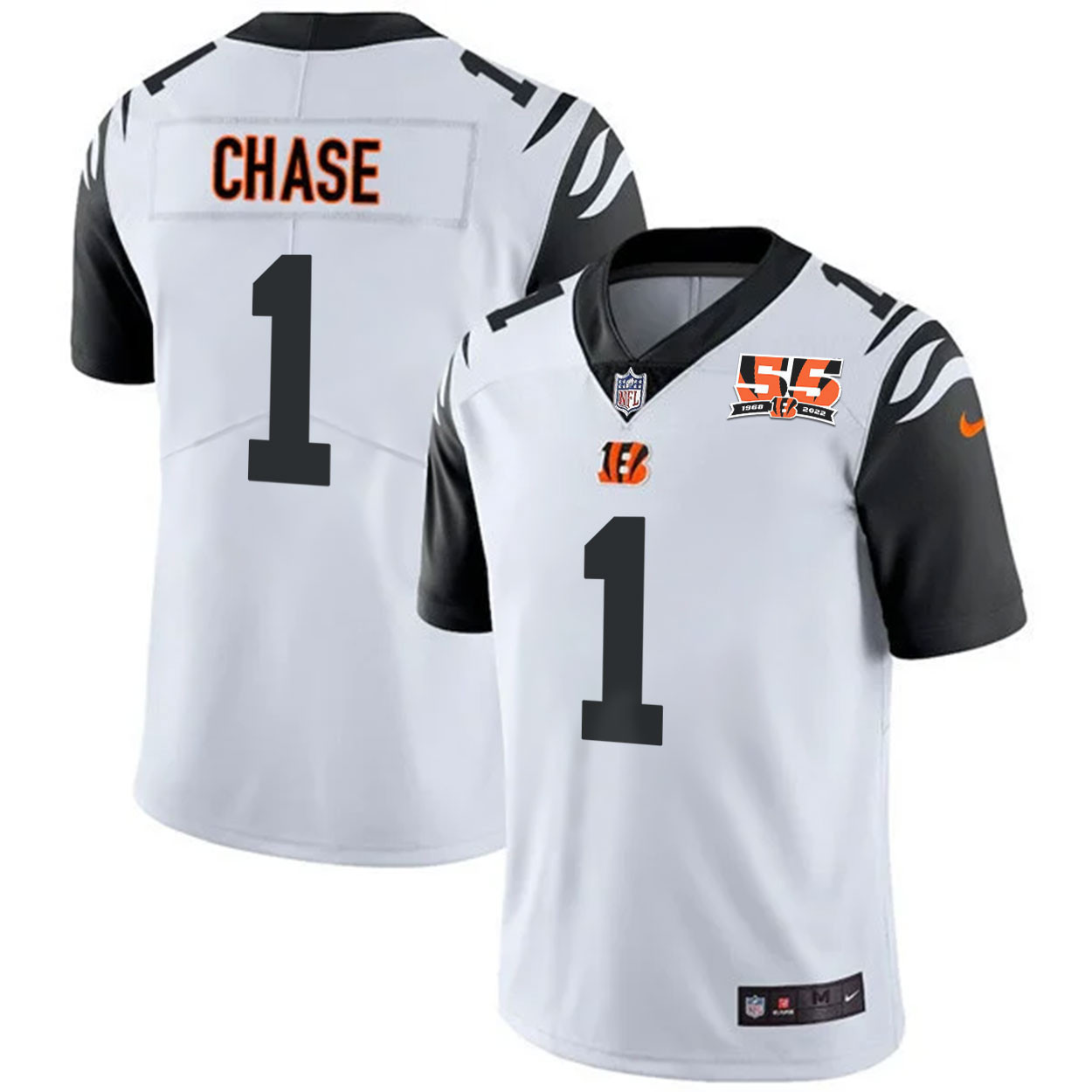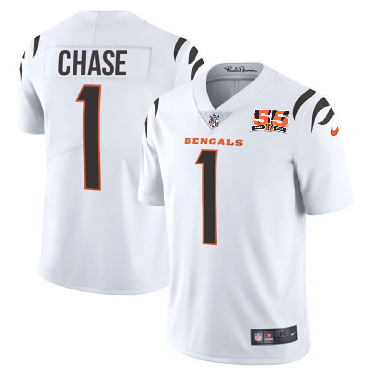 Men’s Cincinnati Bengals 55th 1968 – 2022 Anniversary Patch Player Vapor Limited Jersey – All Stitched