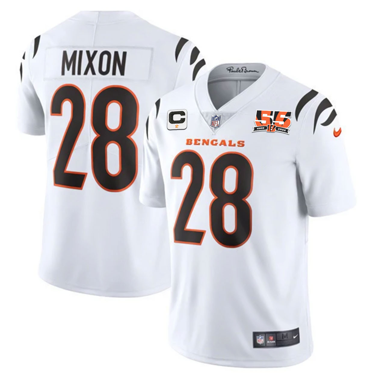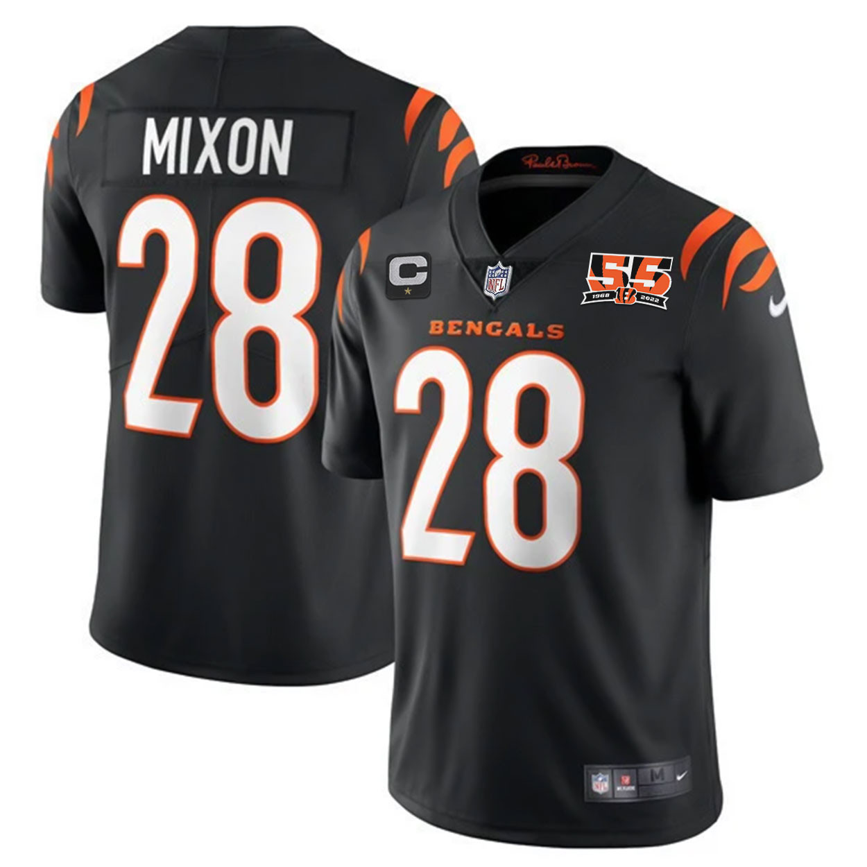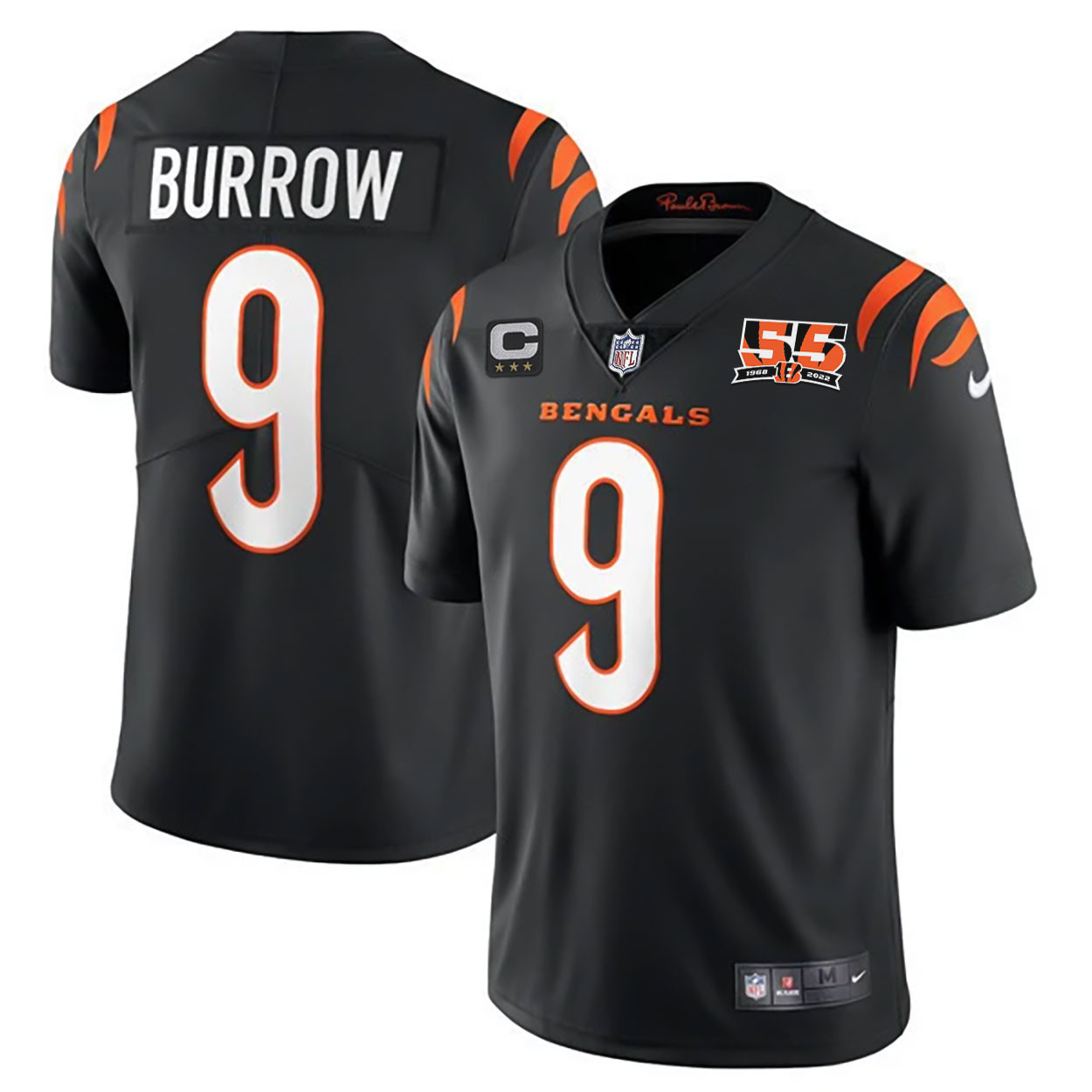 Men’s Cincinnati Bengals 55th 1968 – 2022 Anniversary Patch Player Vapor Limited Jersey – All Stitched