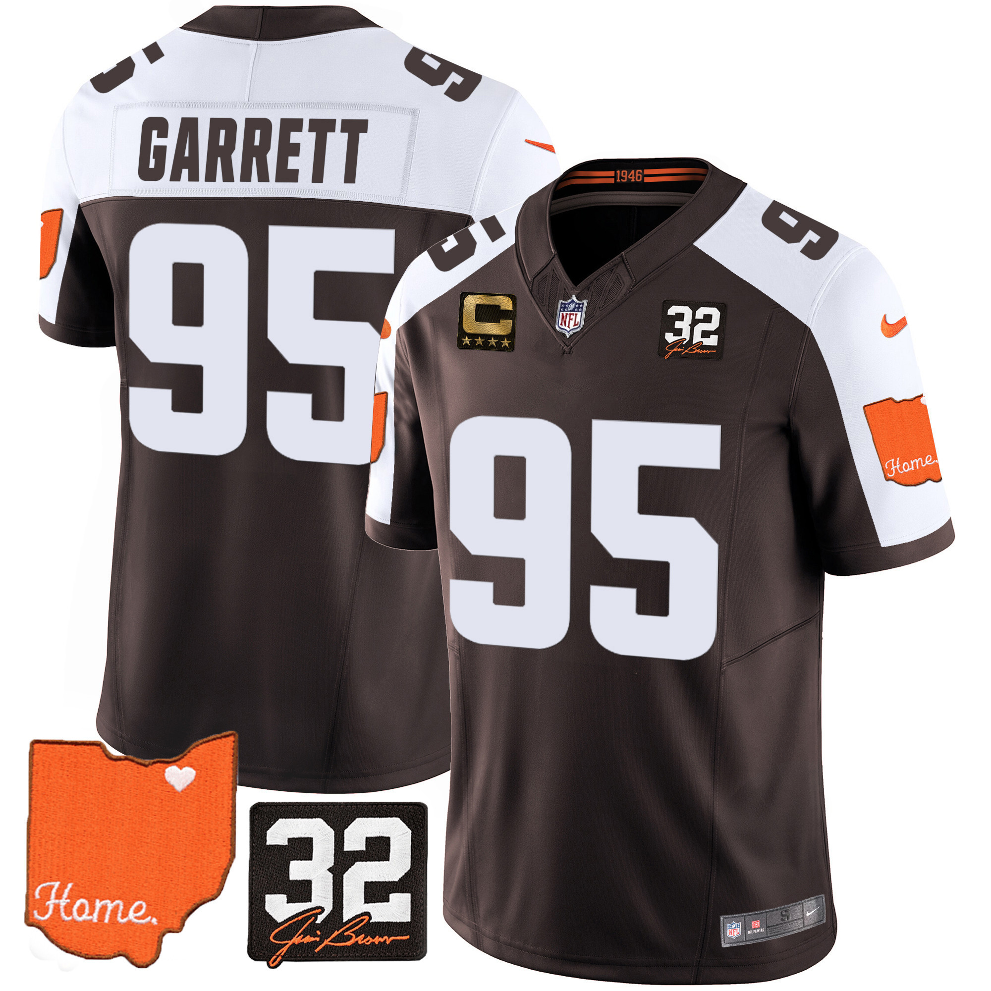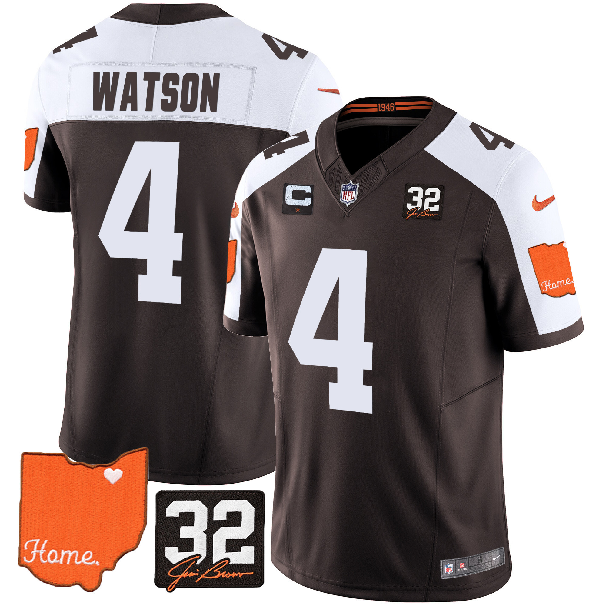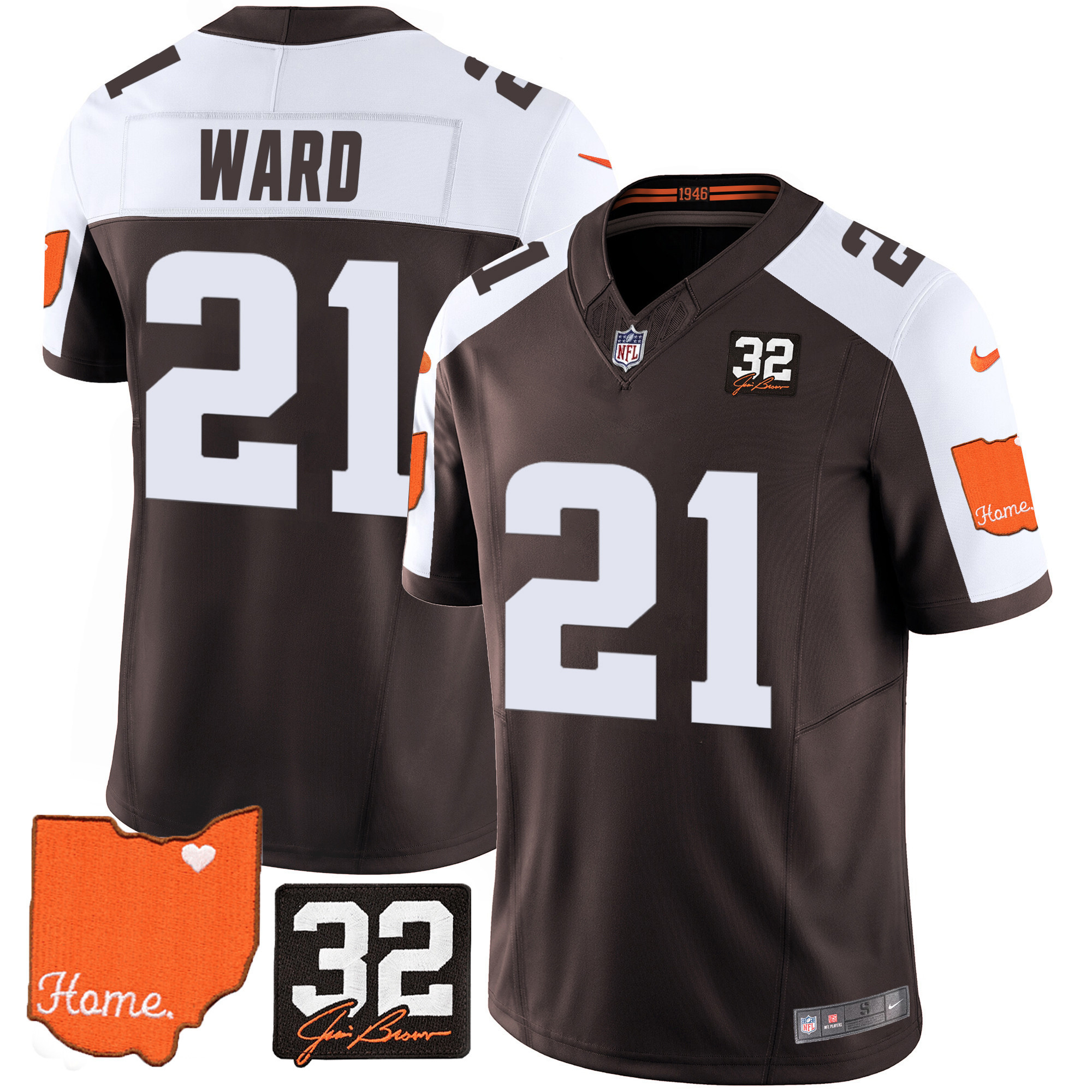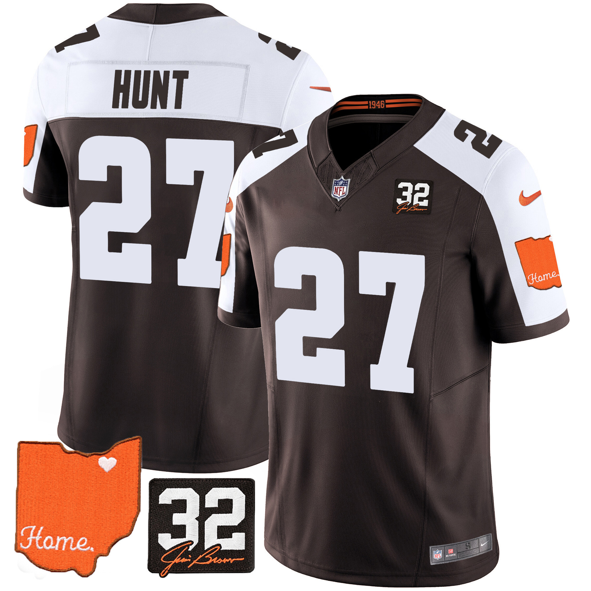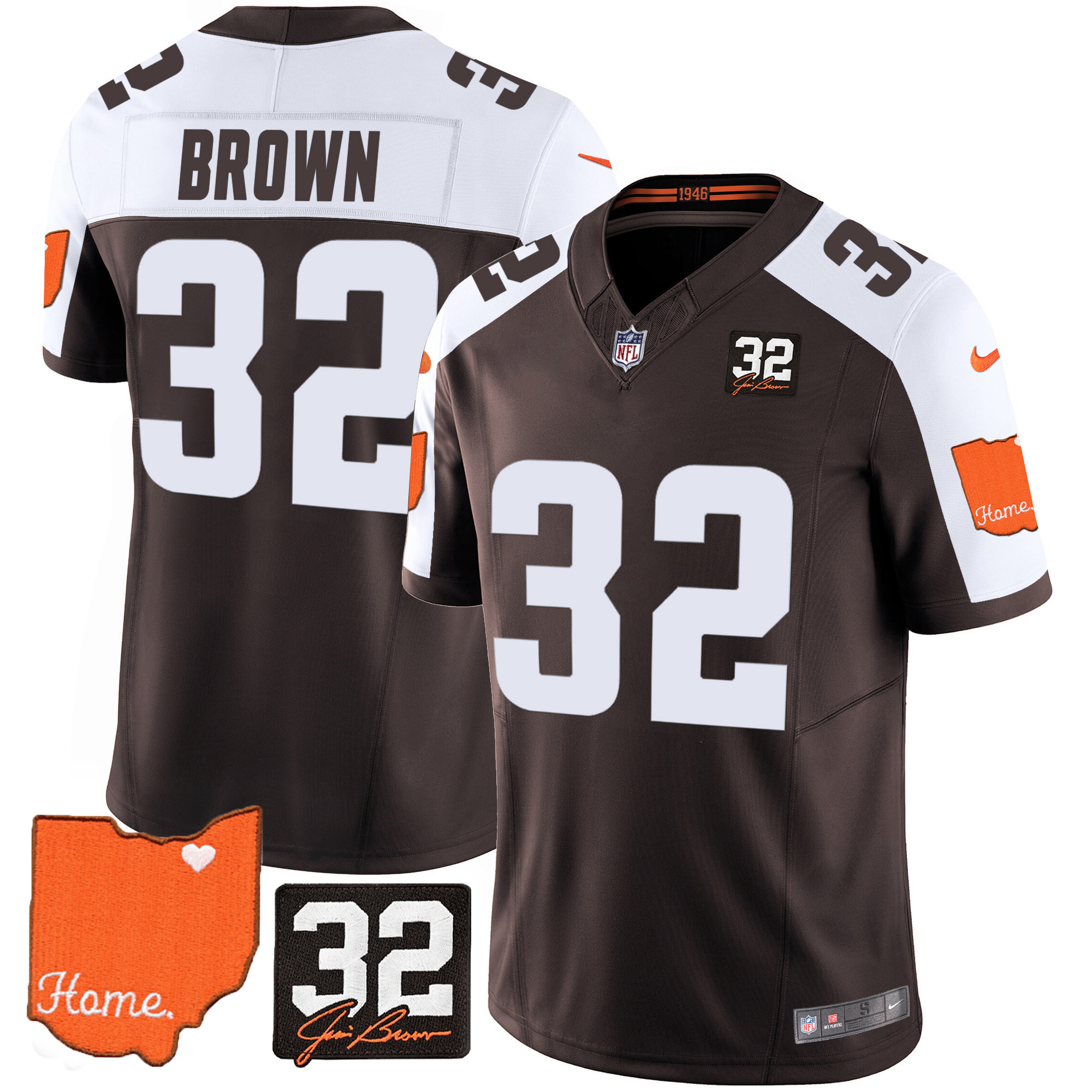 Men’s Cleveland Browns #32 Jim Brown Memorial & Home Patch Jersey V2 – All Stitched